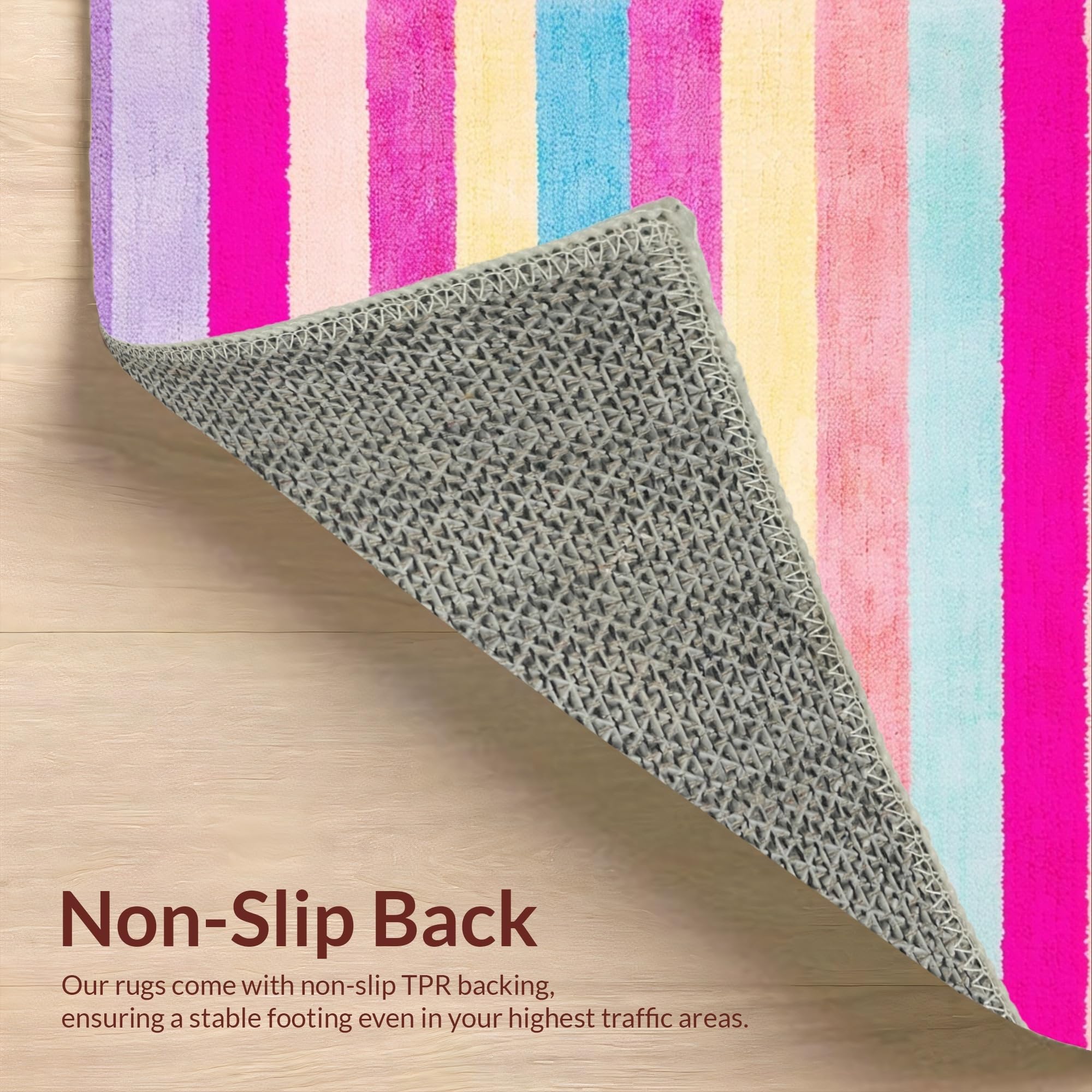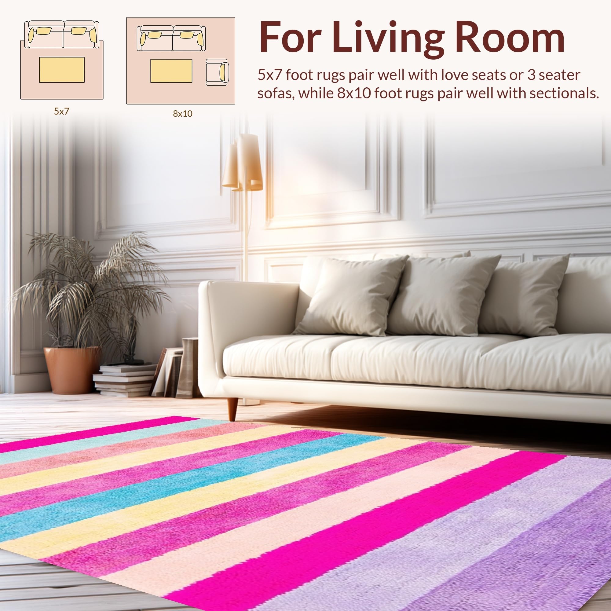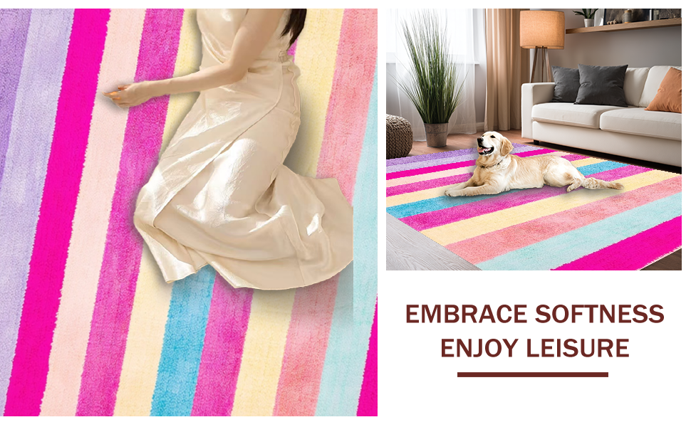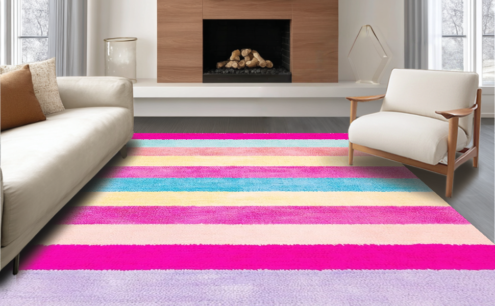 Ultra Soft Area Rug, Non Slip, Stain Resistant, Washable Area Rugs for Living Room, Bedroom, Charming Kawaii Rainbow Motif(Pink) Overview: