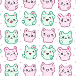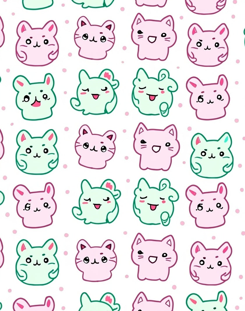 Charming Kitten Faces with Polka Dot Background and Curly Tail Details(Pink)