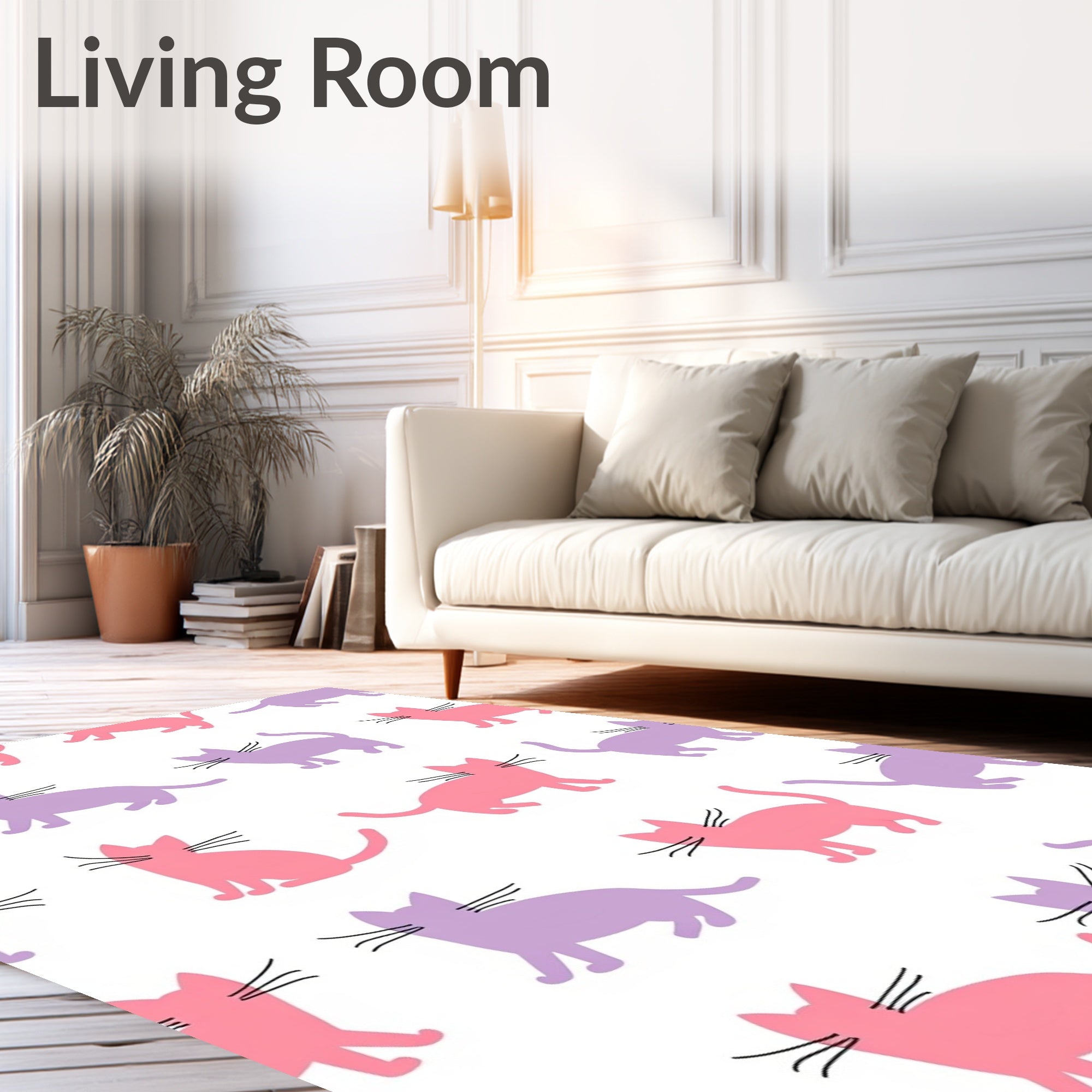 Ultra Soft Area Rug, Non Slip, Stain Resistant, Washable Area Rugs for Living Room, Bedroom, Charming Kitty Collection Stylish Featuring Elegant Whiskers(Pink) Overview: