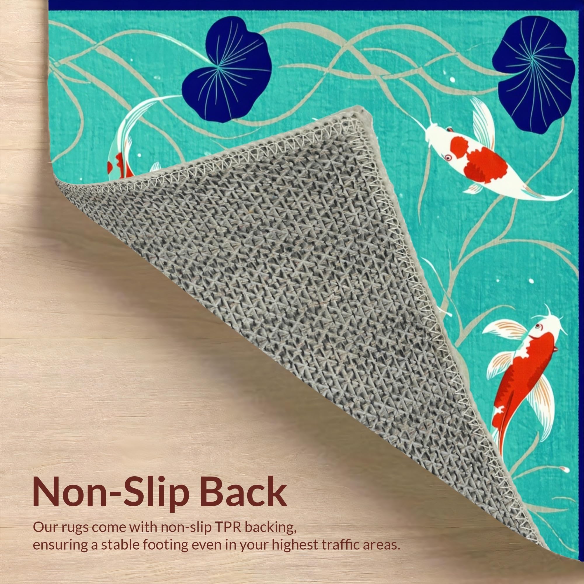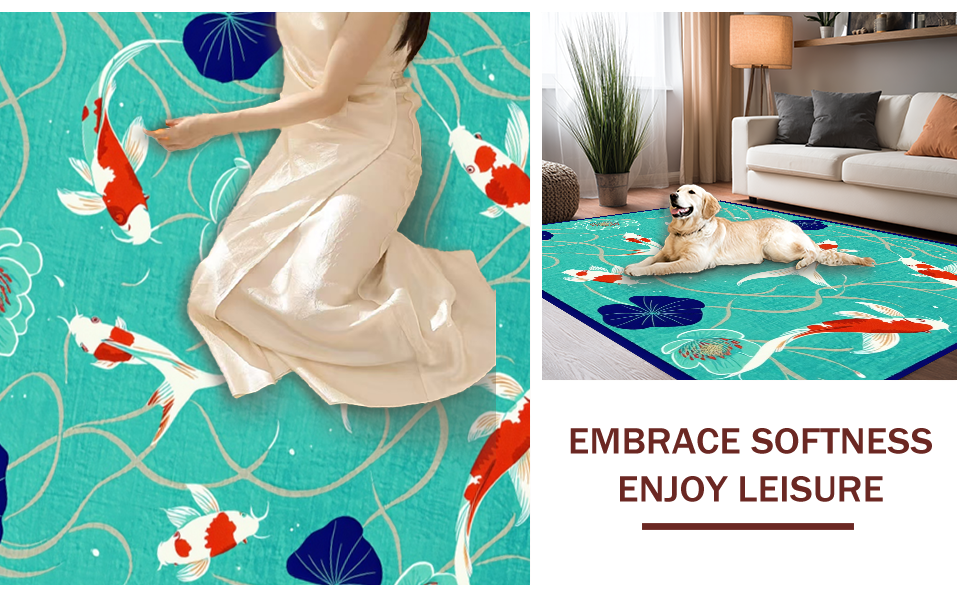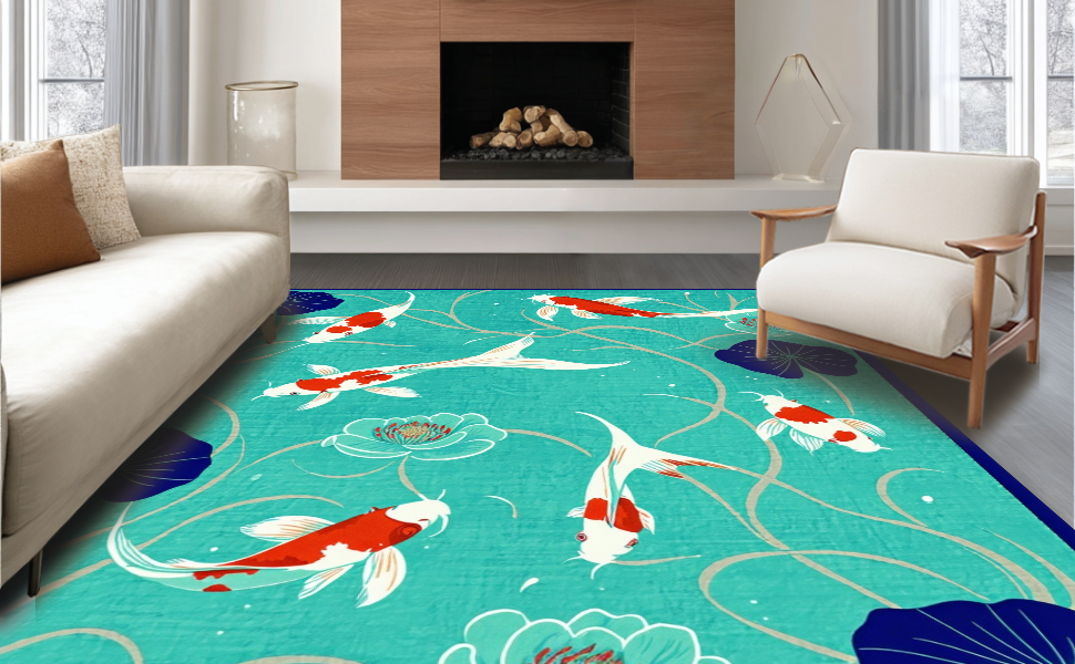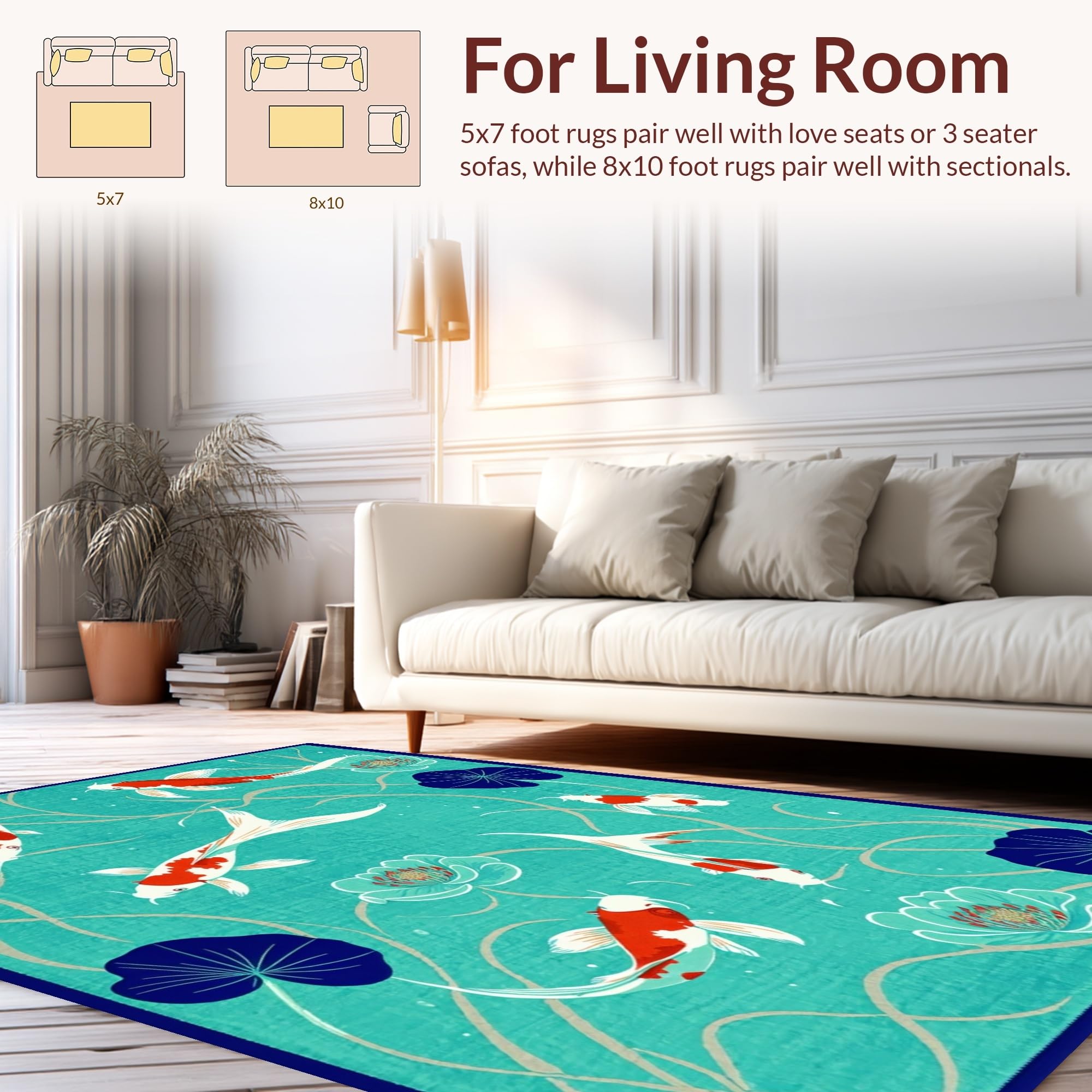 Ultra Soft Area Rug, Non Slip, Stain Resistant, Washable Area Rugs for Living Room, Bedroom, Charming Koi Pond Aesthetic(Blue) Overview: