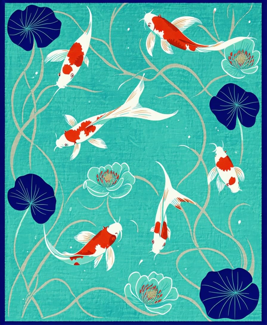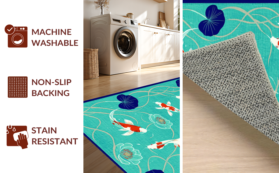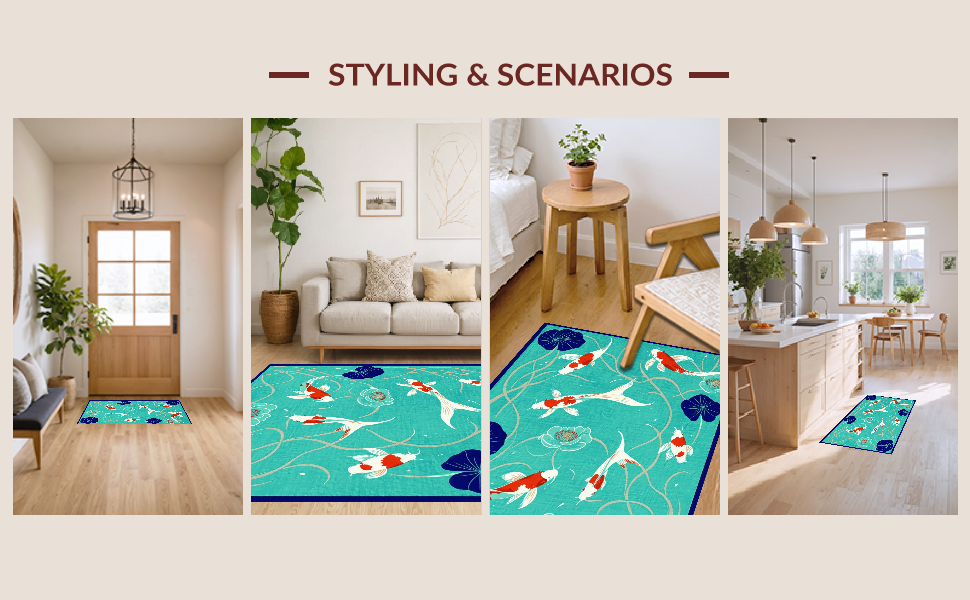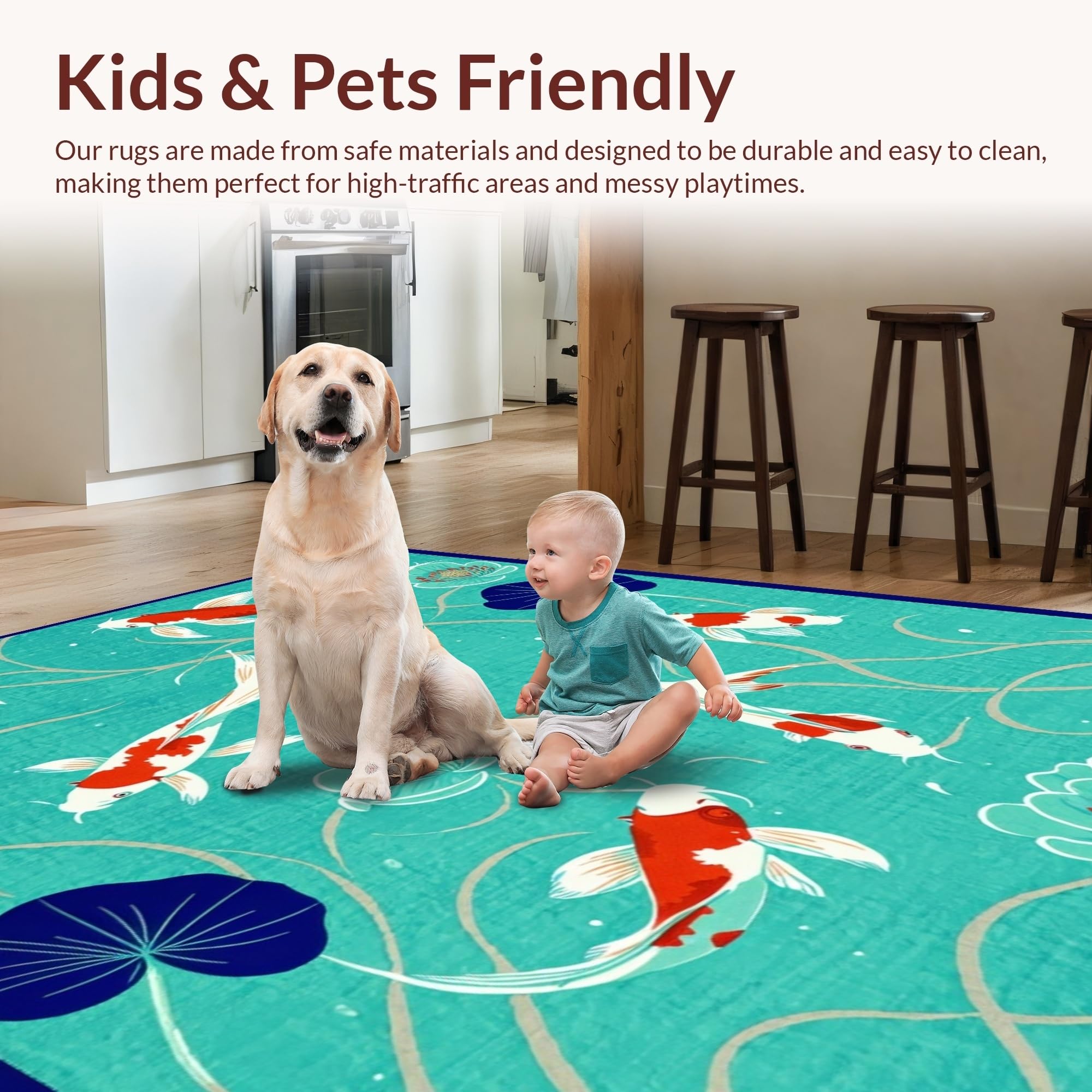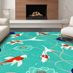 Ultra Soft Area Rug, Non Slip, Stain Resistant, Washable Area Rugs for Living Room, Bedroom, Charming Koi Pond Aesthetic(Blue) Overview: