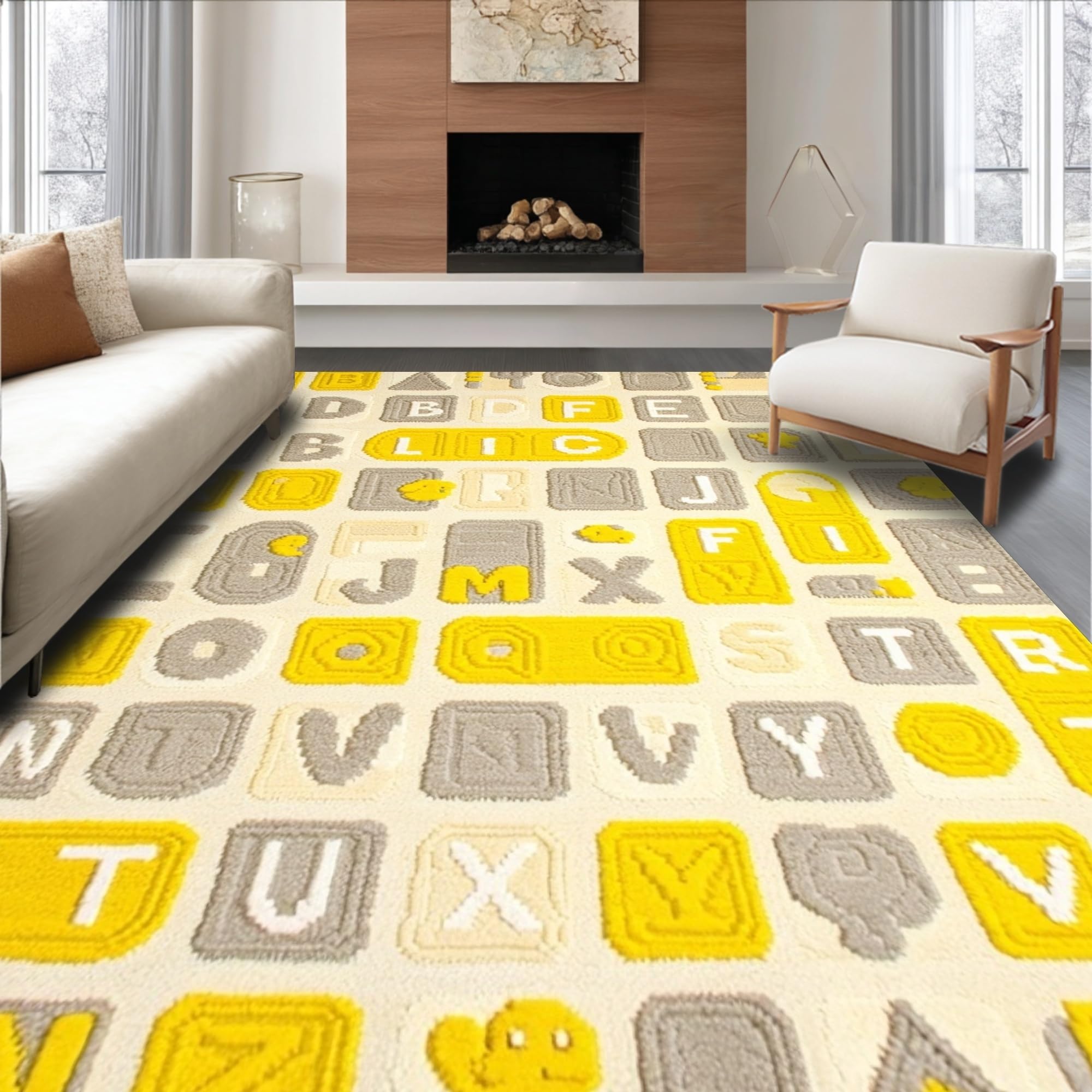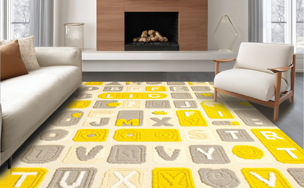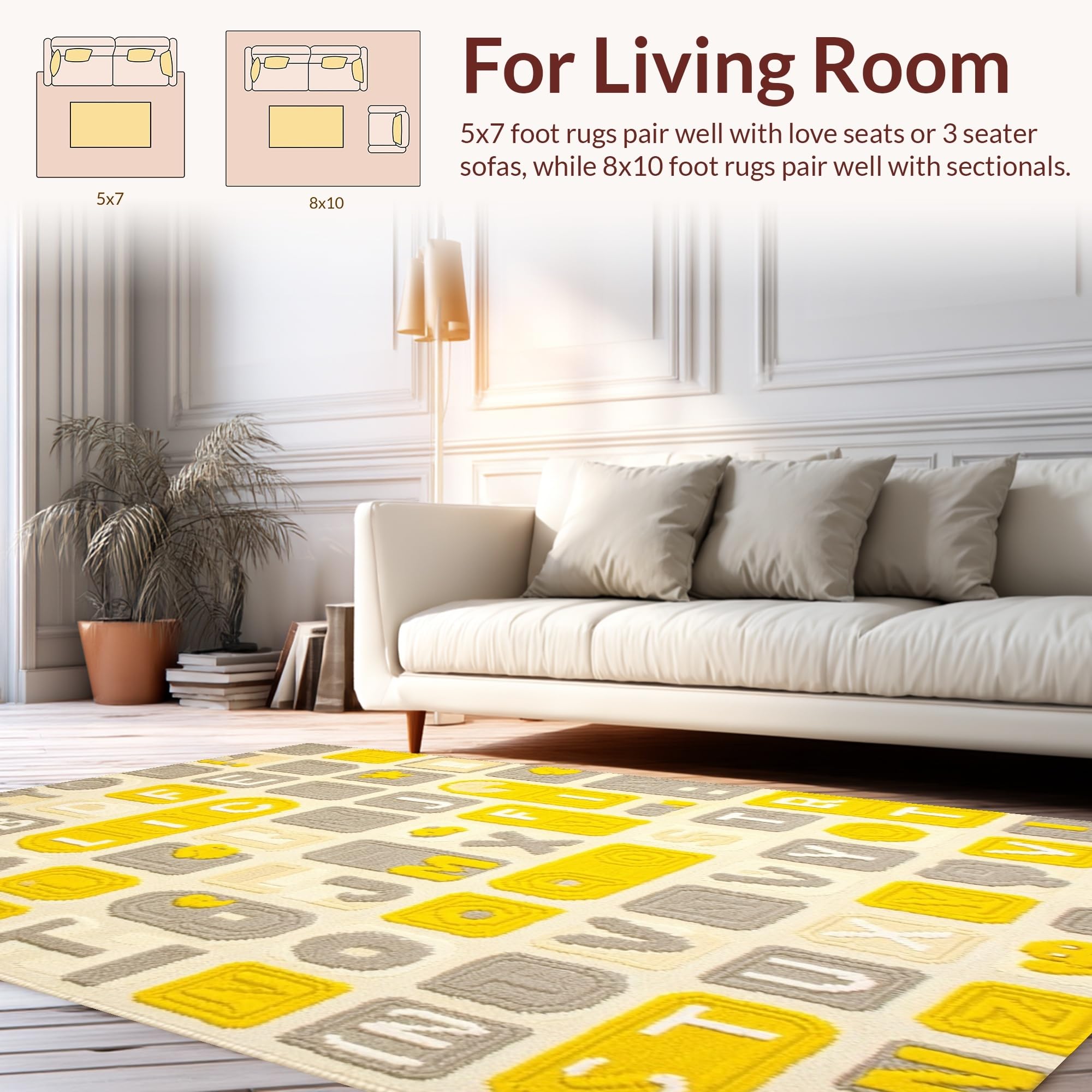 Ultra Soft Area Rug, Non Slip, Stain Resistant, Washable Area Rugs for Living Room, Bedroom, Charming Light Beige Educational Design(Beige) Overview: