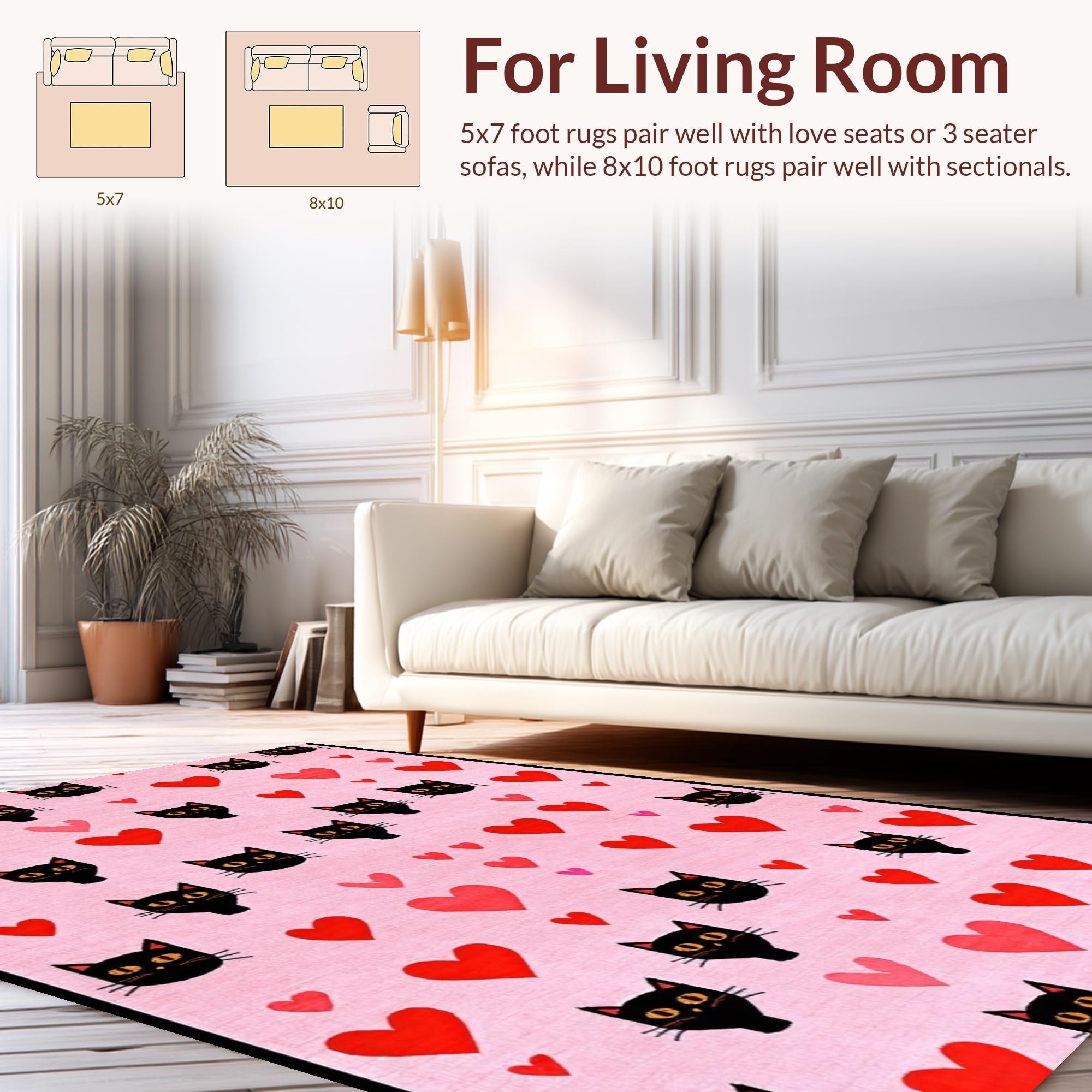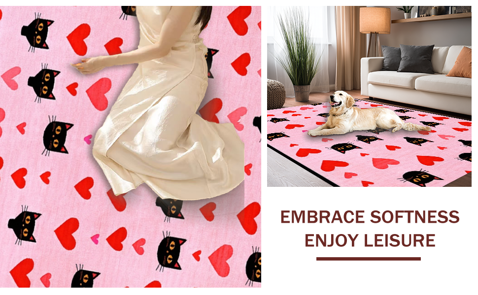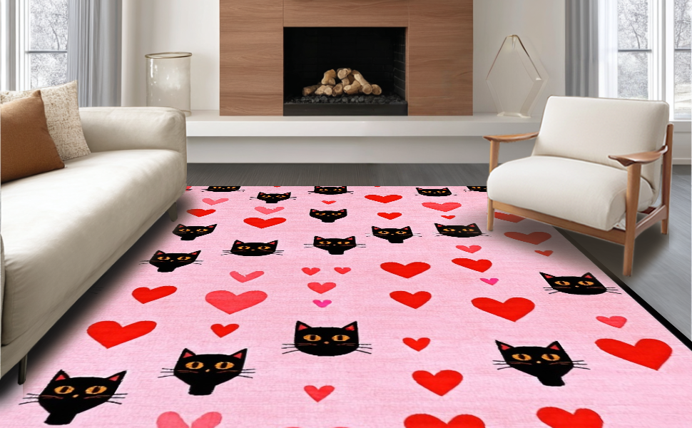 Ultra Soft Area Rug, Non Slip, Stain Resistant, Washable Area Rugs for Living Room, Bedroom, Charming Love Hearts Aesthetic(Pink) Overview: