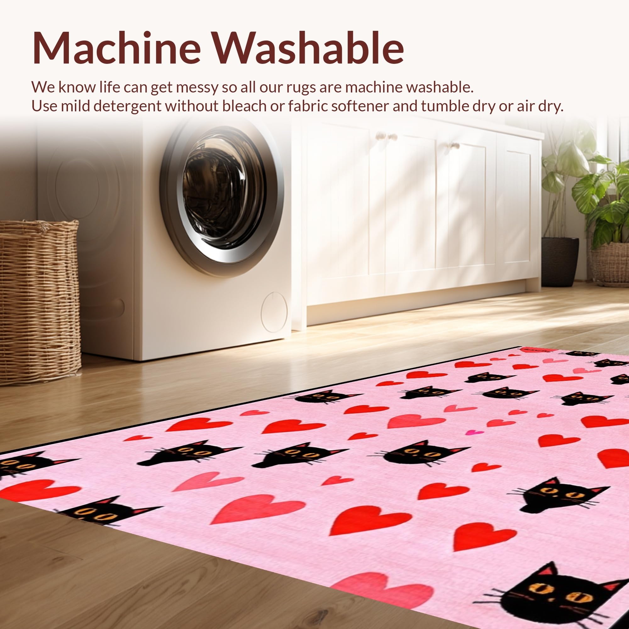 - Machine Washable: Our rugs can be easily thrown in the wash machine.