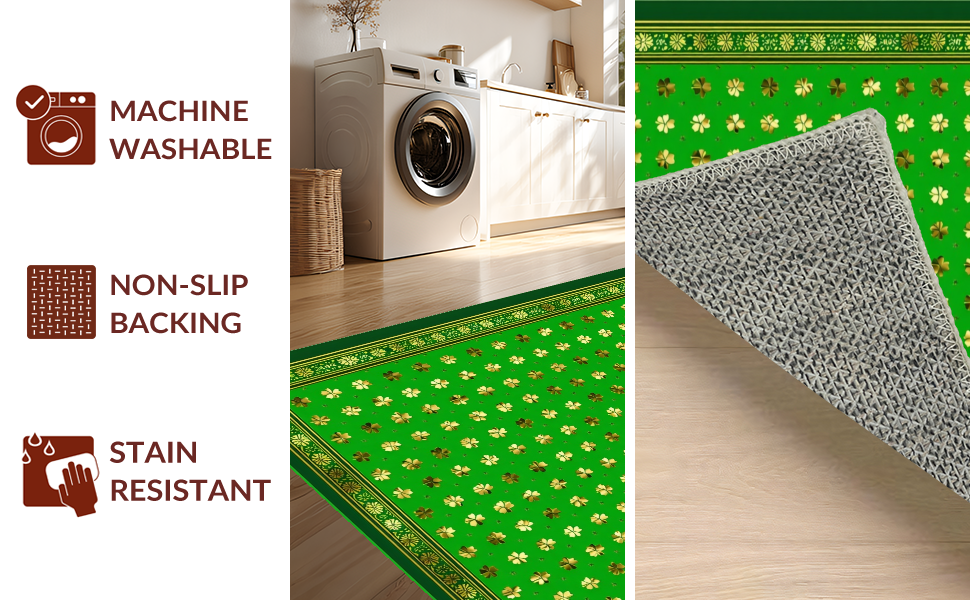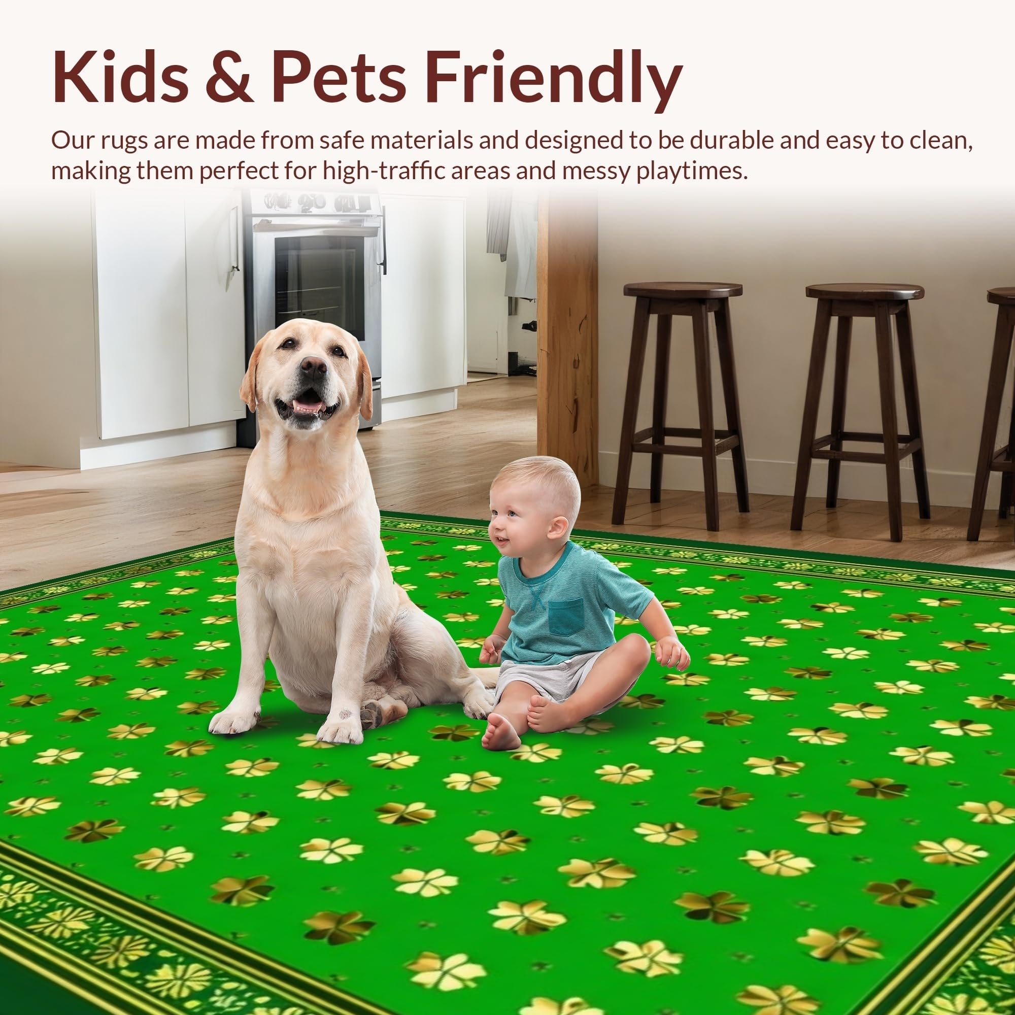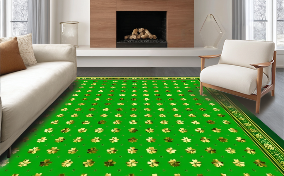 Ultra Soft Area Rug, Non Slip, Stain Resistant, Washable Area Rugs for Living Room, Bedroom, Charming Lucky Clover Motif(Green) Overview: