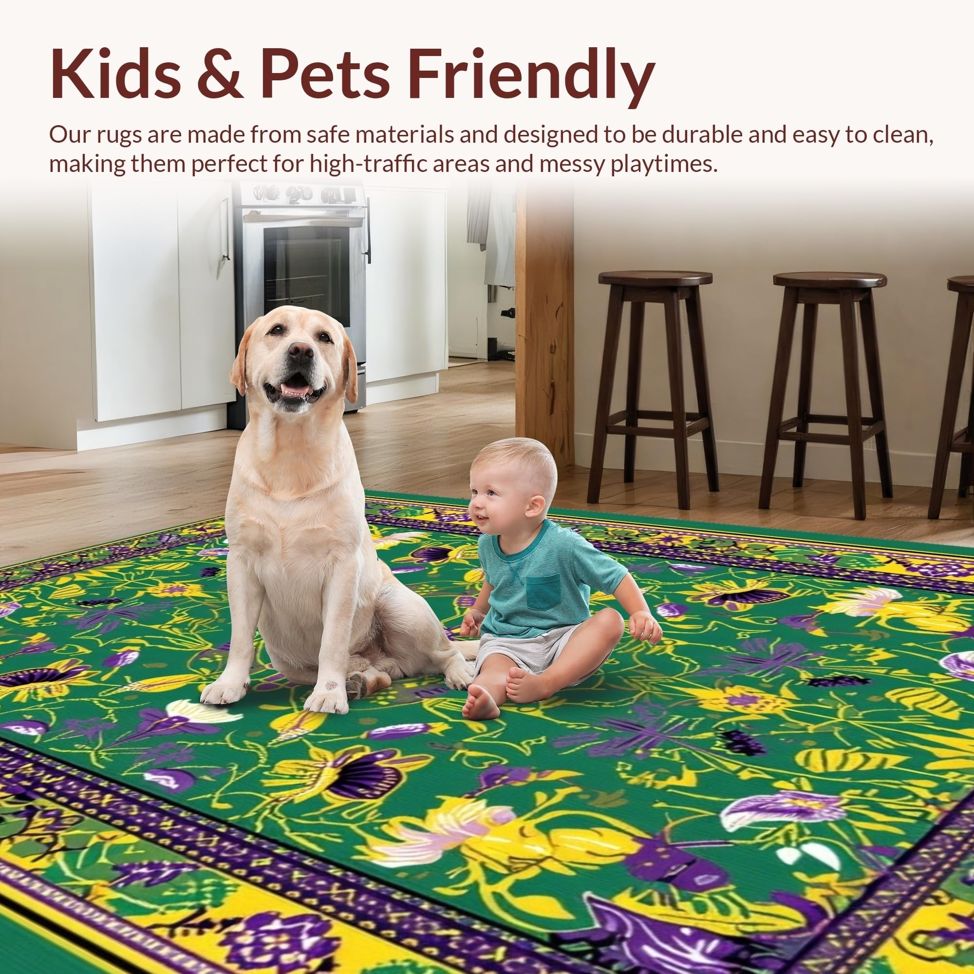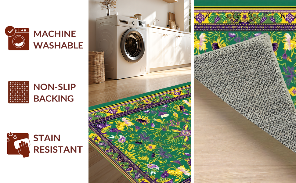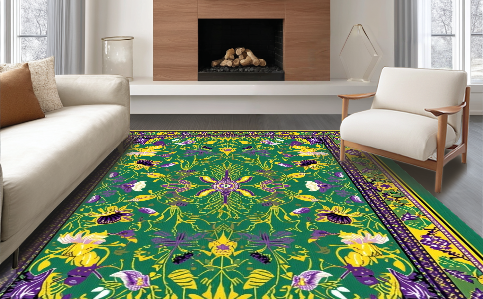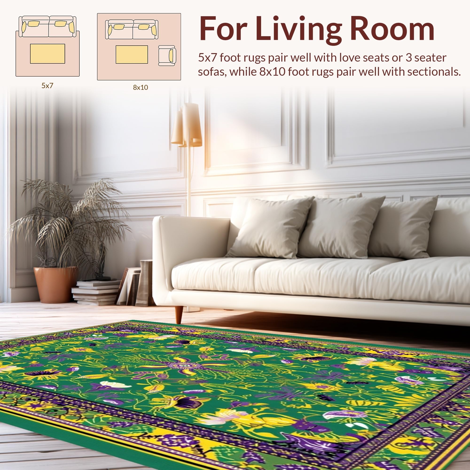 Ultra Soft Area Rug, Non Slip, Stain Resistant, Washable Area Rugs for Living Room, Bedroom, Charming Mardi Gras Inspired Aesthetic(Green) Overview: