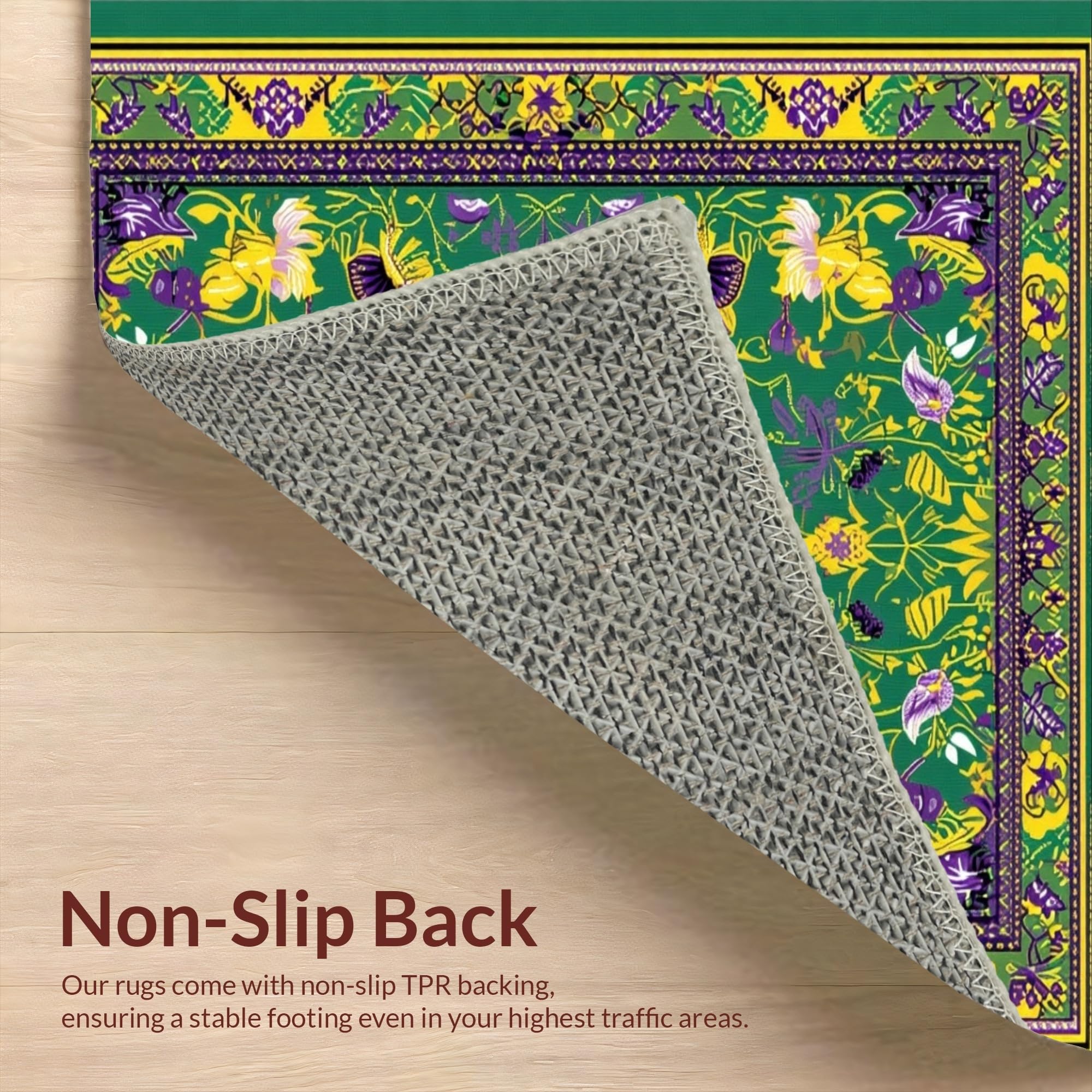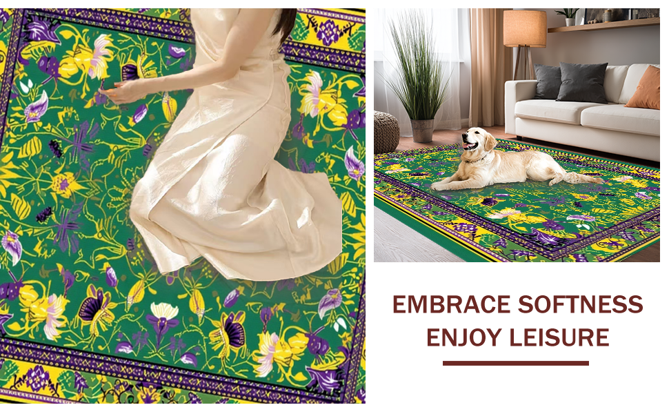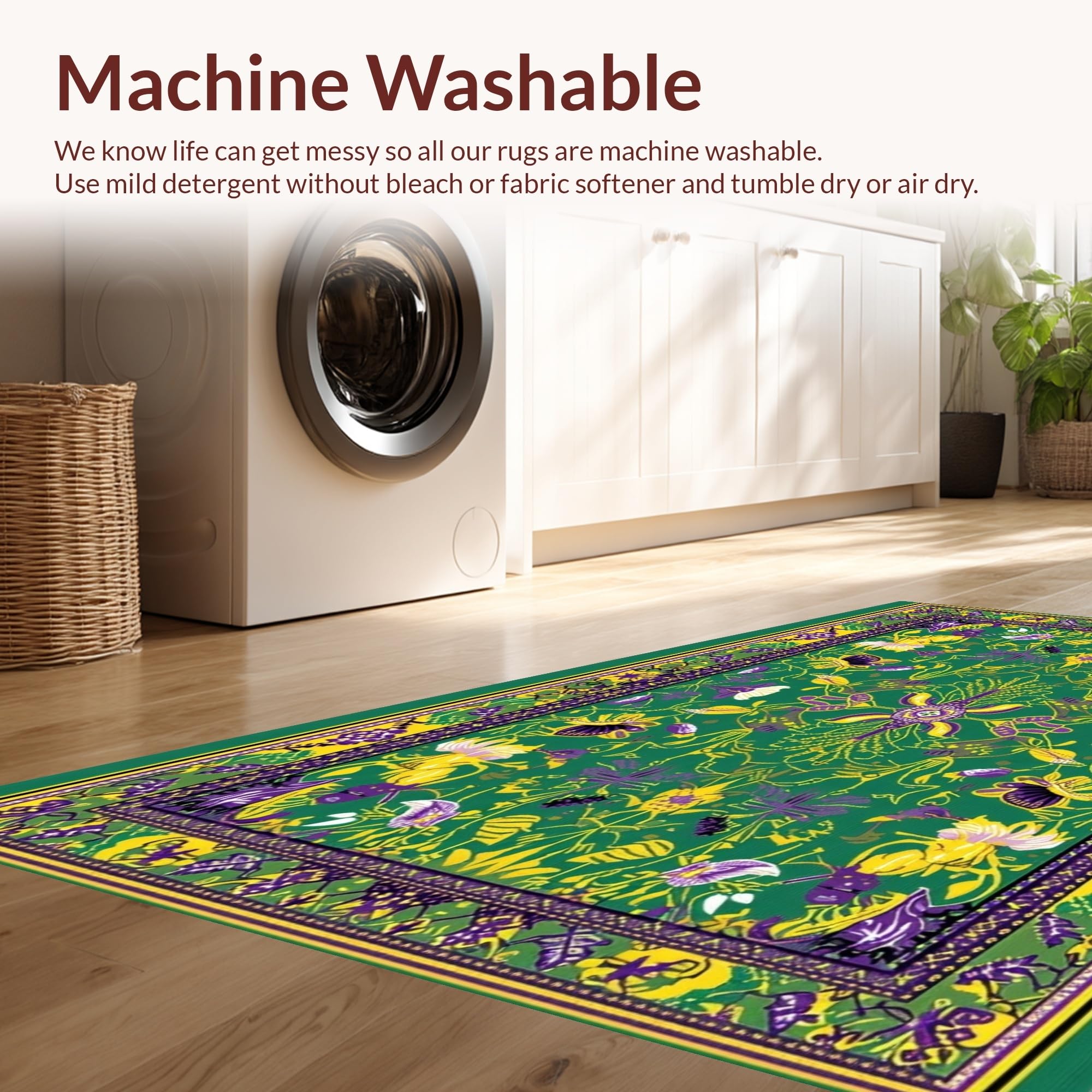 Ultra Soft Area Rug, Non Slip, Stain Resistant, Washable Area Rugs for Living Room, Bedroom, Charming Mardi Gras Inspired Aesthetic(Green) Overview: