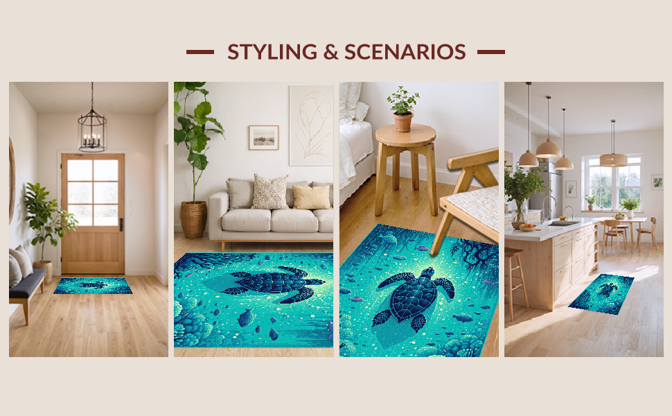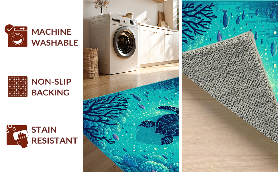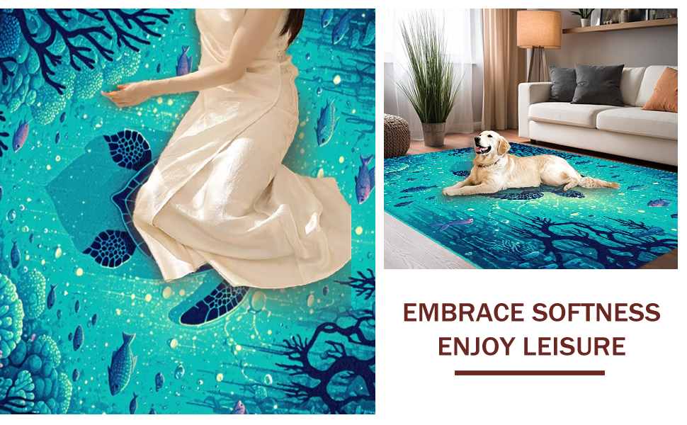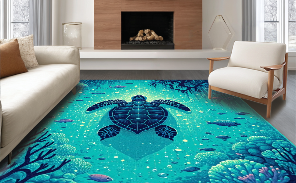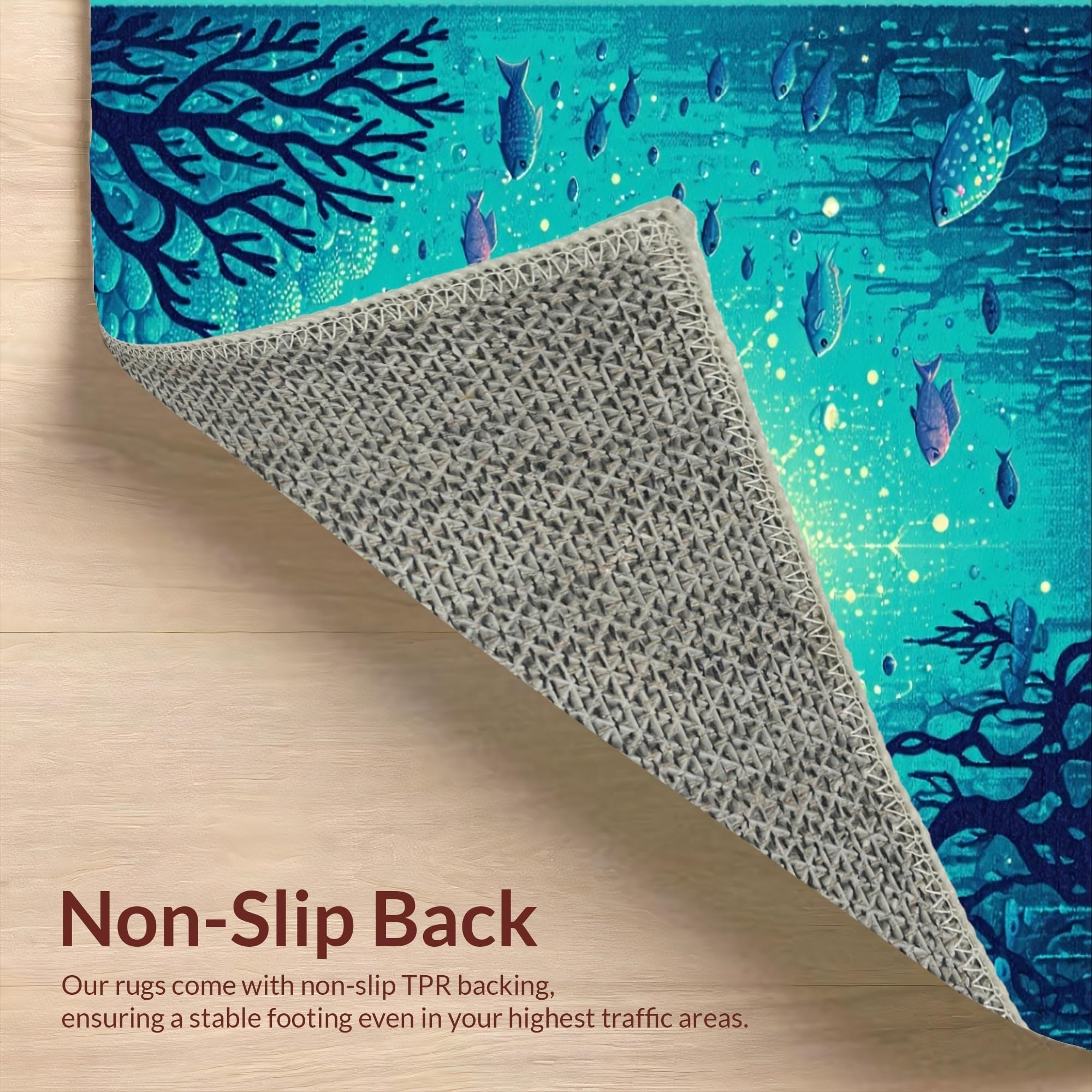 Ultra Soft Area Rug, Non Slip, Stain Resistant, Washable Area Rugs for Living Room, Bedroom, Charming Marine Life Visuals(Blue) Overview: