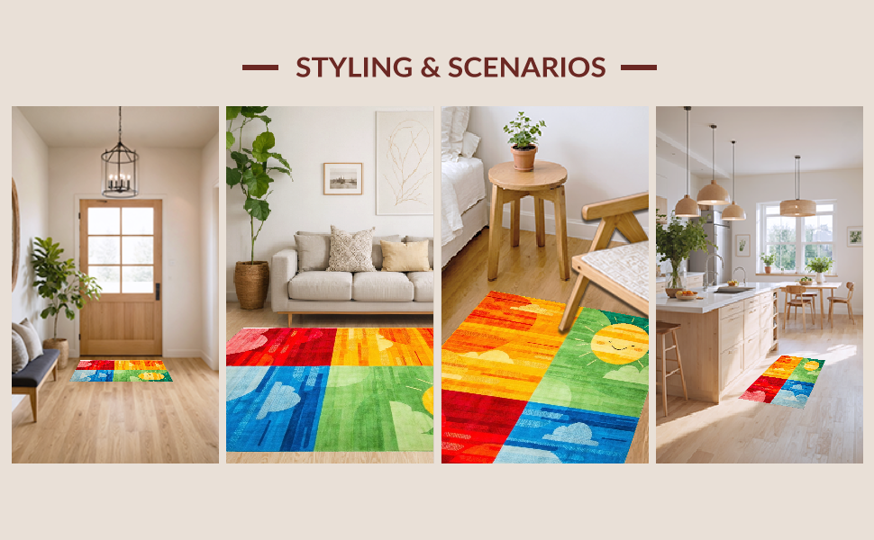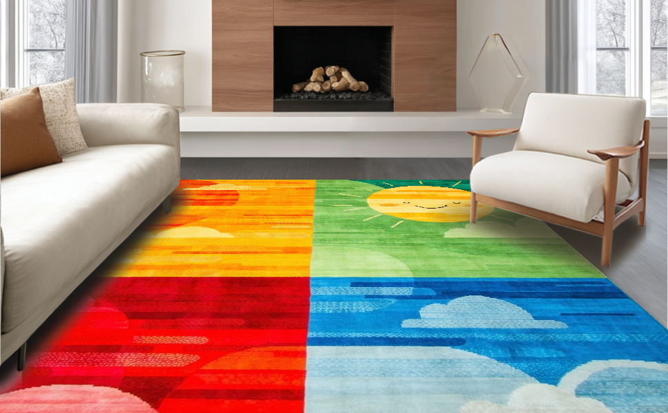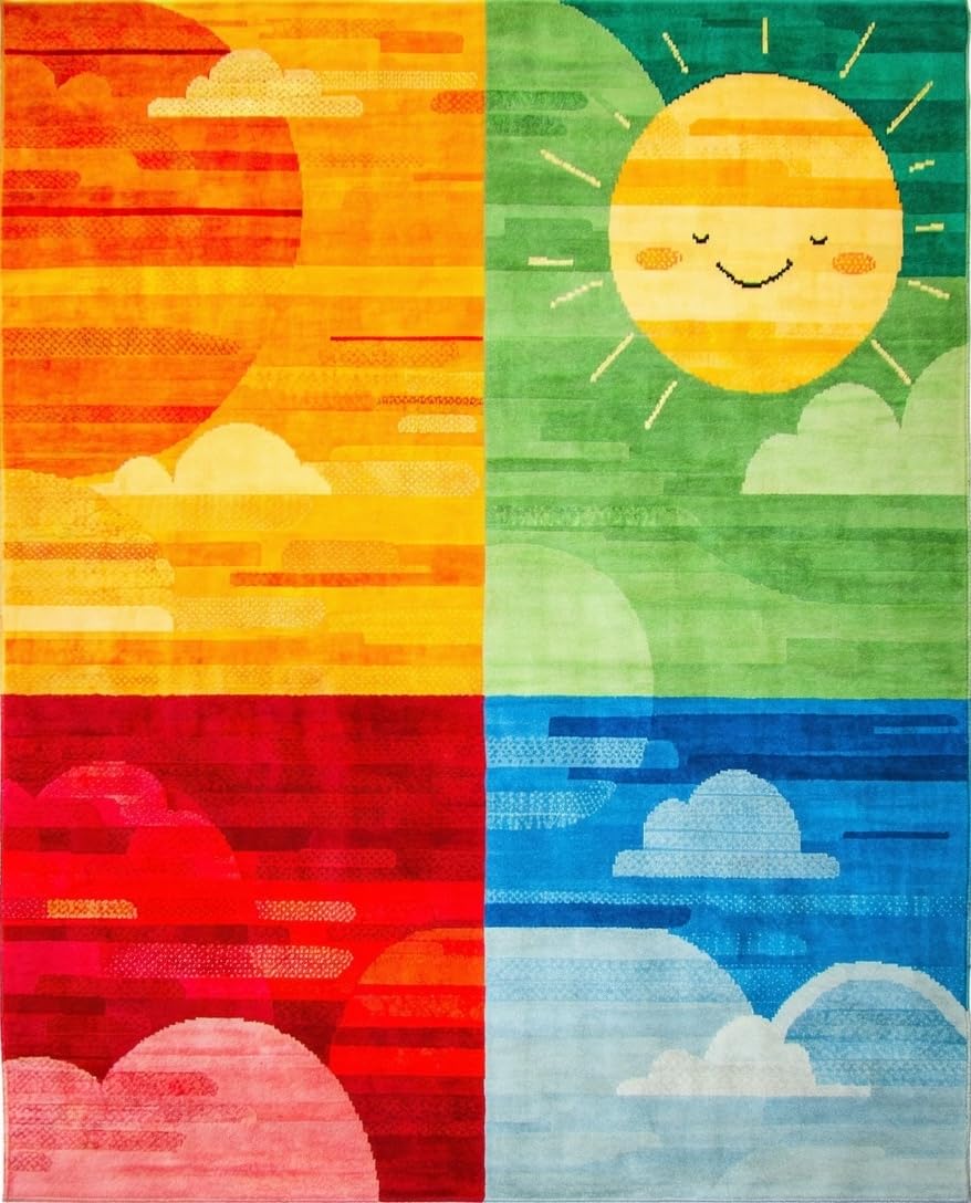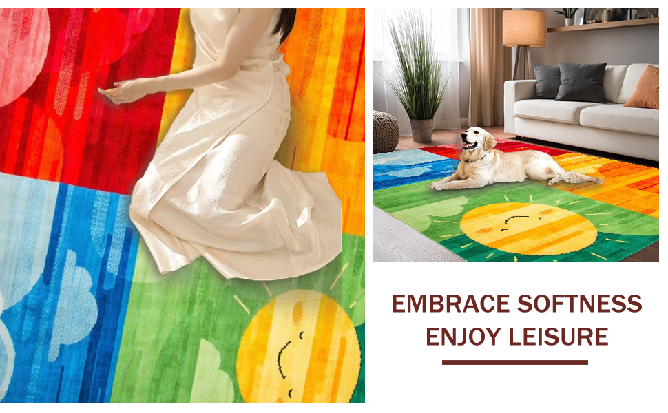 Ultra Soft Area Rug, Non Slip, Stain Resistant, Washable Area Rugs for Living Room, Bedroom, Charming Multicolor Sun Icon(Yellow) Overview: