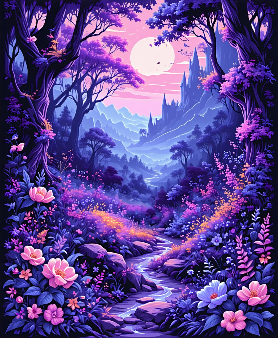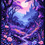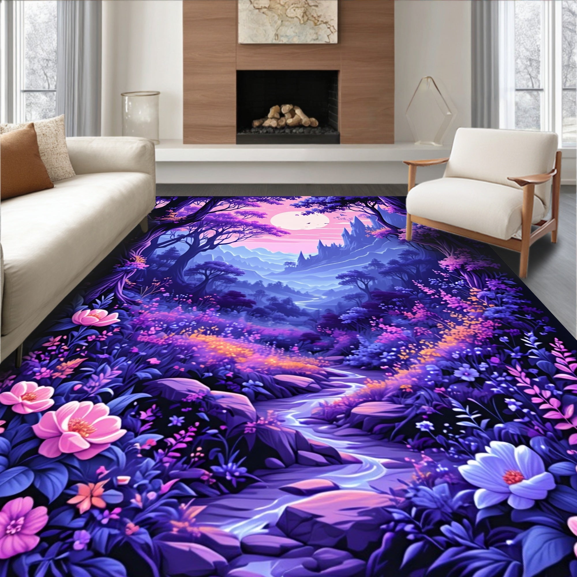 Flatwoven High Traffic Area Rug, Charming Mythical Landscape Design, Non Slip, Stain Resistant, Washable Area Rugs for Living Room, Bedroom (Purple) Overview: