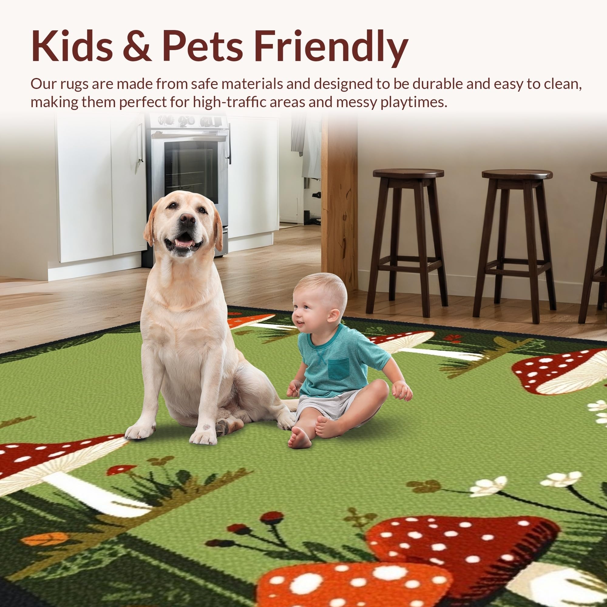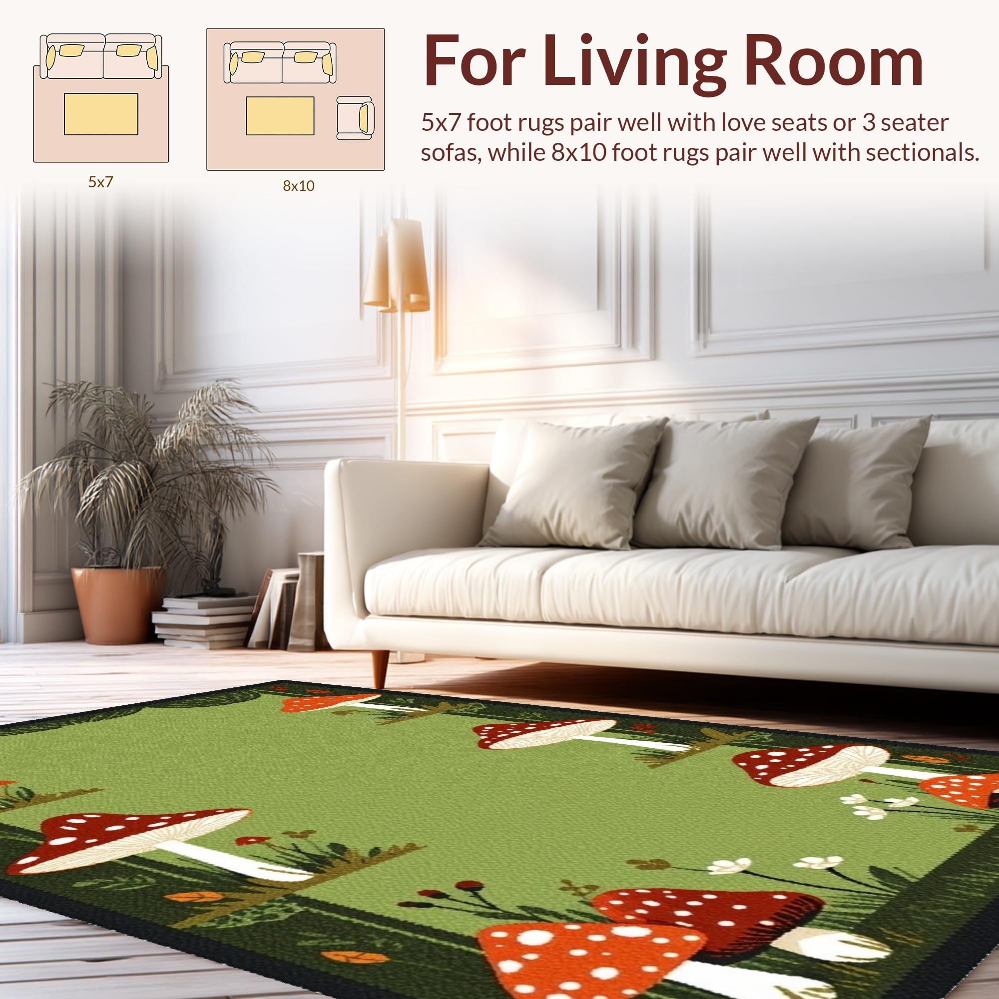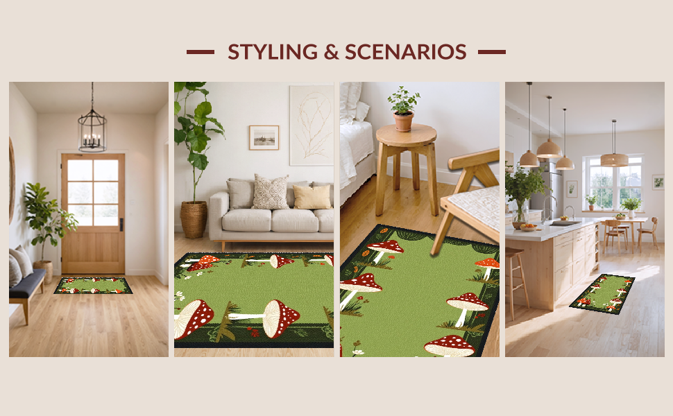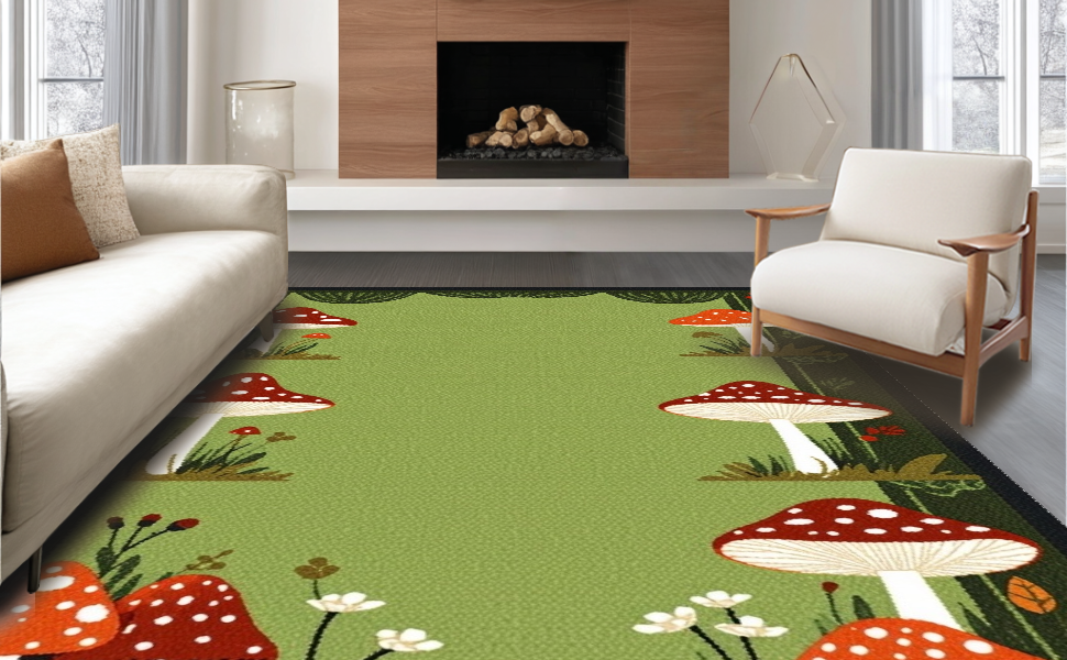 Ultra Soft Area Rug, Non Slip, Stain Resistant, Washable Area Rugs for Living Room, Bedroom, Charming Nature-Inspired Aesthetic(Green) Overview: