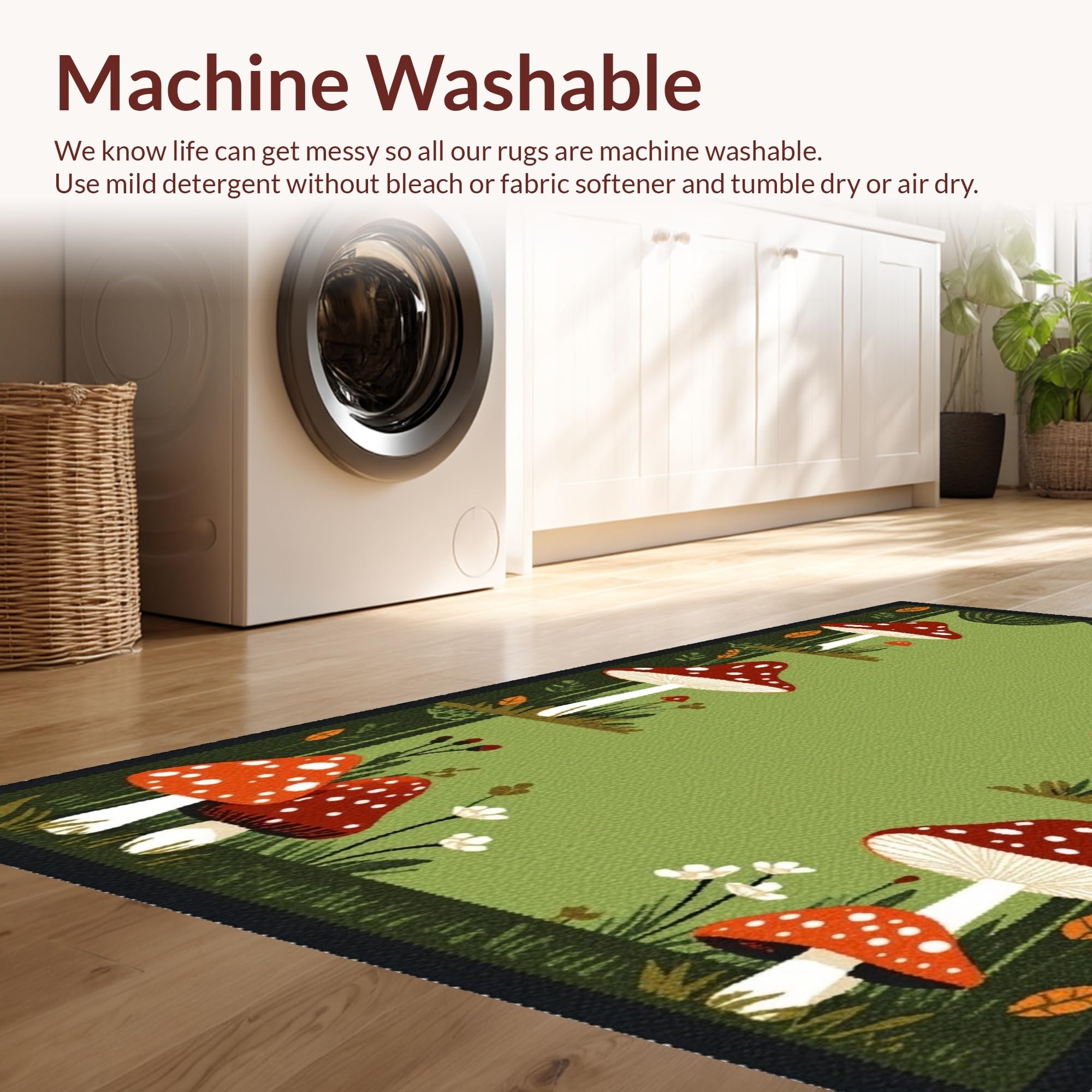 - Machine Washable: Our rugs can be easily thrown in the wash machine.