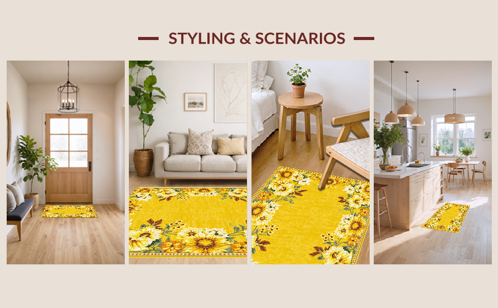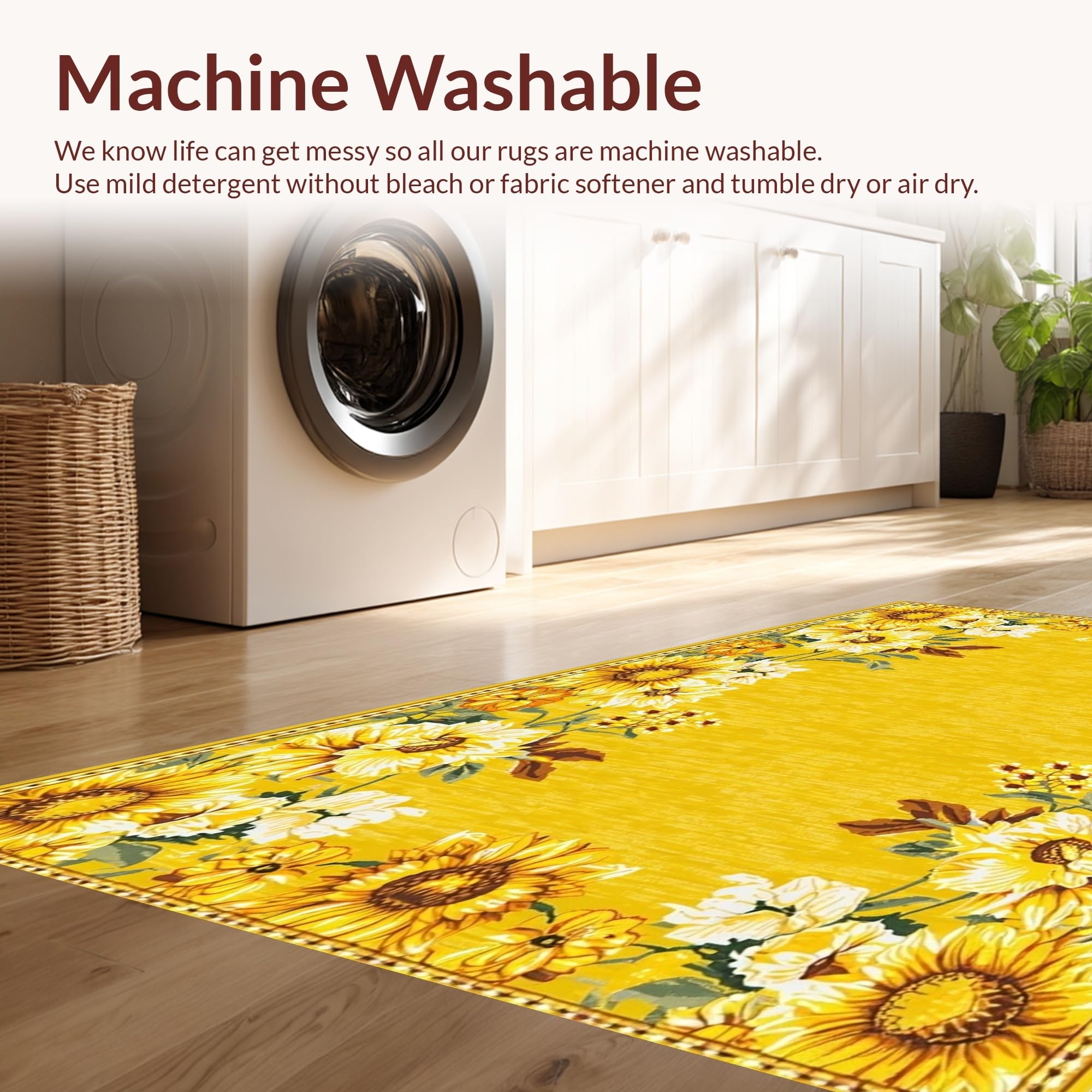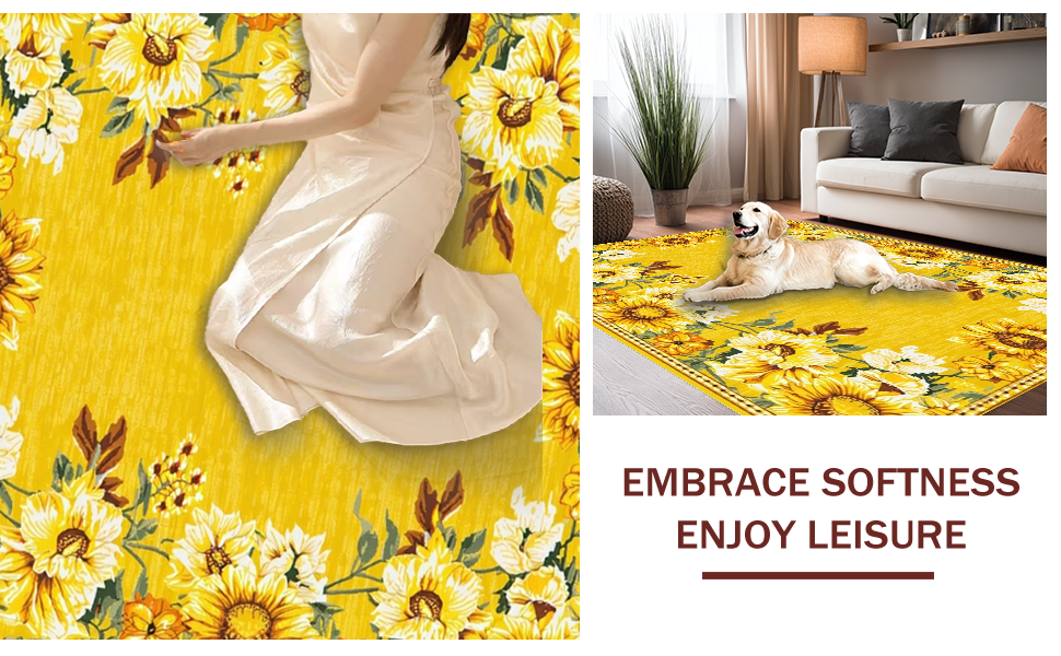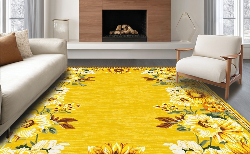 Ultra Soft Area Rug, Non Slip, Stain Resistant, Washable Area Rugs for Living Room, Bedroom, Charming Nature-Inspired Decor Element(Yellow) Overview: