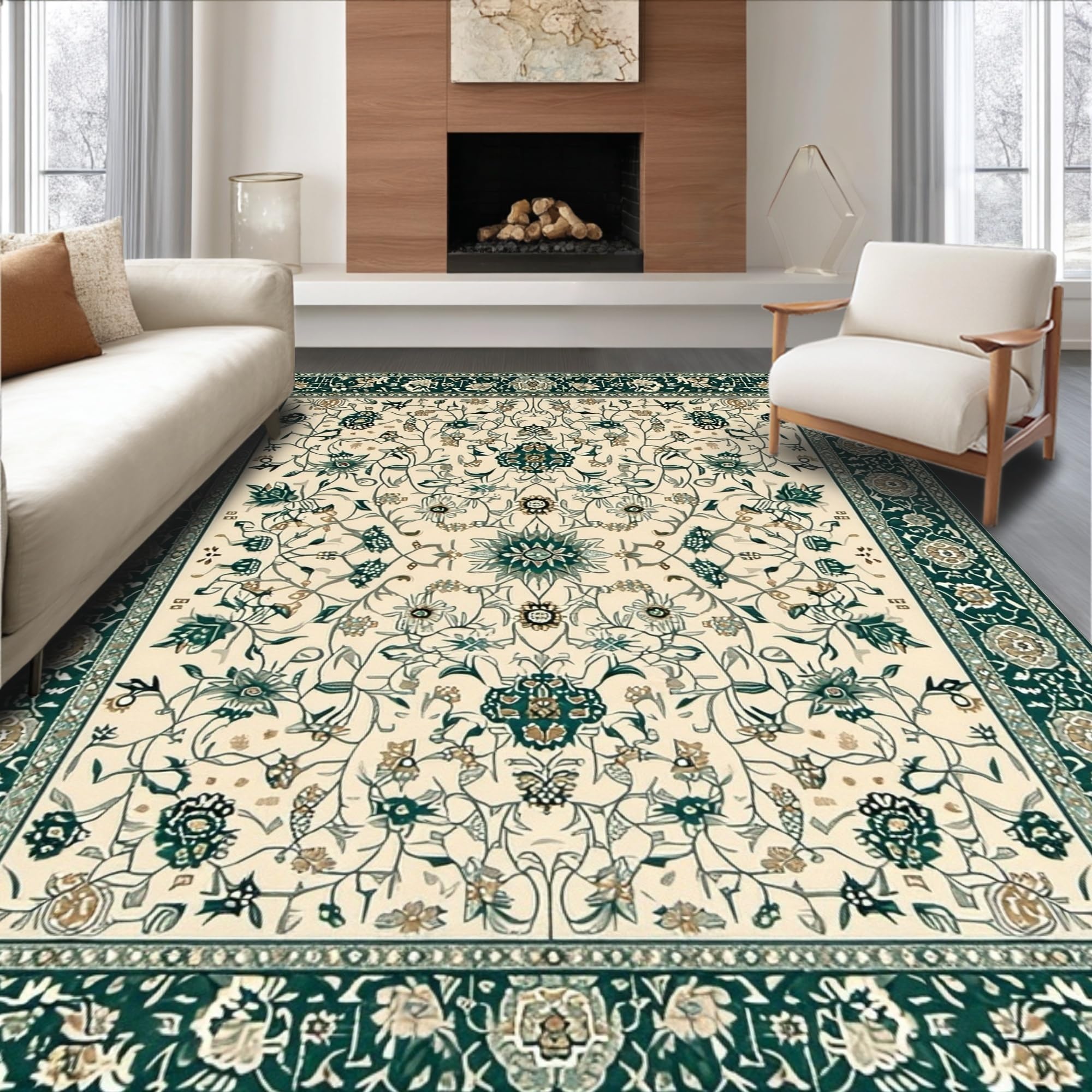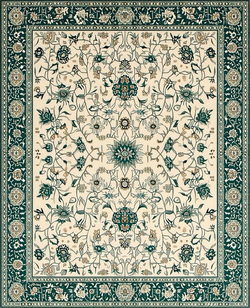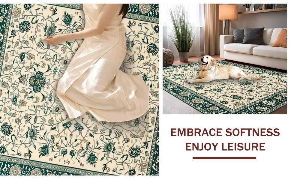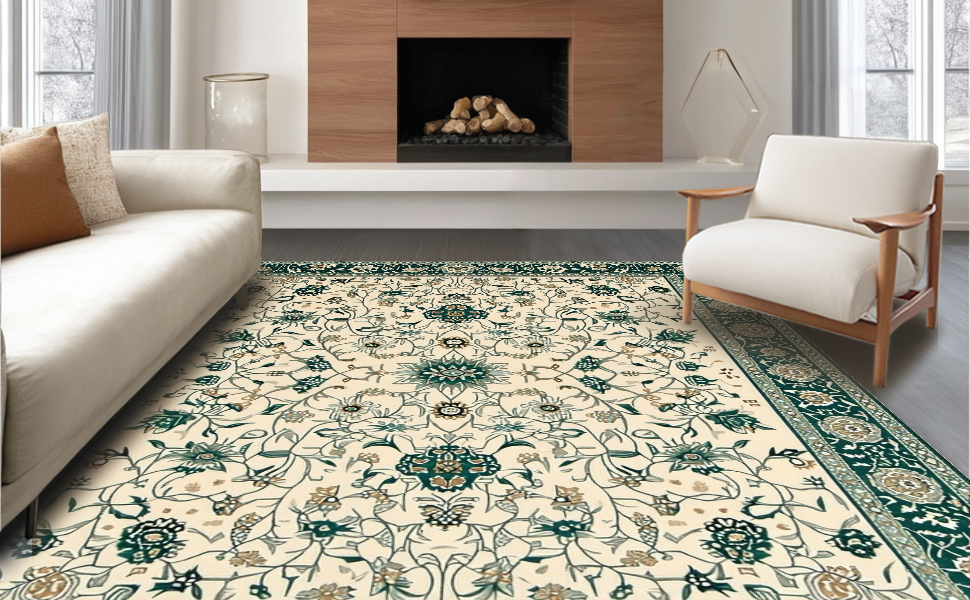 Ultra Soft Area Rug, Non Slip, Stain Resistant, Washable Area Rugs for Living Room, Bedroom, Charming Nature-Themed Palette(Ivory) Overview: