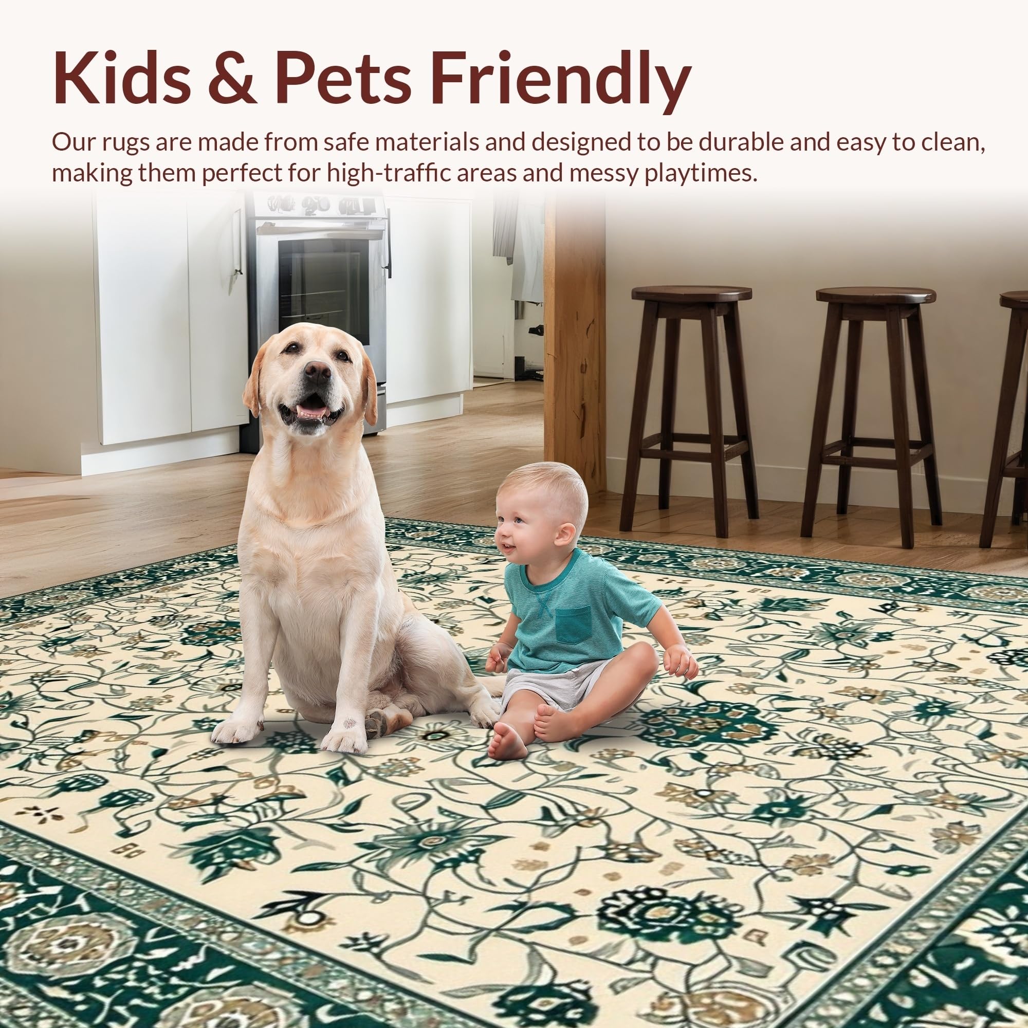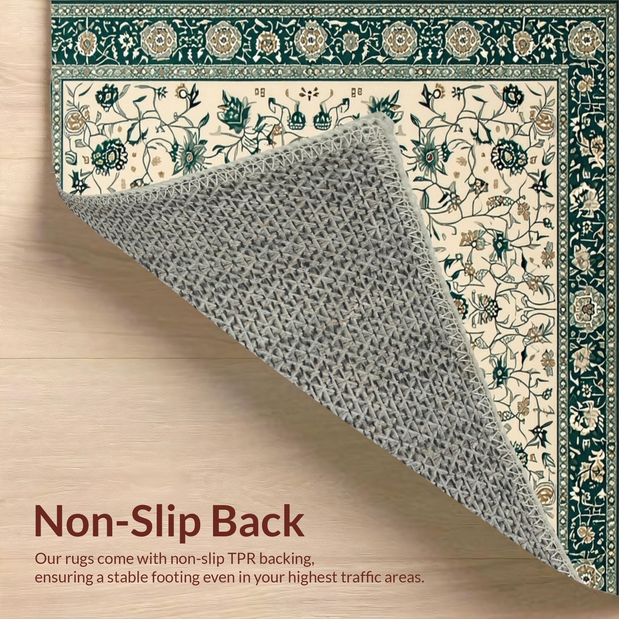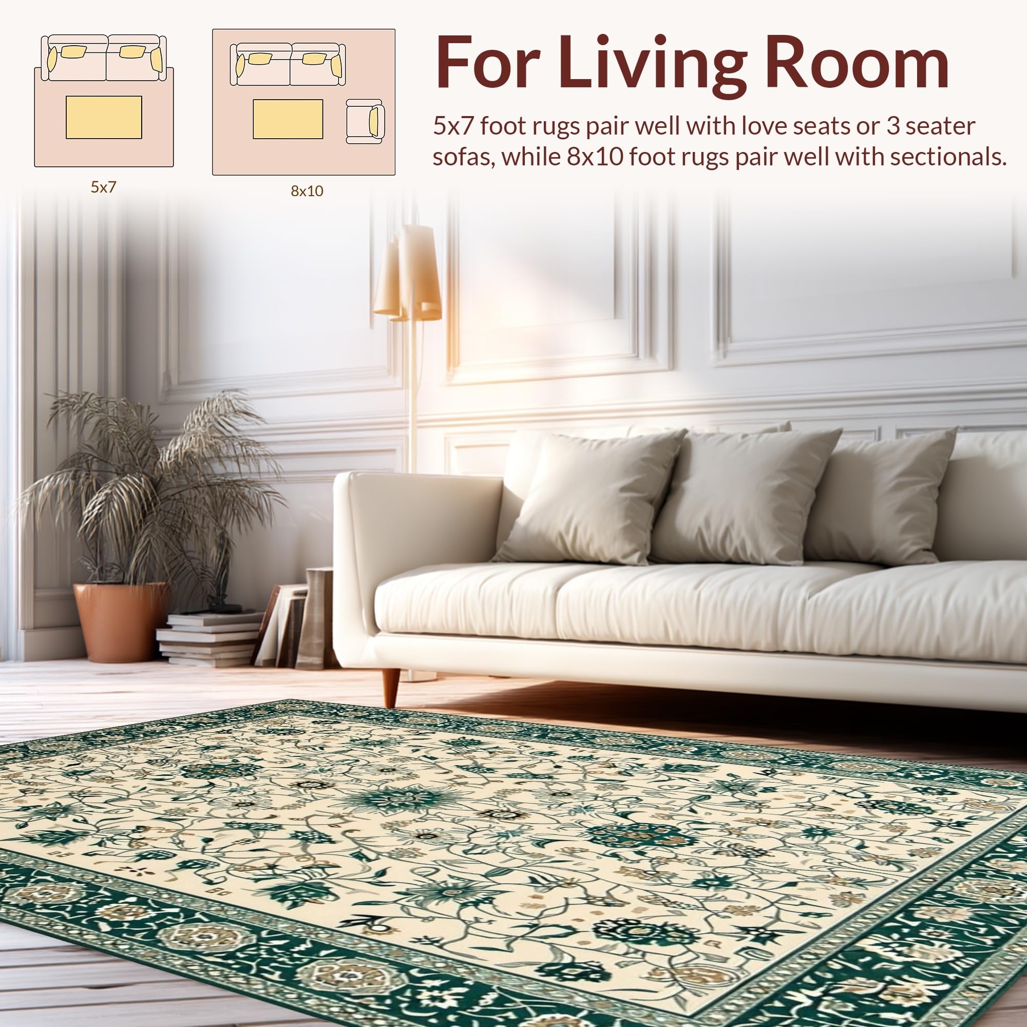 Ultra Soft Area Rug, Non Slip, Stain Resistant, Washable Area Rugs for Living Room, Bedroom, Charming Nature-Themed Palette(Ivory) Overview: