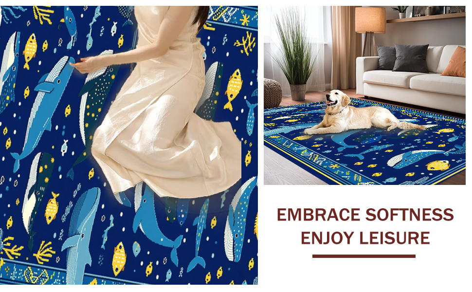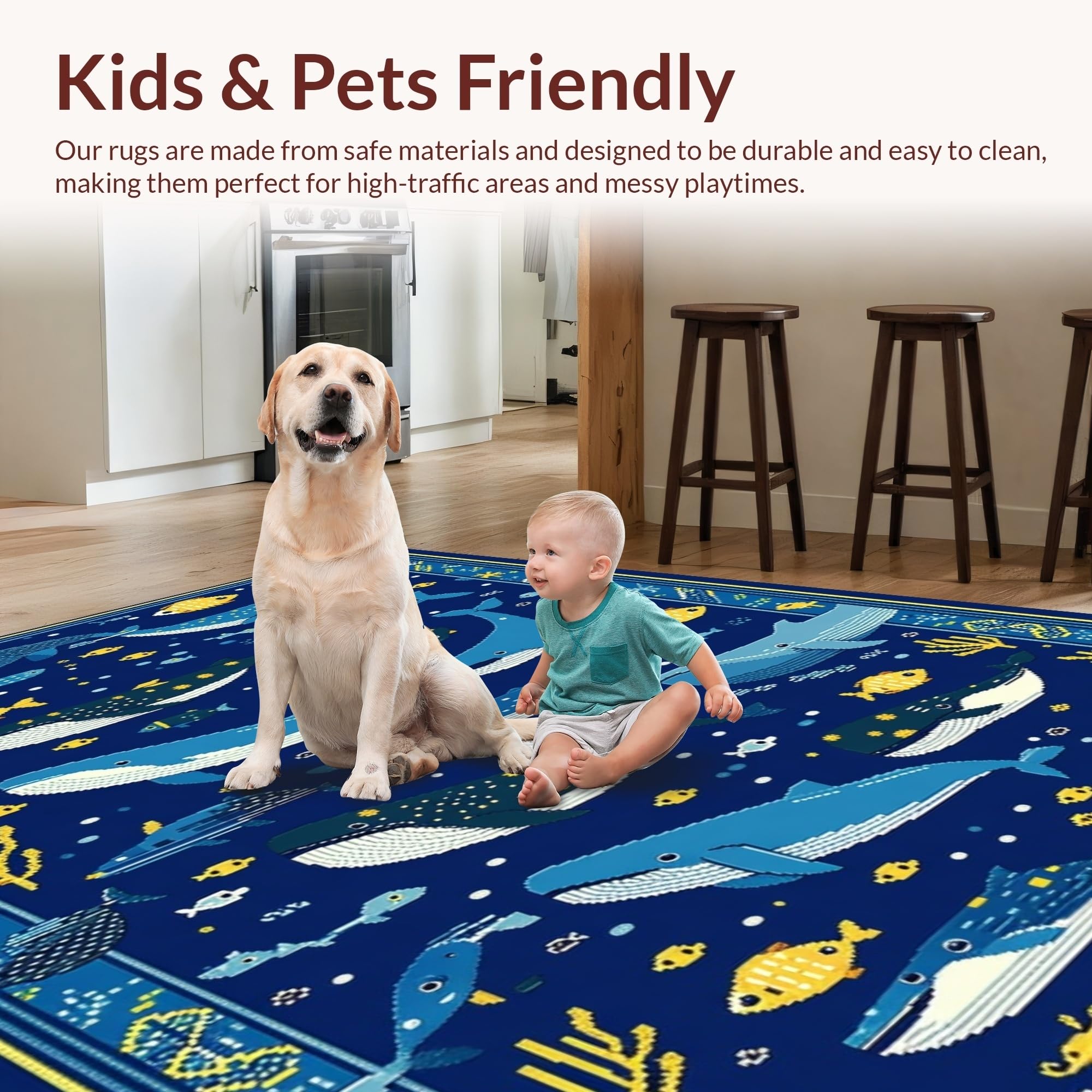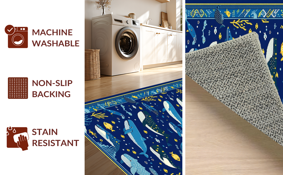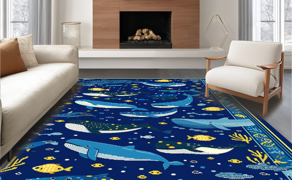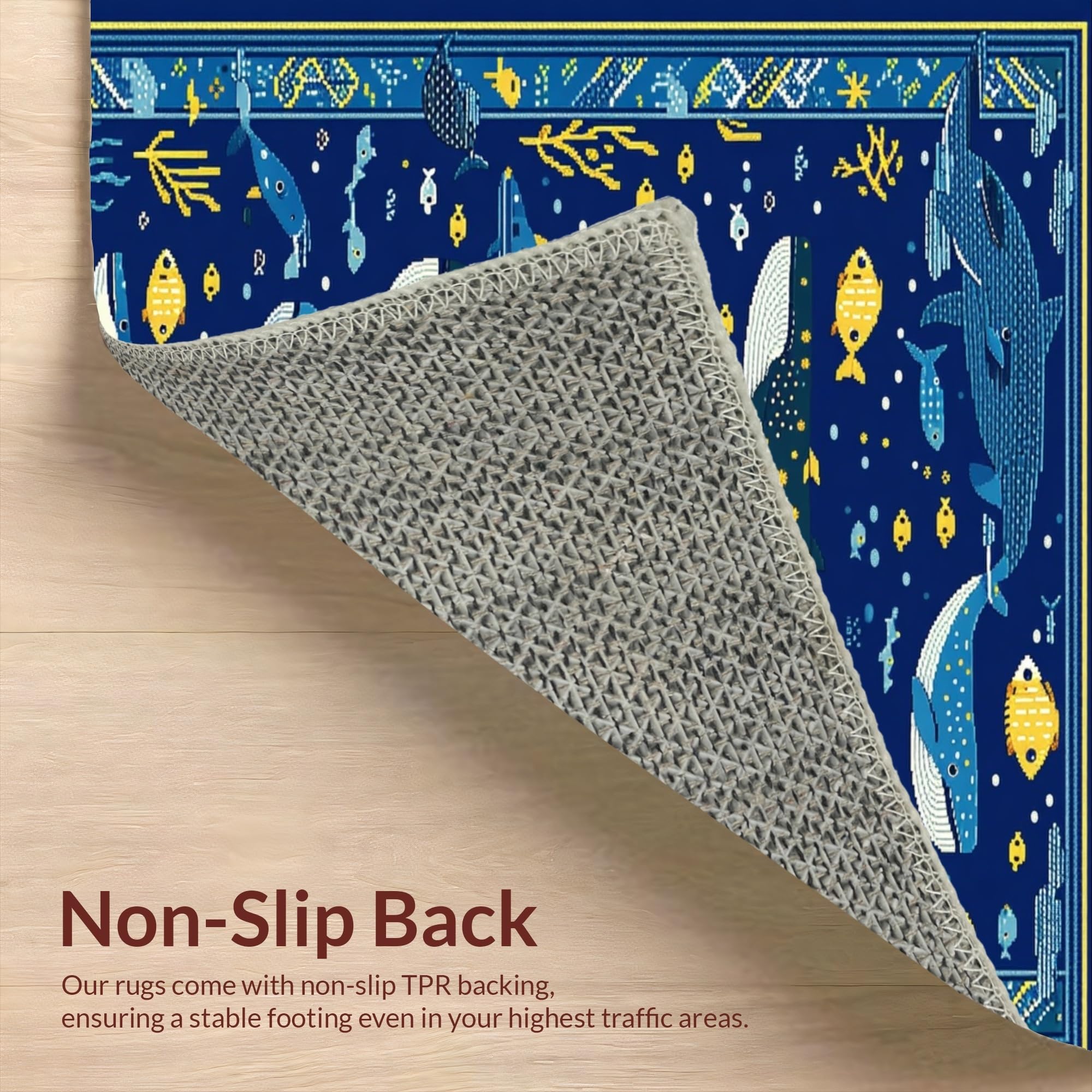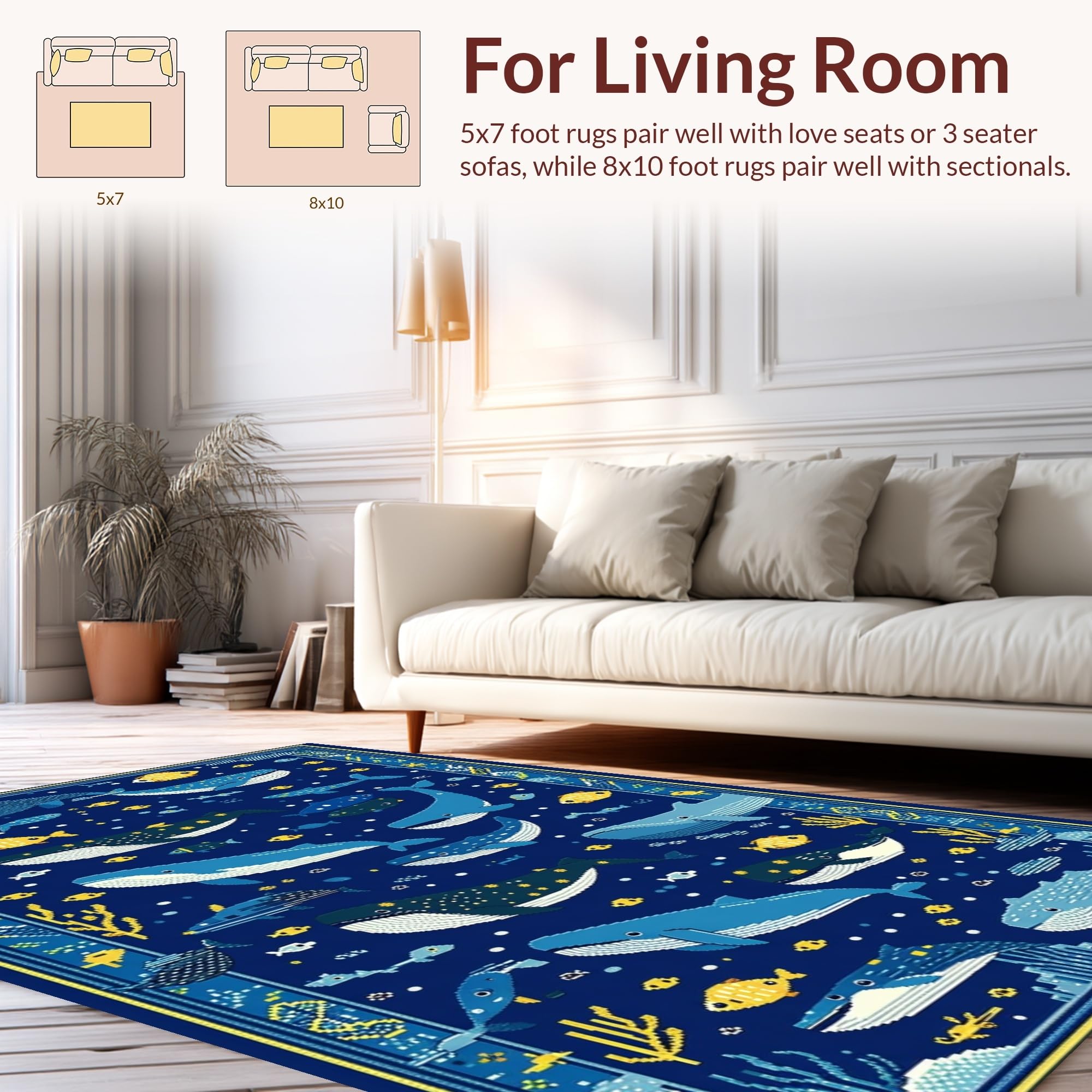 Ultra Soft Area Rug, Non Slip, Stain Resistant, Washable Area Rugs for Living Room, Bedroom, Charming Nautical ABC Pattern(Blue) Overview: