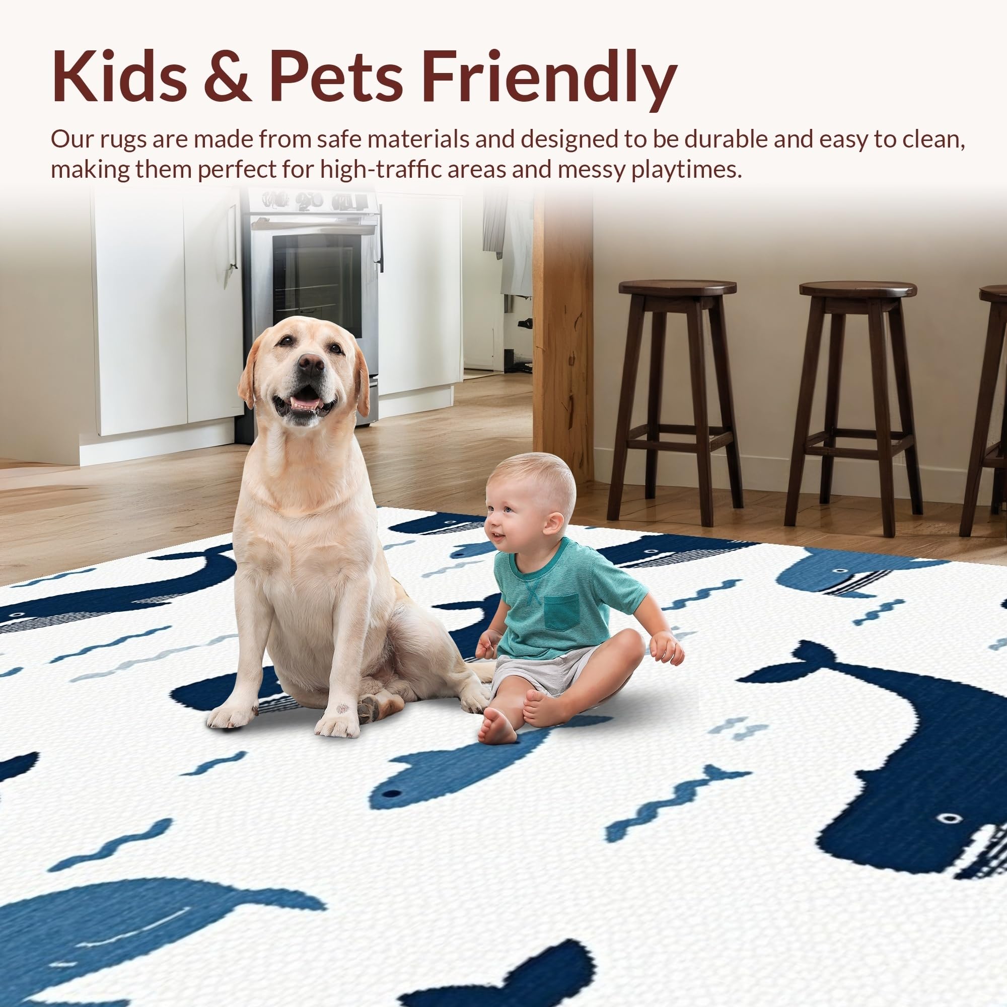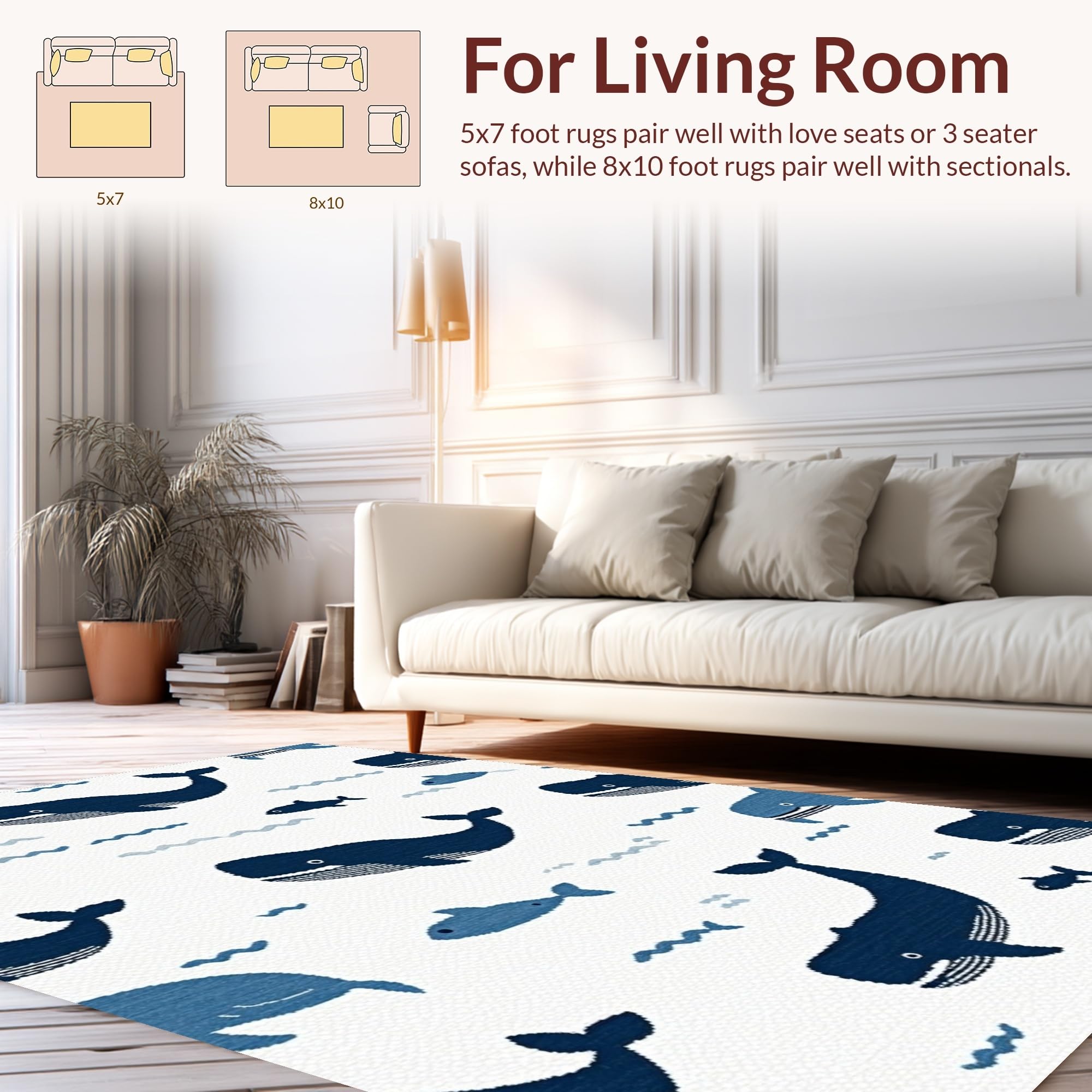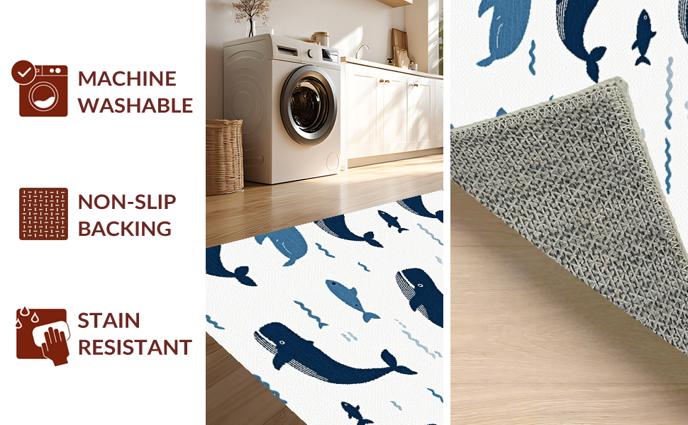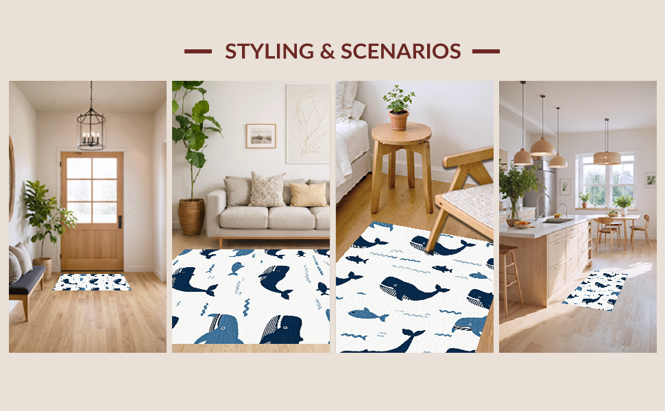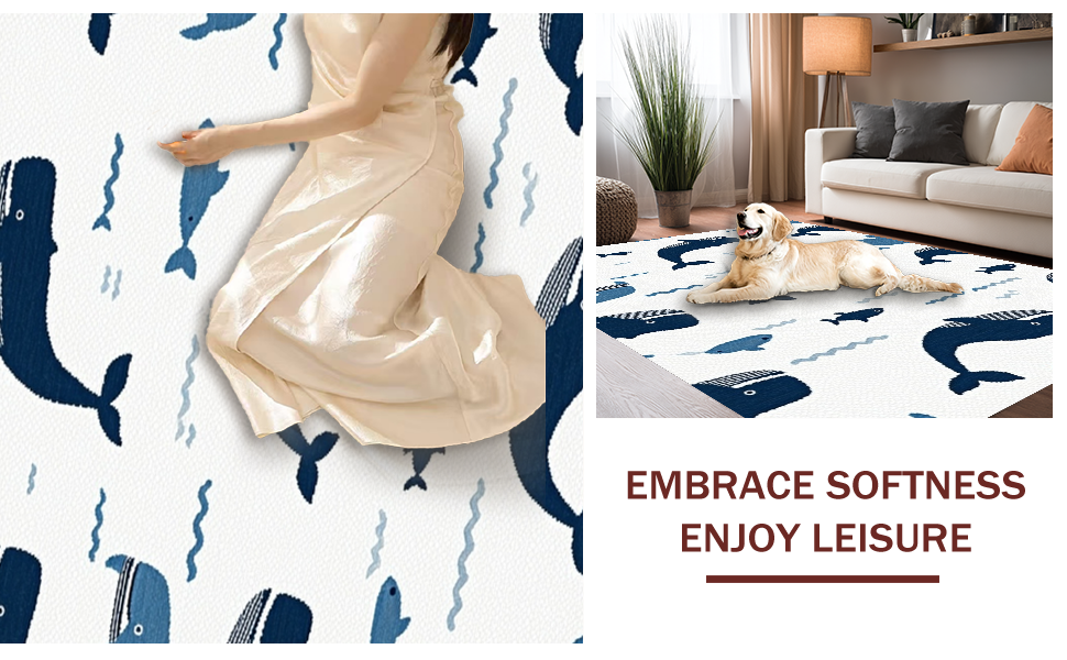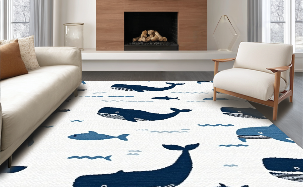 Ultra Soft Area Rug, Non Slip, Stain Resistant, Washable Area Rugs for Living Room, Bedroom, Charming Nautical Blue Aesthetic(Blue) Overview:
