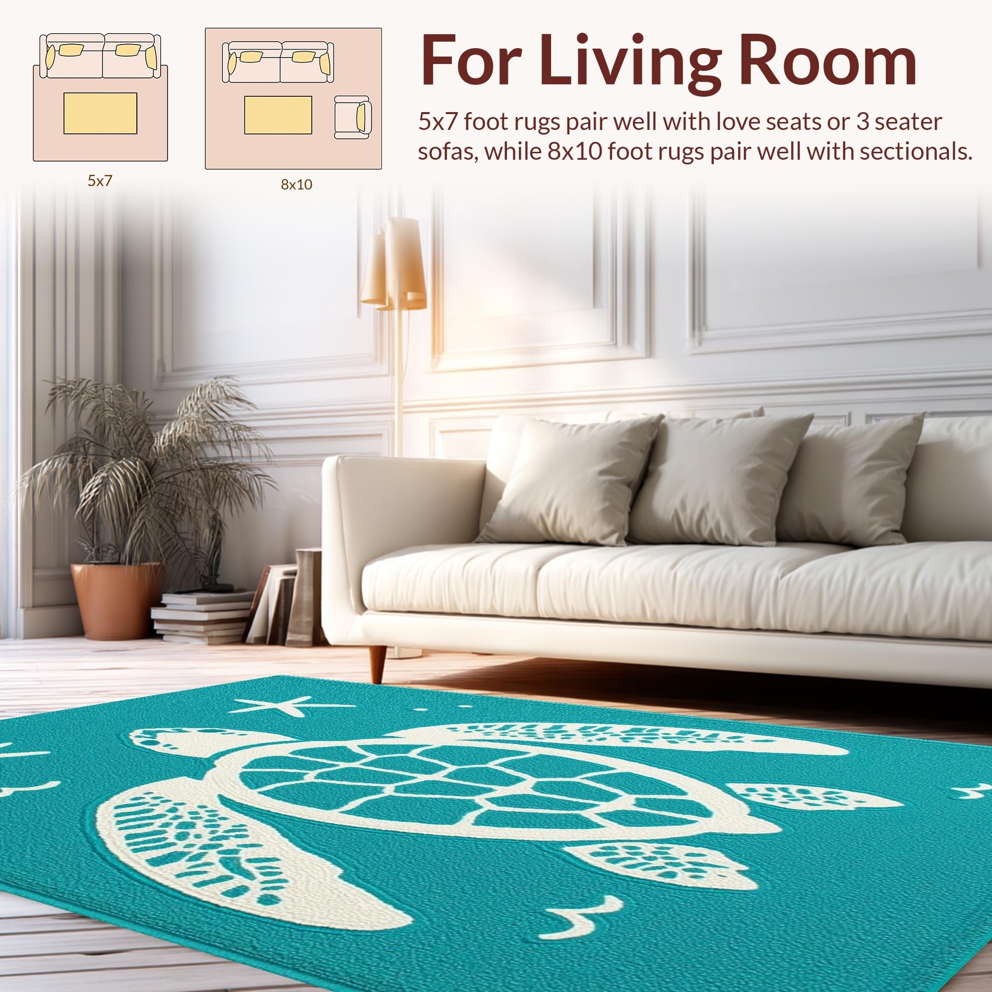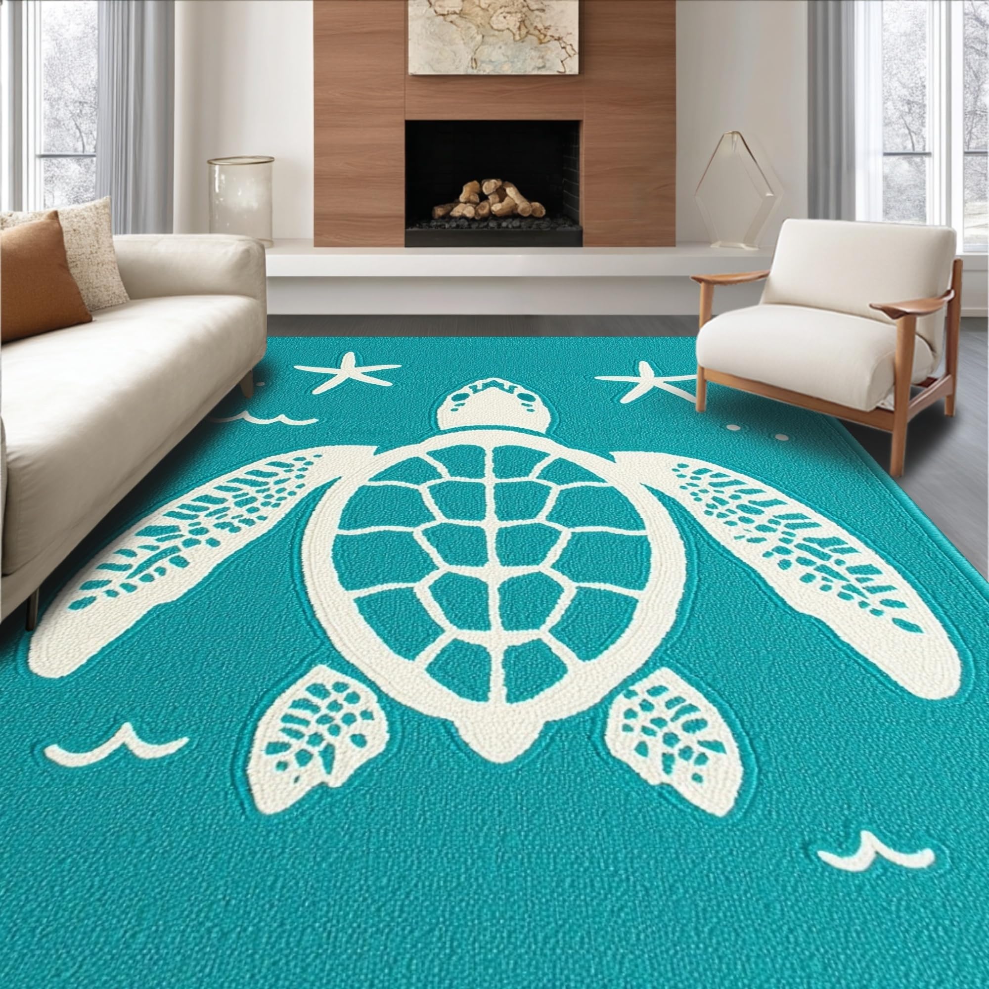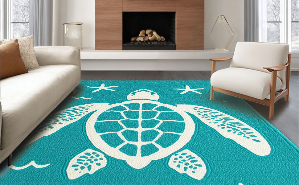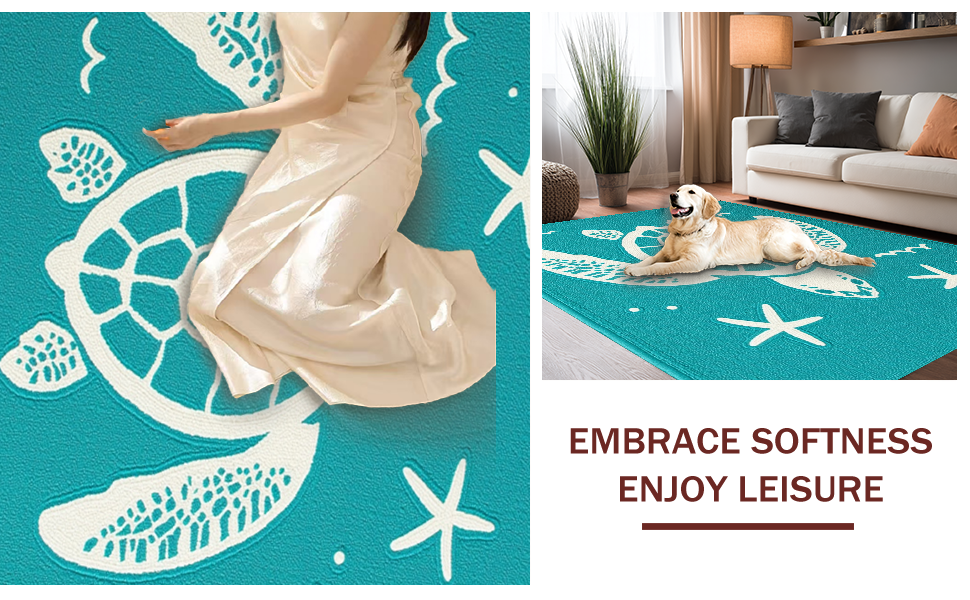 Ultra Soft Area Rug, Non Slip, Stain Resistant, Washable Area Rugs for Living Room, Bedroom, Charming Nautical Pattern Design(Blue) Overview: