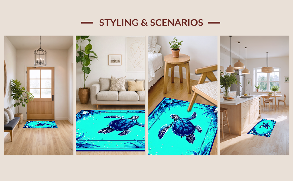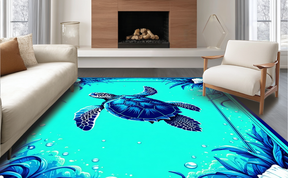 Ultra Soft Area Rug, Non Slip, Stain Resistant, Washable Area Rugs for Living Room, Bedroom, Charming Nautical Patterned Touch(Blue) Overview: