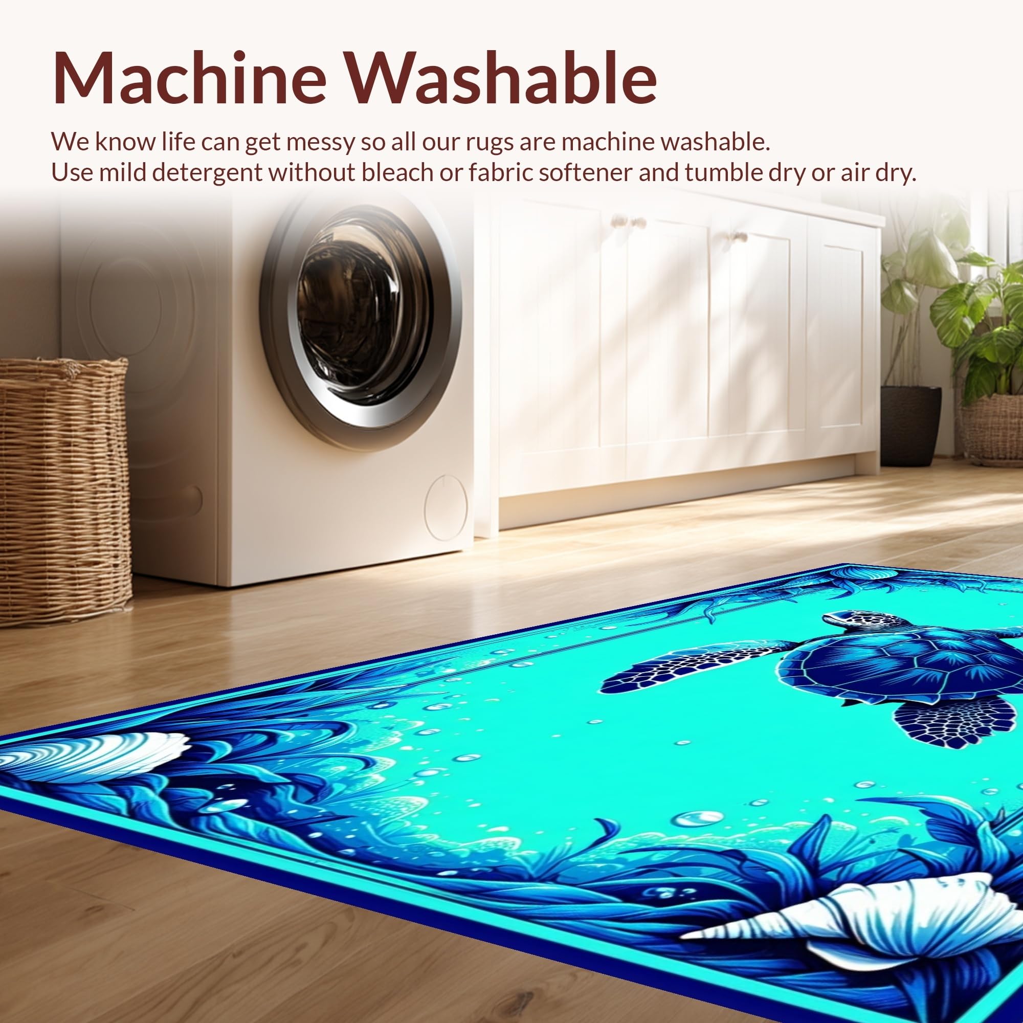 - Machine Washable: Our rugs can be easily thrown in the wash machine.