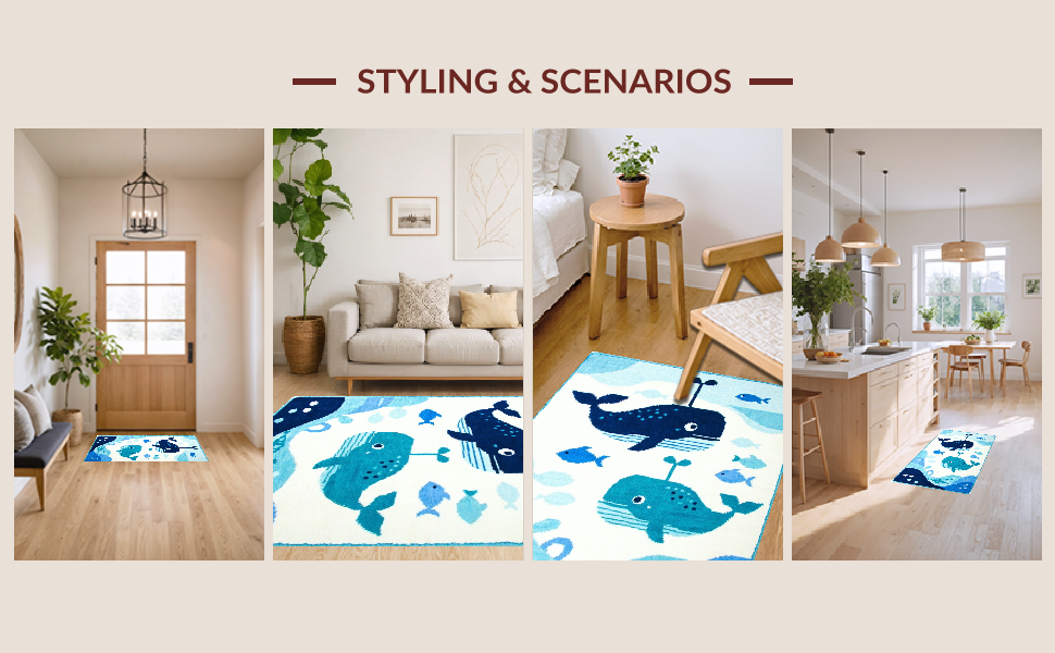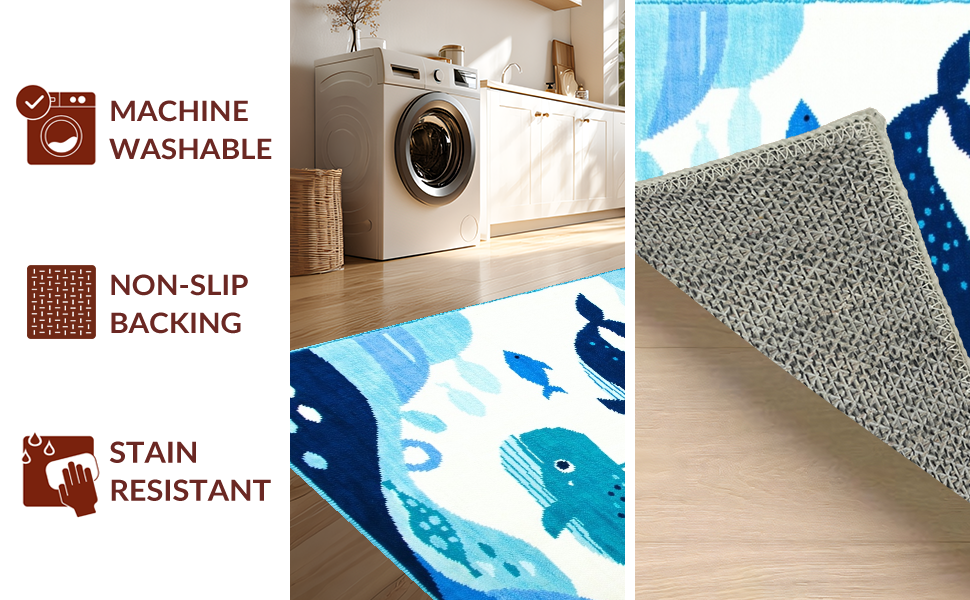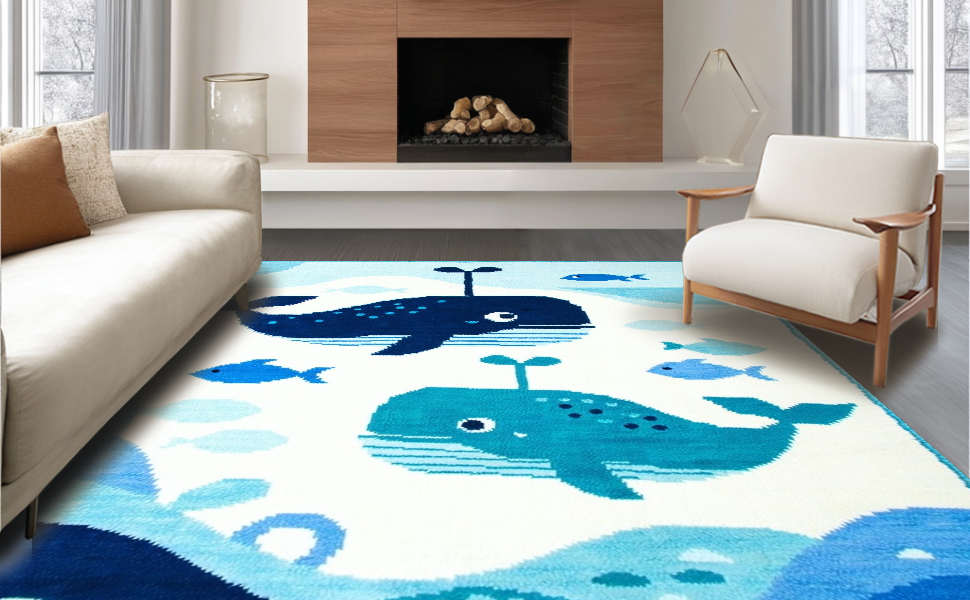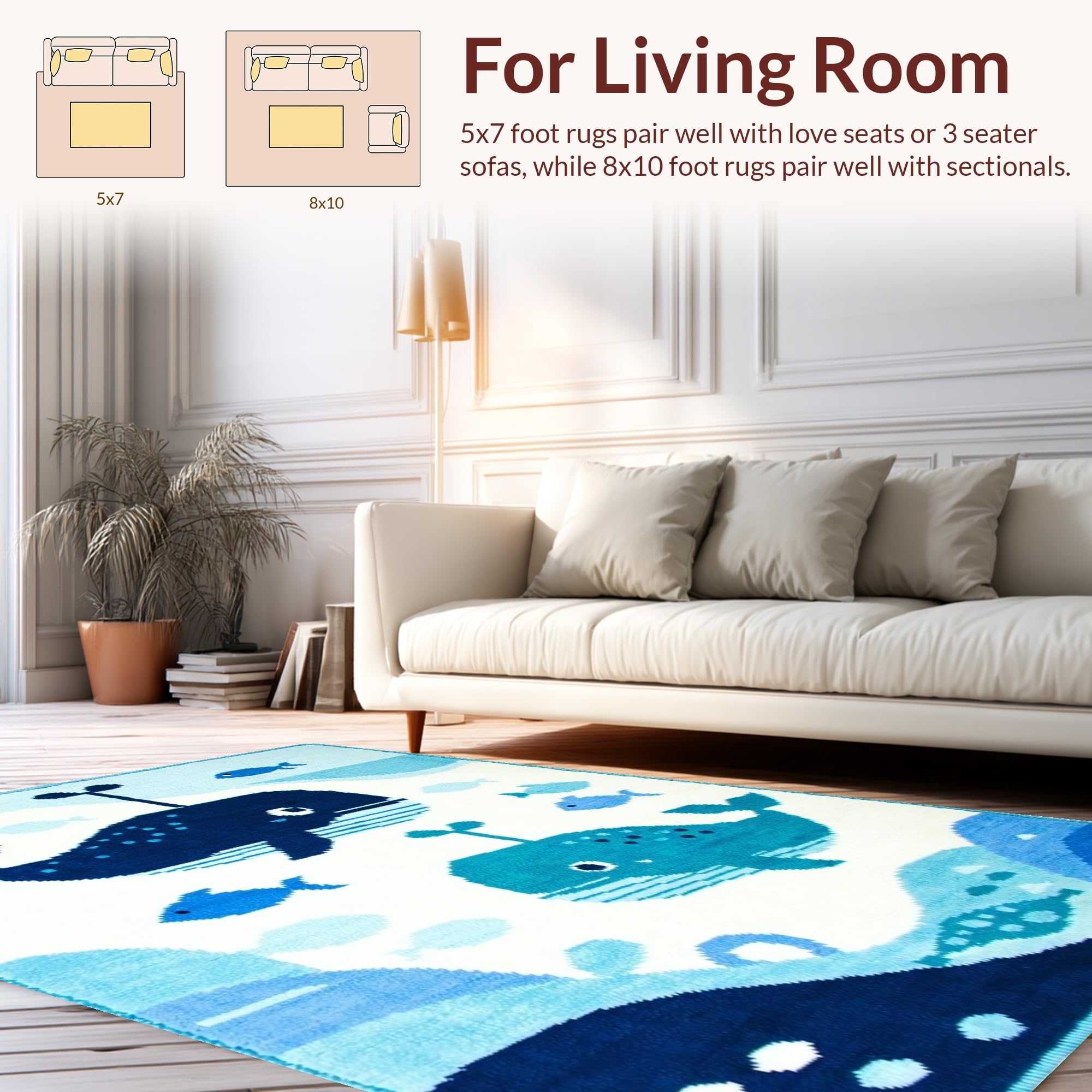 Ultra Soft Area Rug, Non Slip, Stain Resistant, Washable Area Rugs for Living Room, Bedroom, Charming Nautical Theme Design(Blue) Overview: