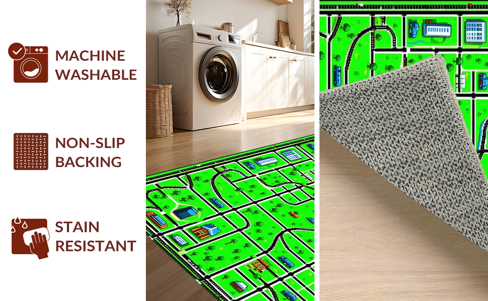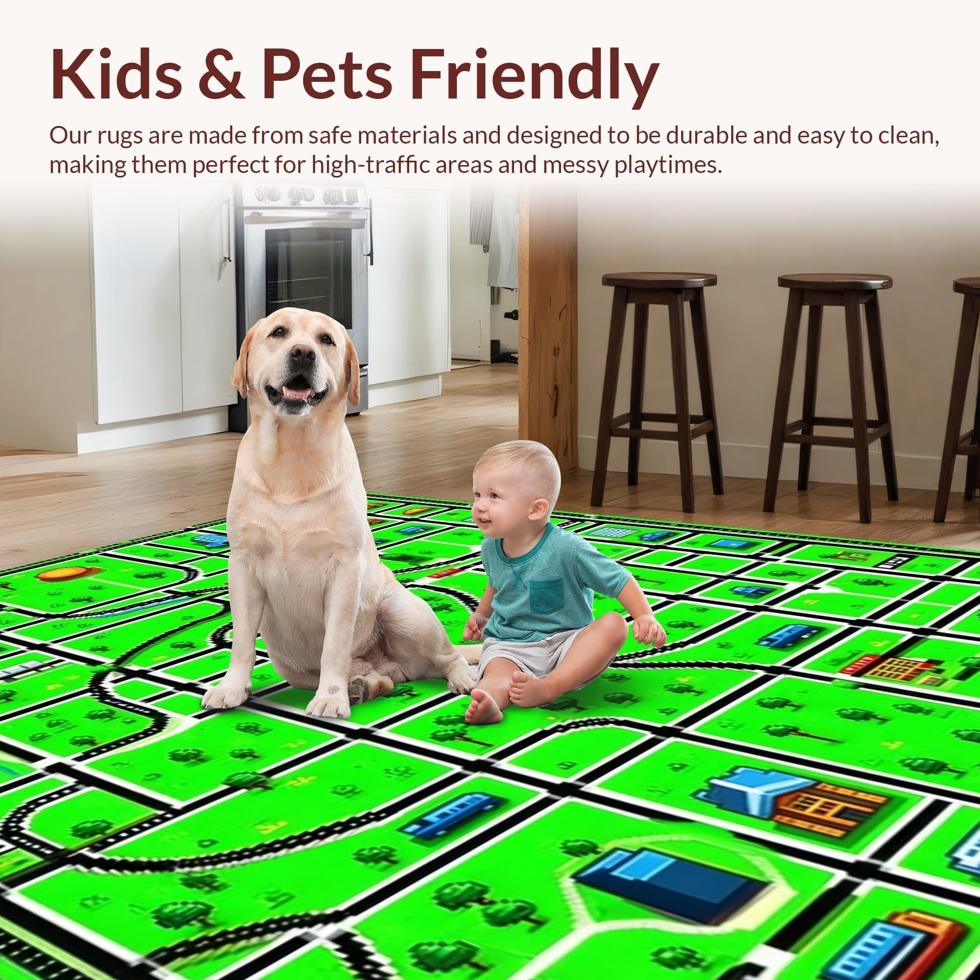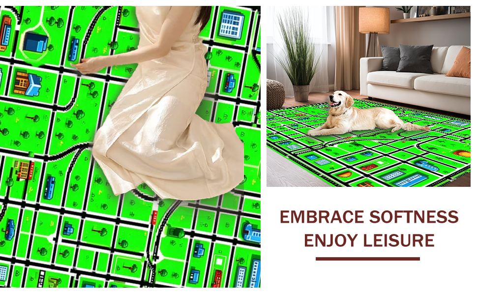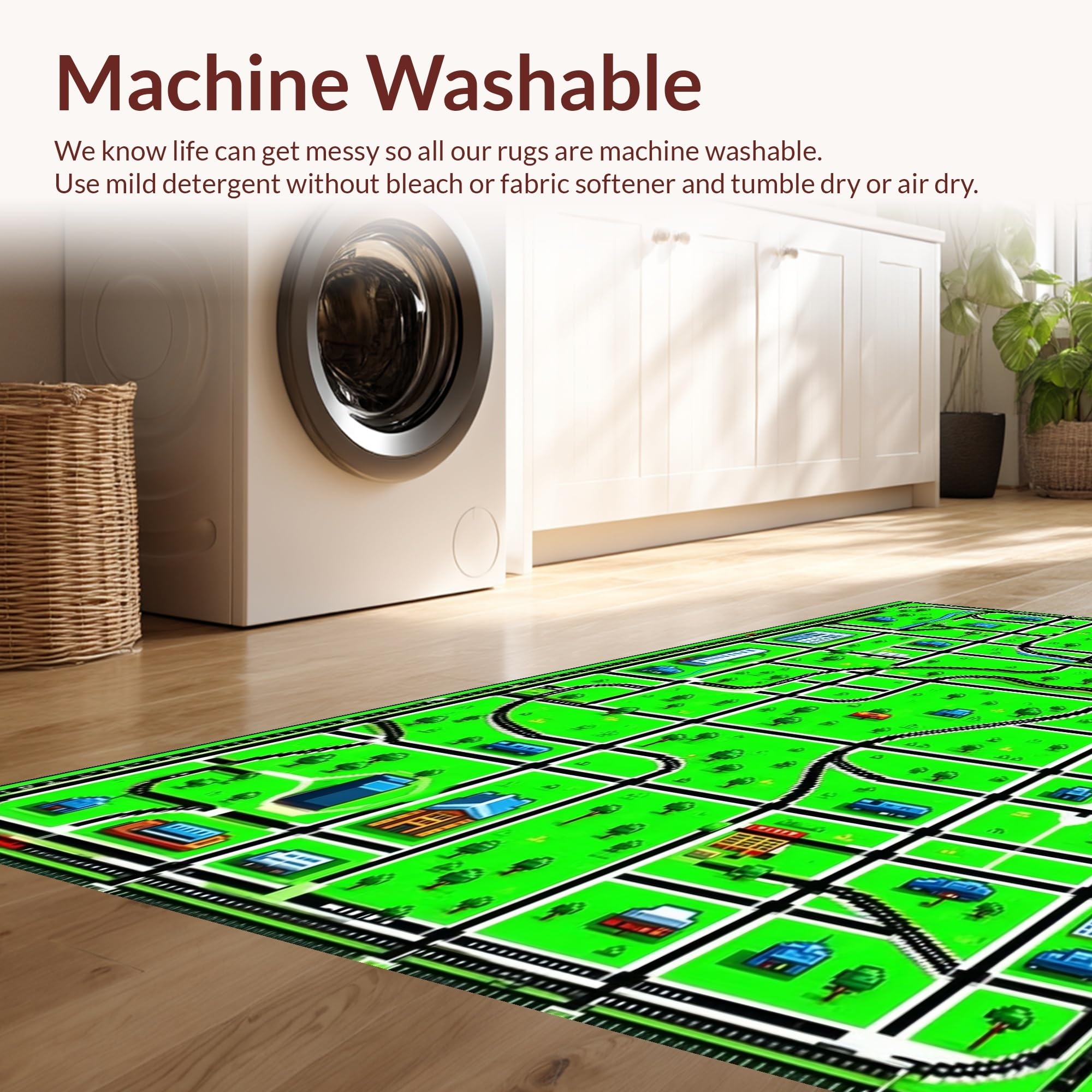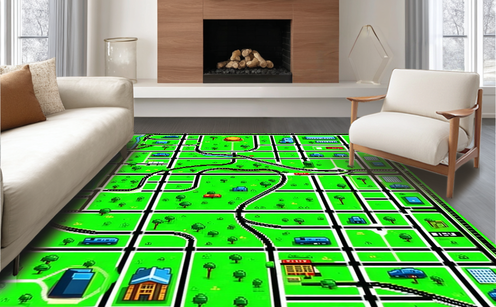 Ultra Soft Area Rug, Non Slip, Stain Resistant, Washable Area Rugs for Living Room, Bedroom, Charming Neighborhood Scene Rug(Green) Overview: