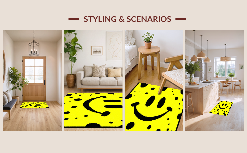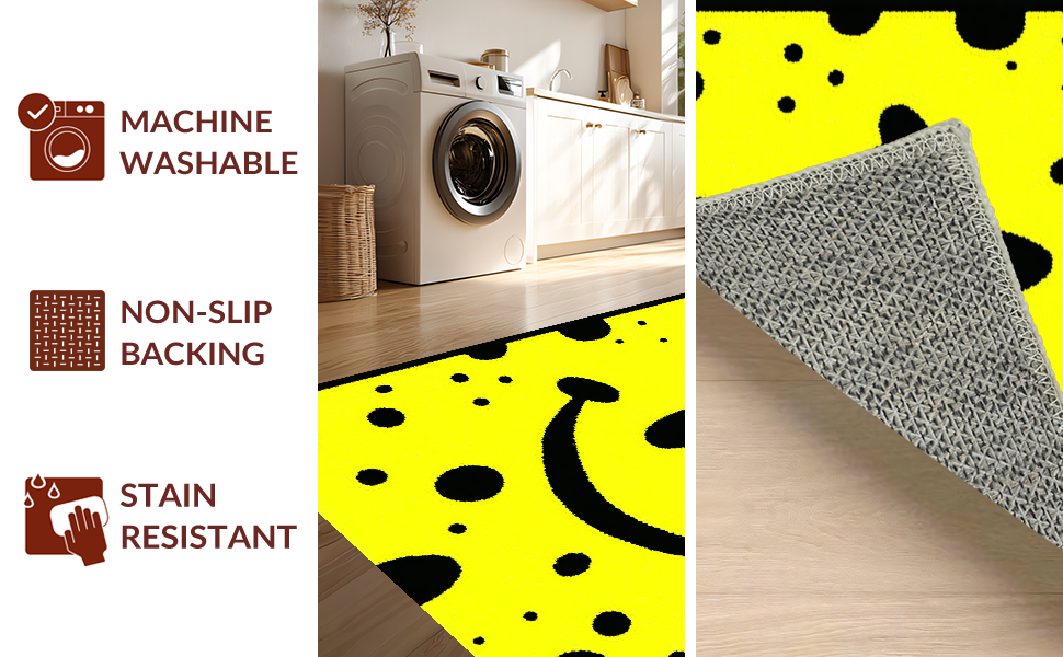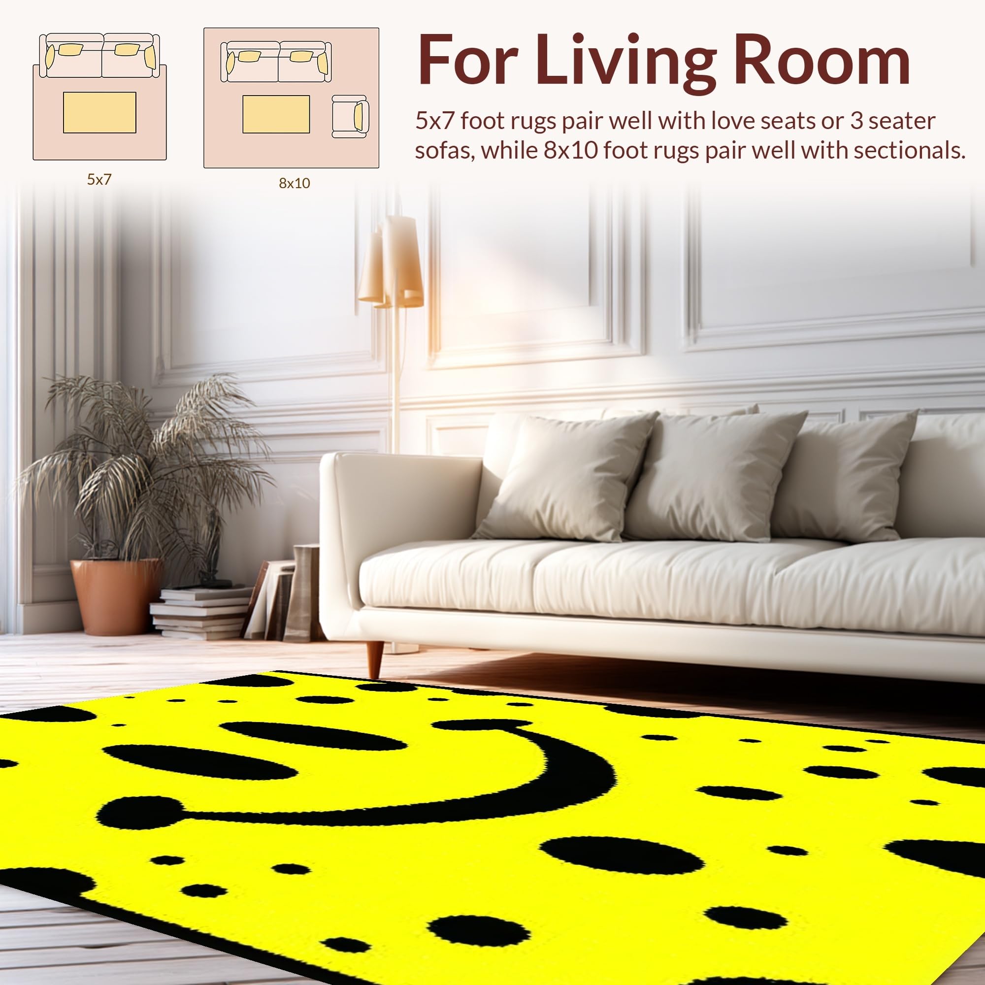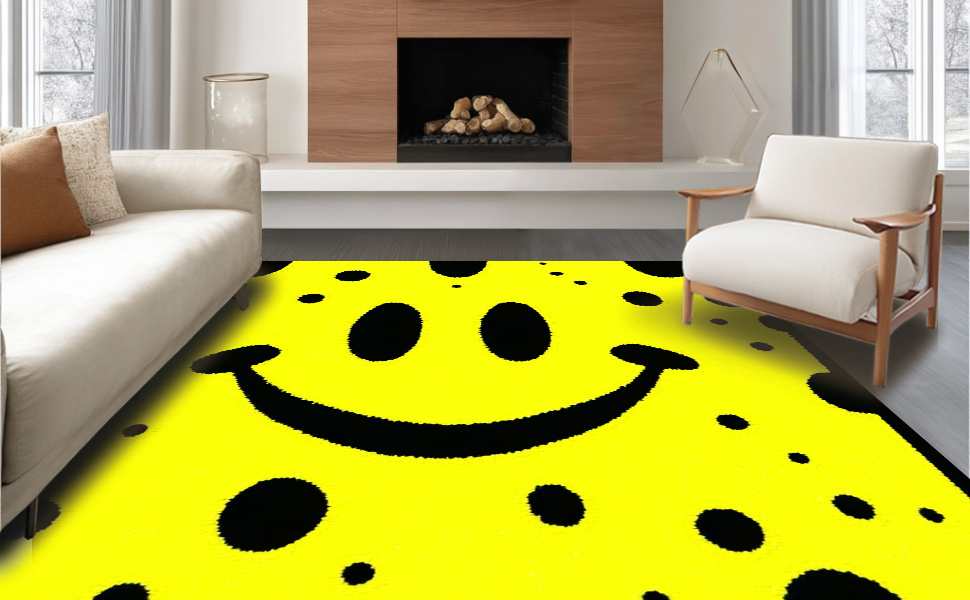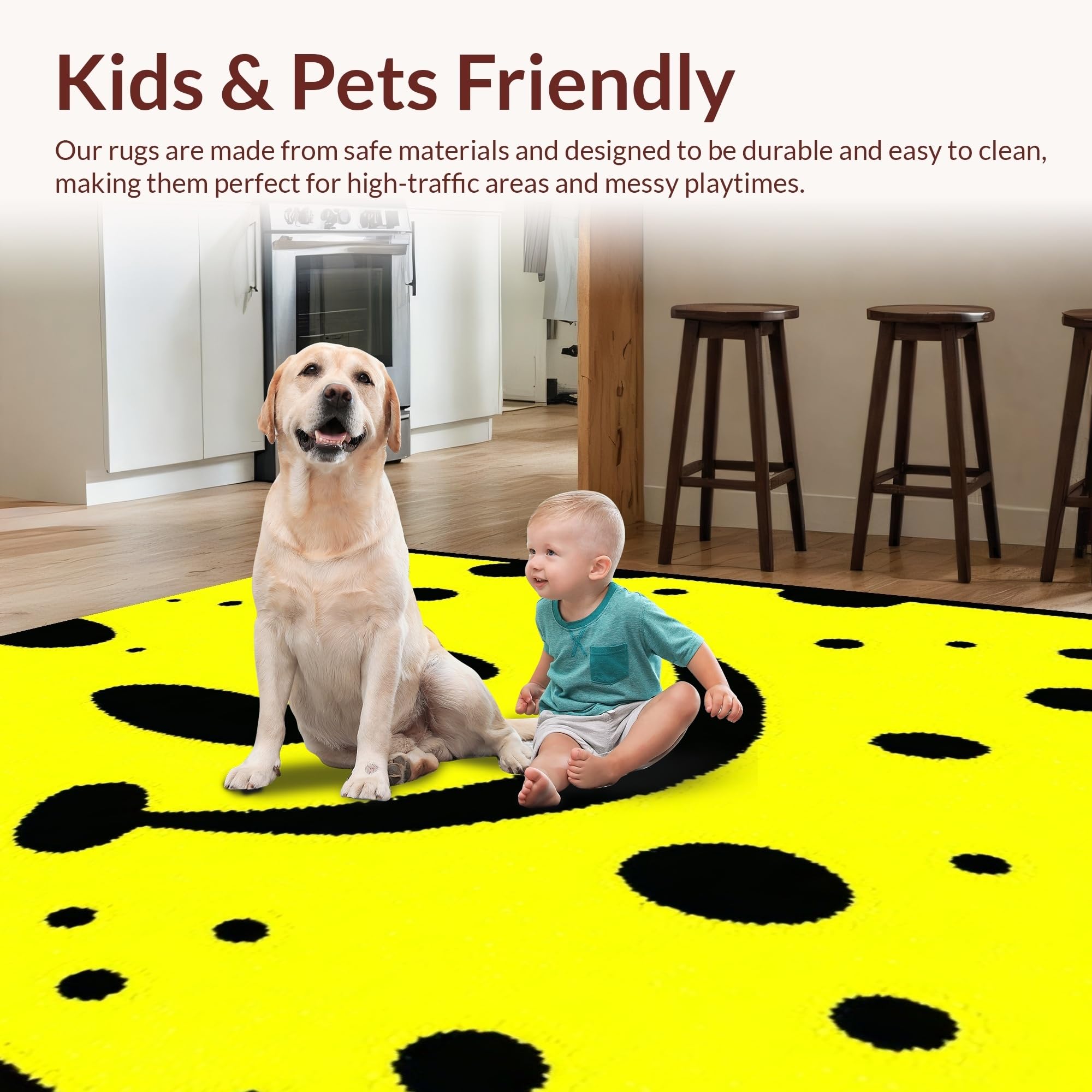 Ultra Soft Area Rug, Non Slip, Stain Resistant, Washable Area Rugs for Living Room, Bedroom, Charming Nostalgic Trippy Bath Accent(Yellow) Overview: