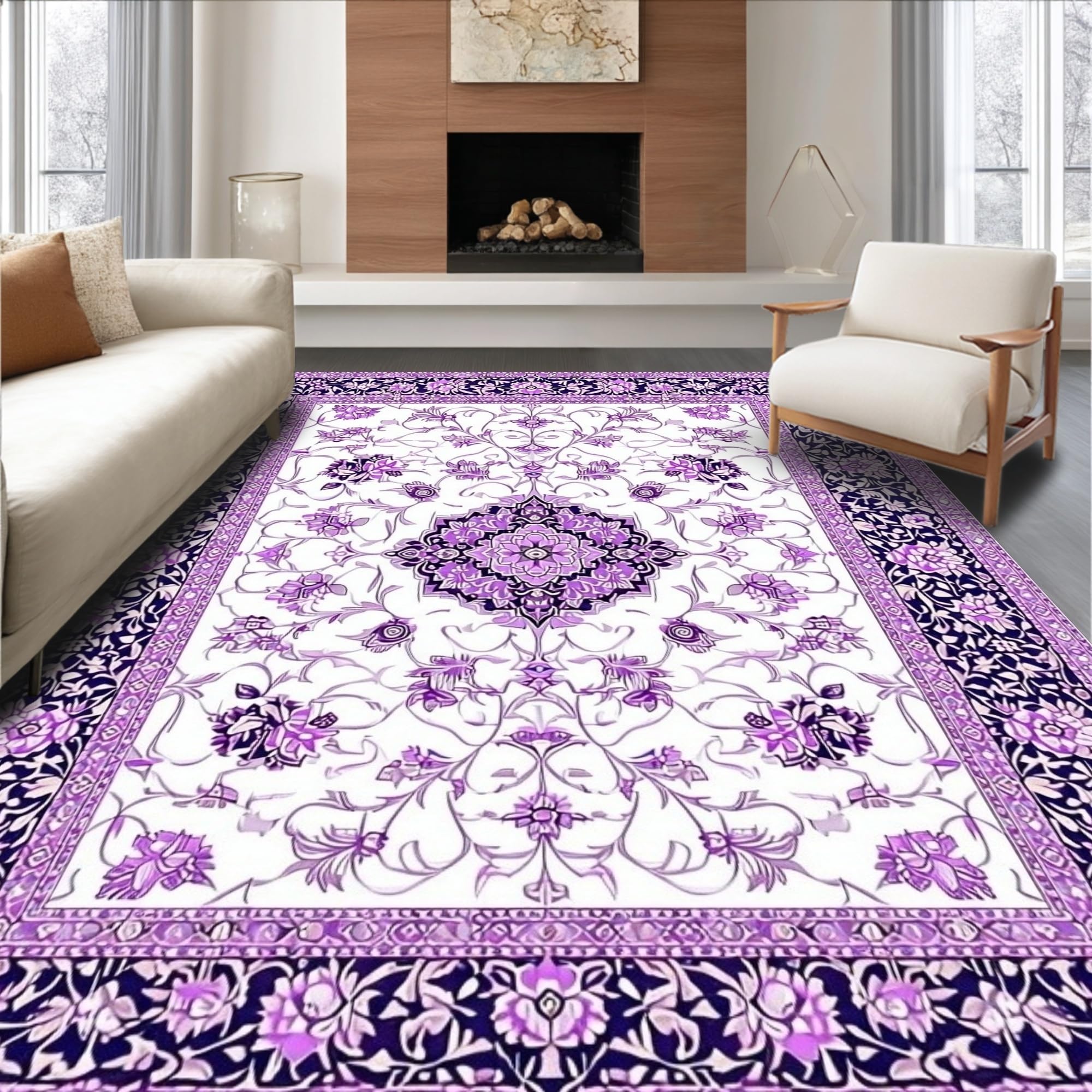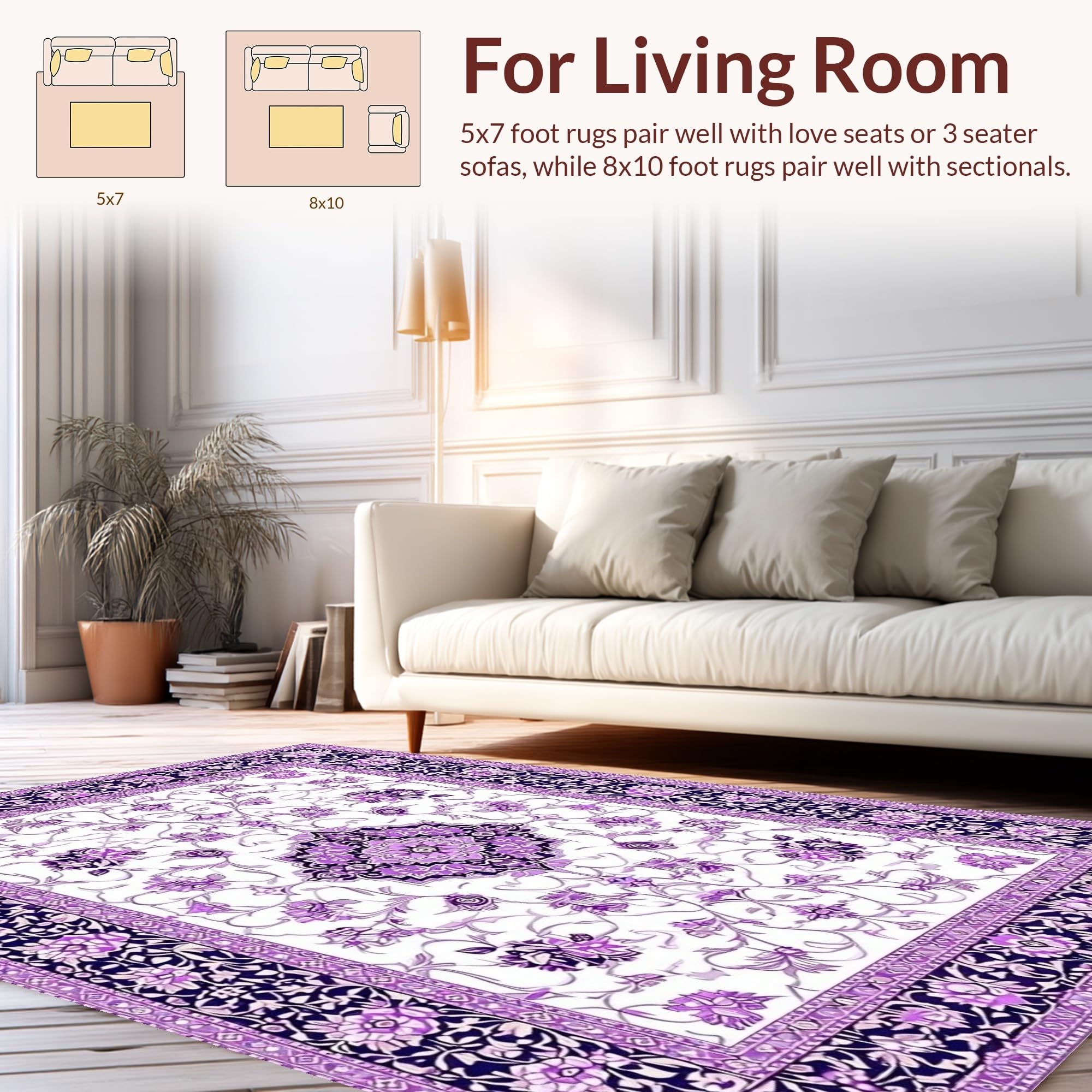 Ultra Soft Area Rug, Non Slip, Stain Resistant, Washable Area Rugs for Living Room, Bedroom, Charming Pastel Botanical Artwork(White) Overview: