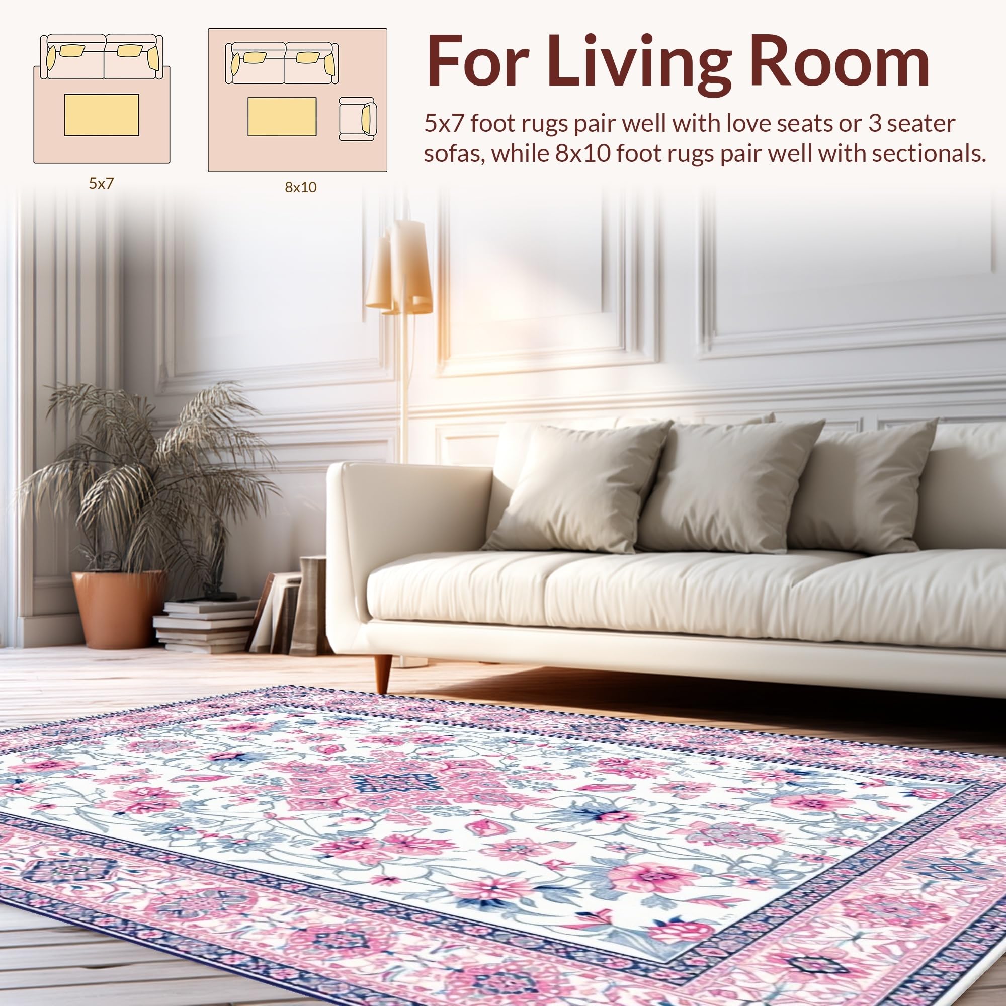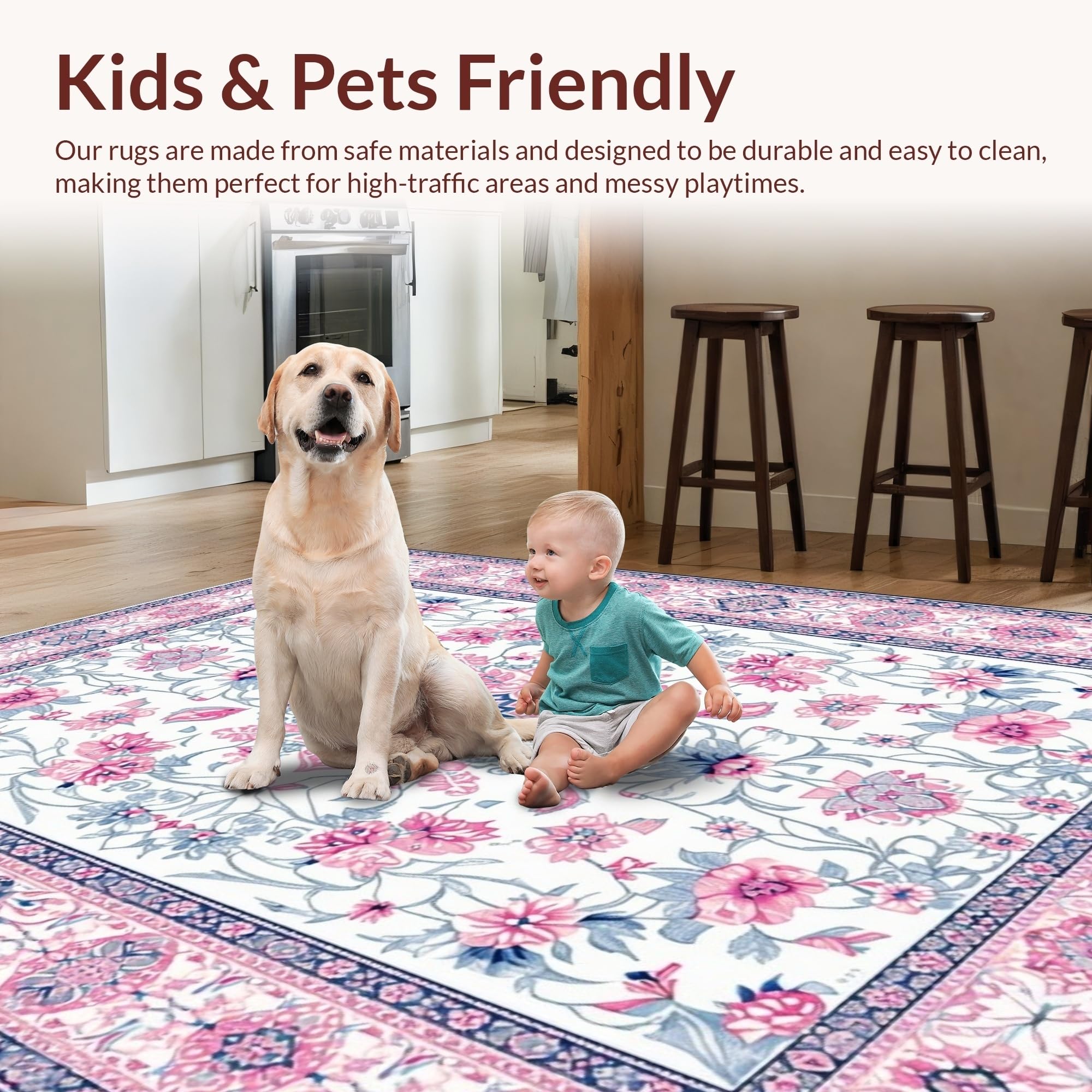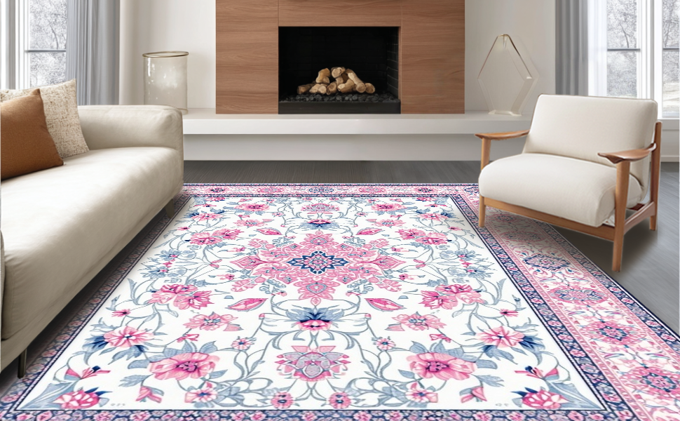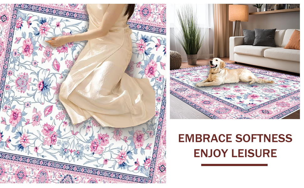 Ultra Soft Area Rug, Non Slip, Stain Resistant, Washable Area Rugs for Living Room, Bedroom, Charming Pastel Botanical Flourish(Pink) Overview:
