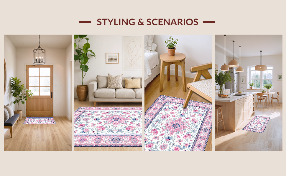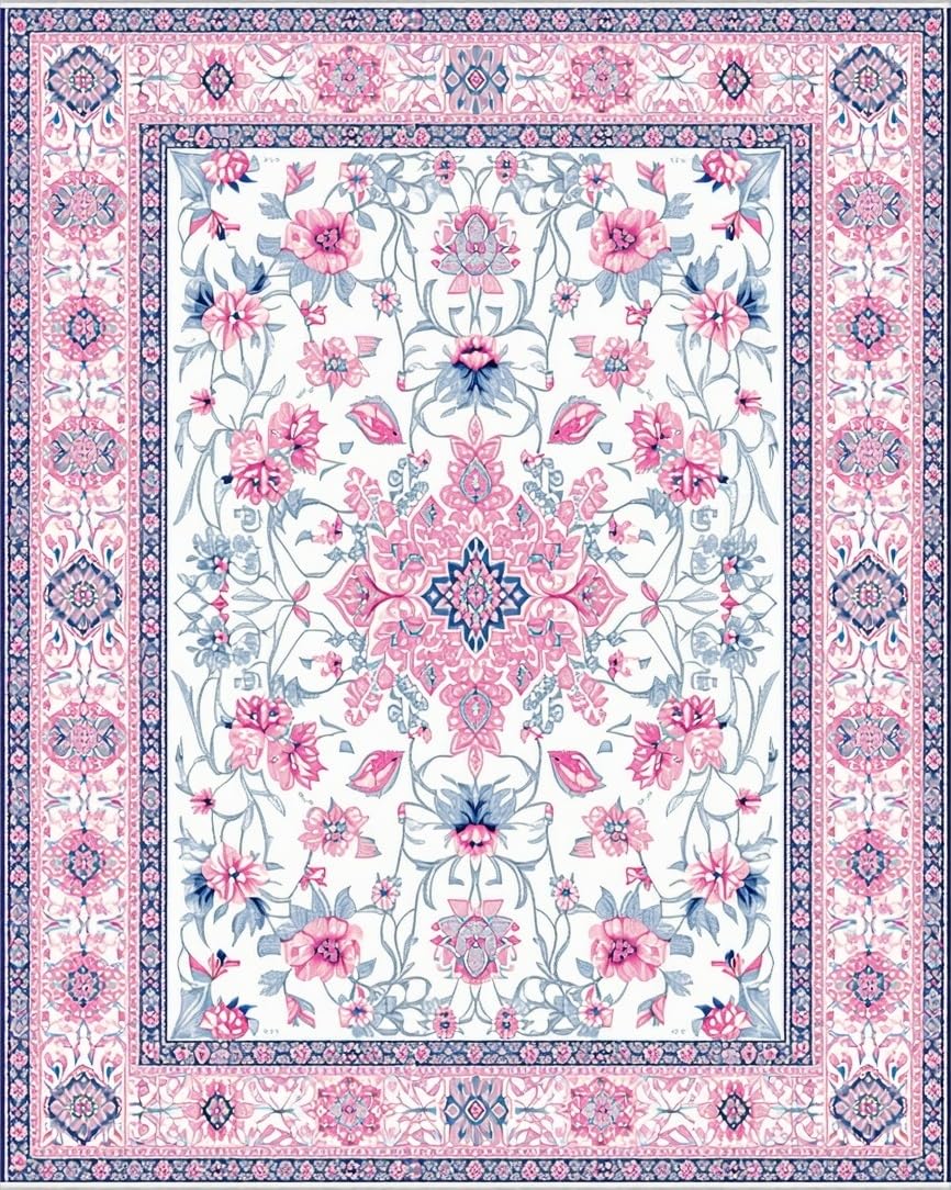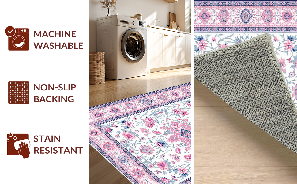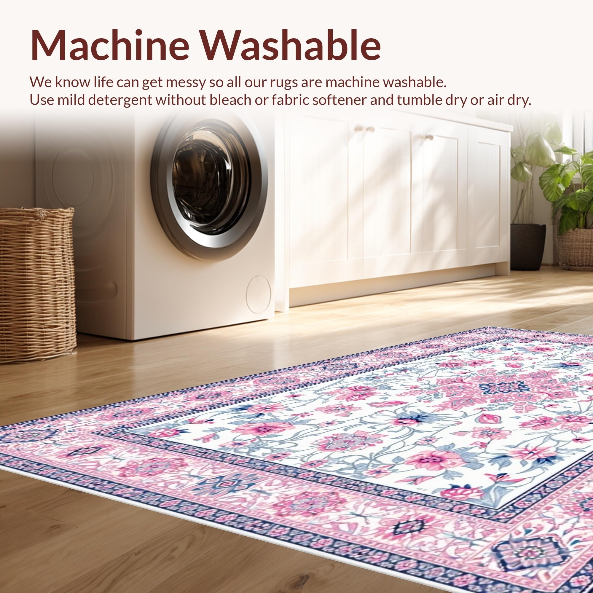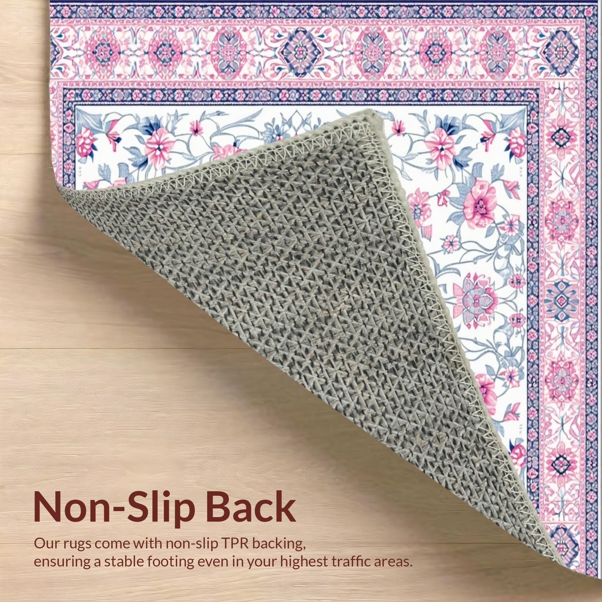 Ultra Soft Area Rug, Non Slip, Stain Resistant, Washable Area Rugs for Living Room, Bedroom, Charming Pastel Botanical Flourish(Pink) Overview: