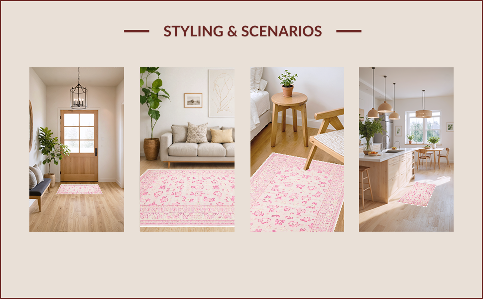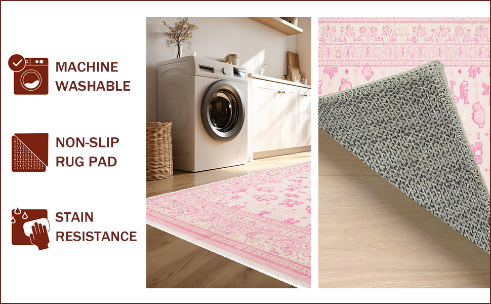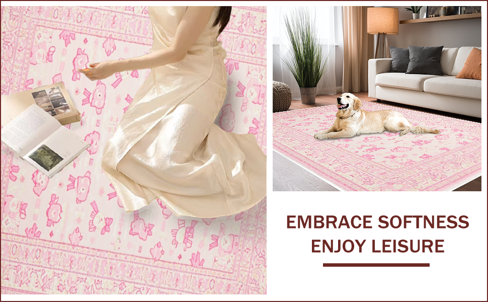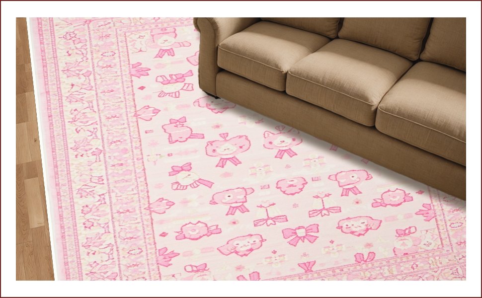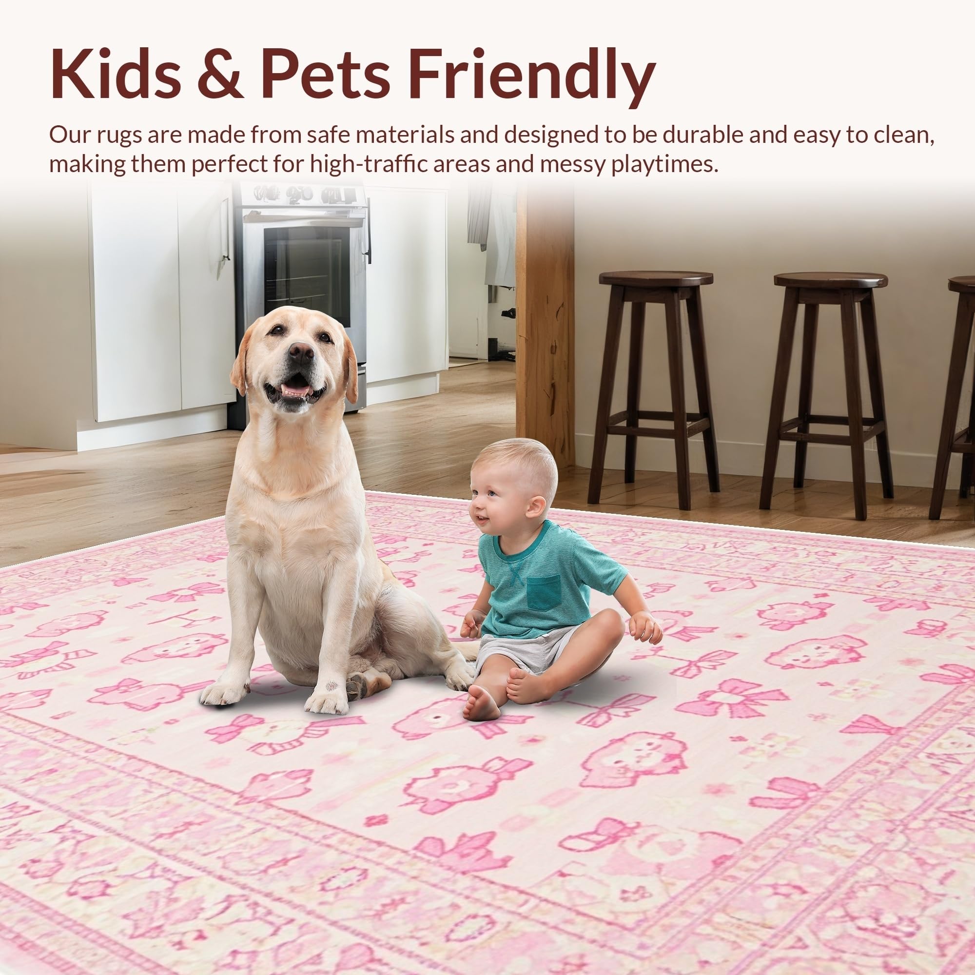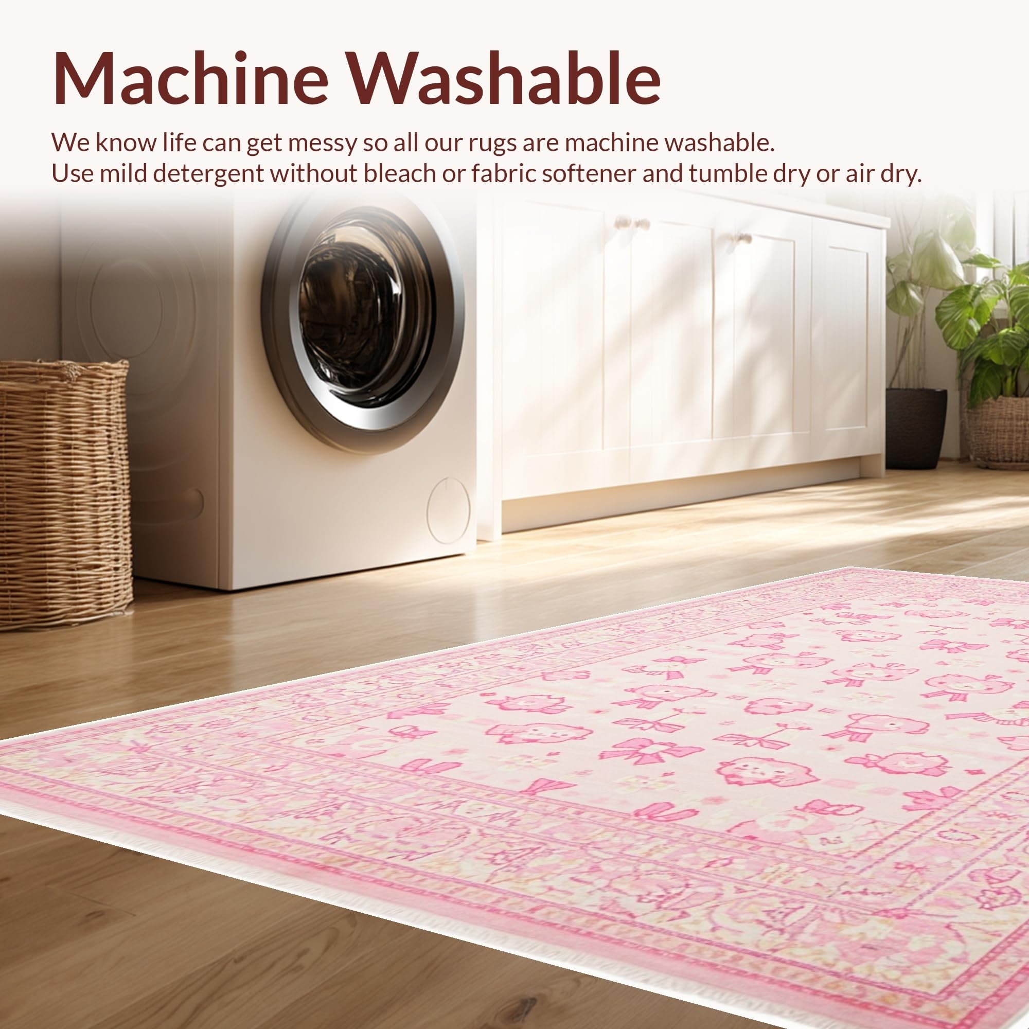 Ultra Soft Area Rug, Non Slip, Stain Resistant, Washable Area Rugs for Living Room, Bedroom, Charming Pastel Bow Aesthetic(Pink) Overview: