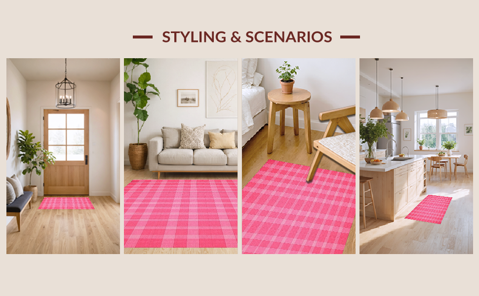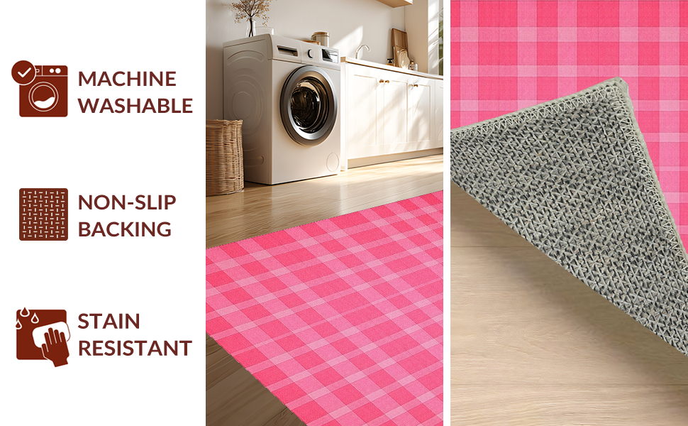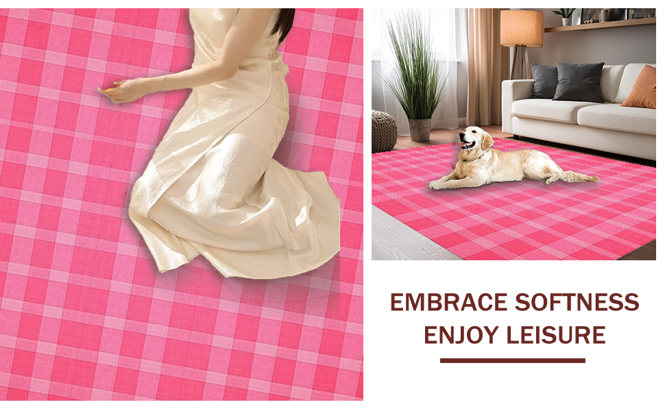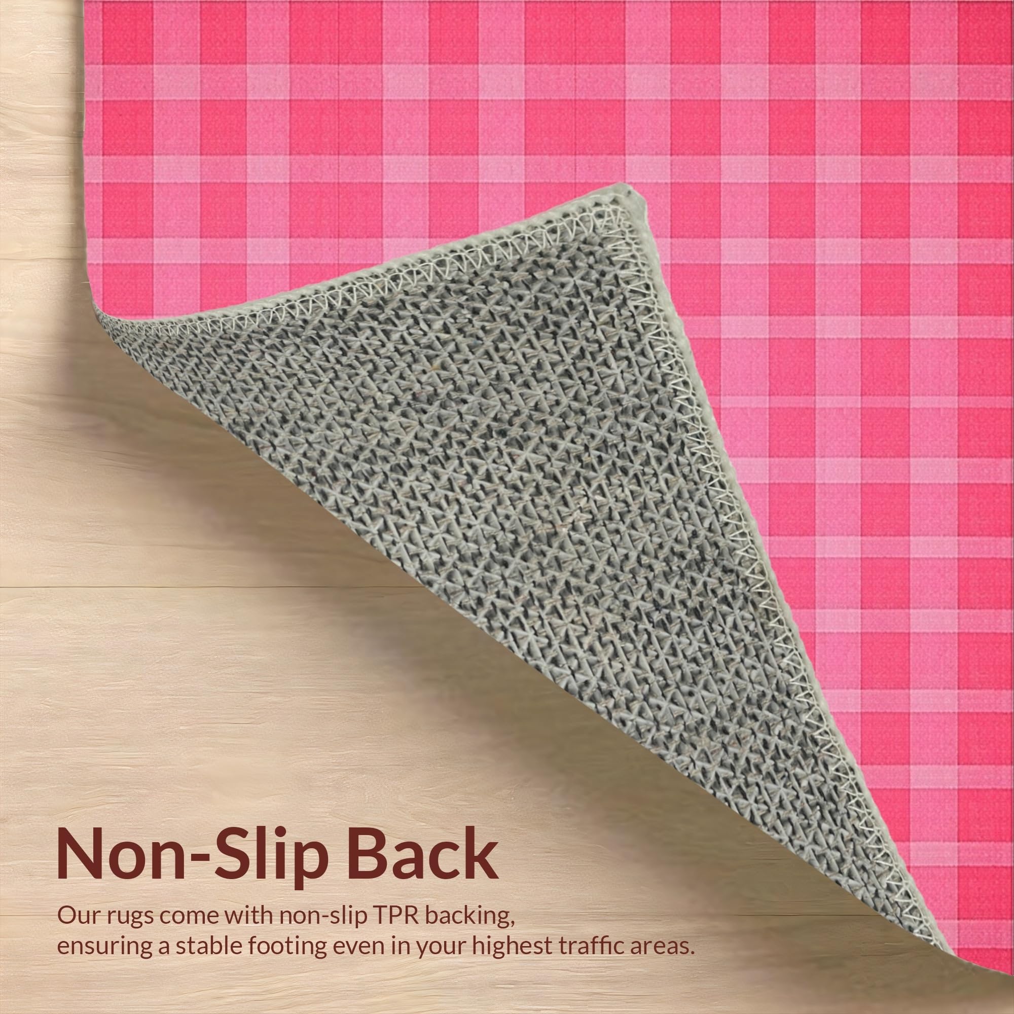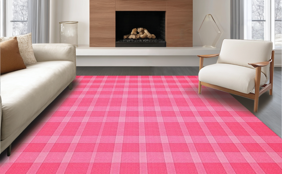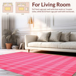 Ultra Soft Area Rug, Non Slip, Stain Resistant, Washable Area Rugs for Living Room, Bedroom, Charming Pastel Checkered Texture(Pink) Overview: