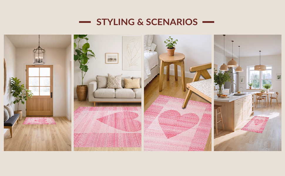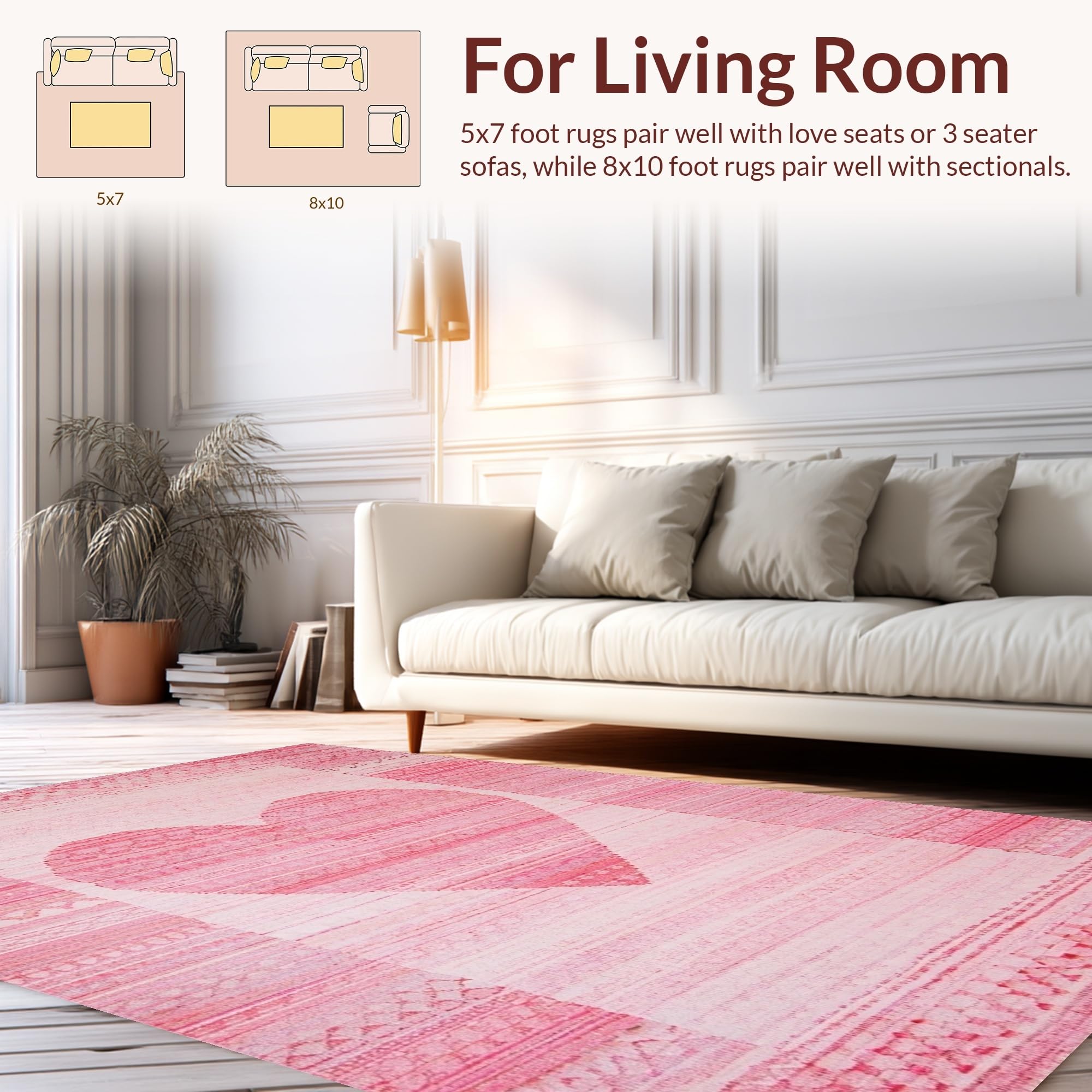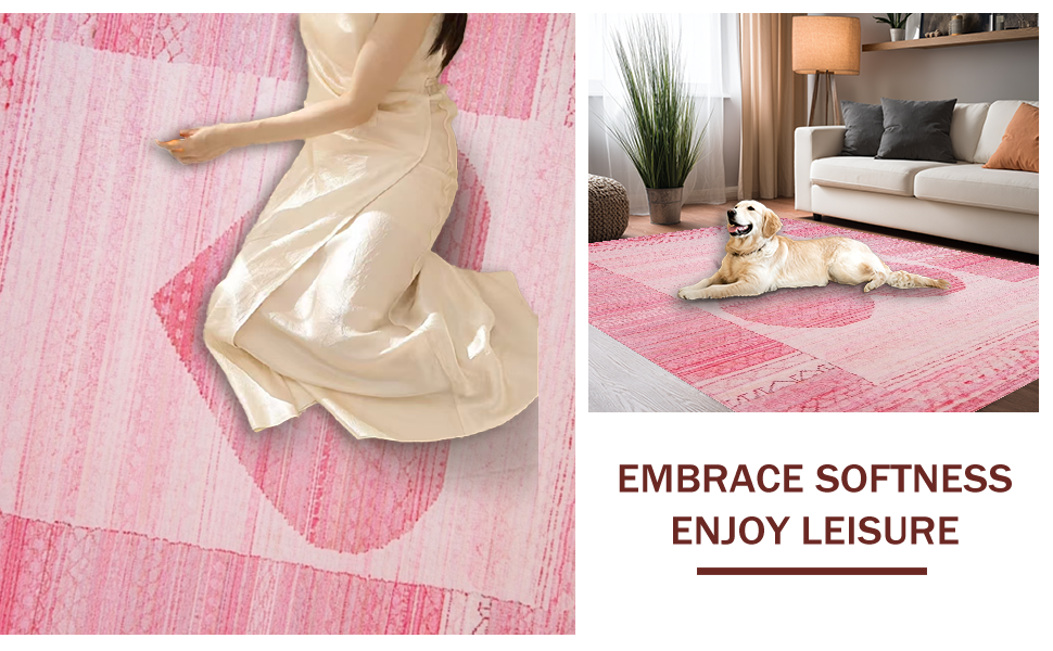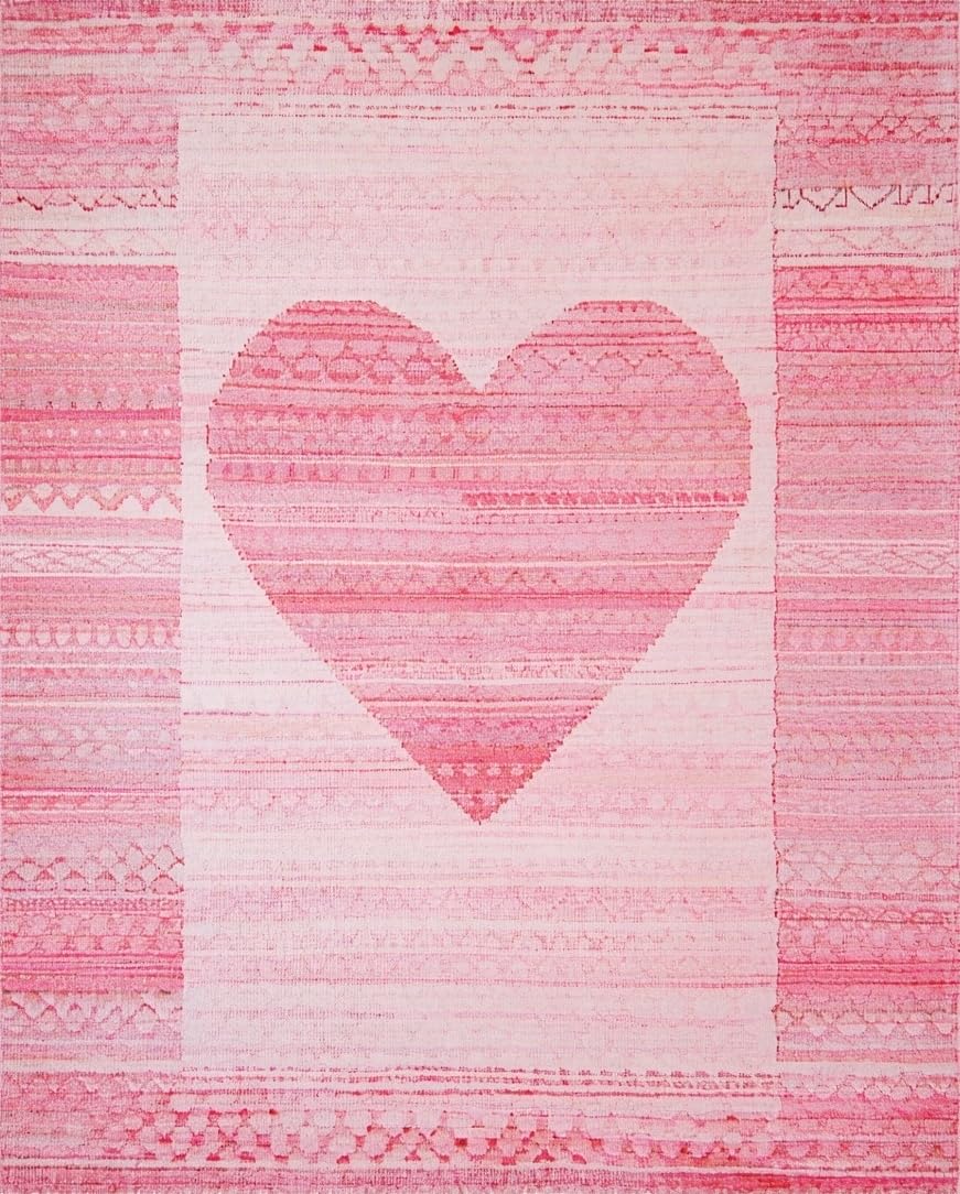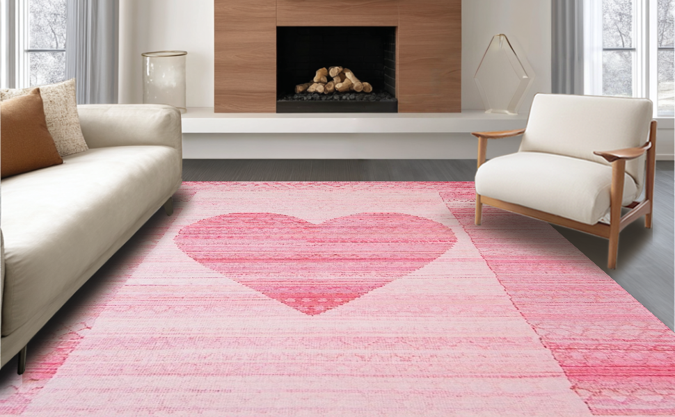 Ultra Soft Area Rug, Non Slip, Stain Resistant, Washable Area Rugs for Living Room, Bedroom, Charming Pastel Heart Motif(Pink) Overview: