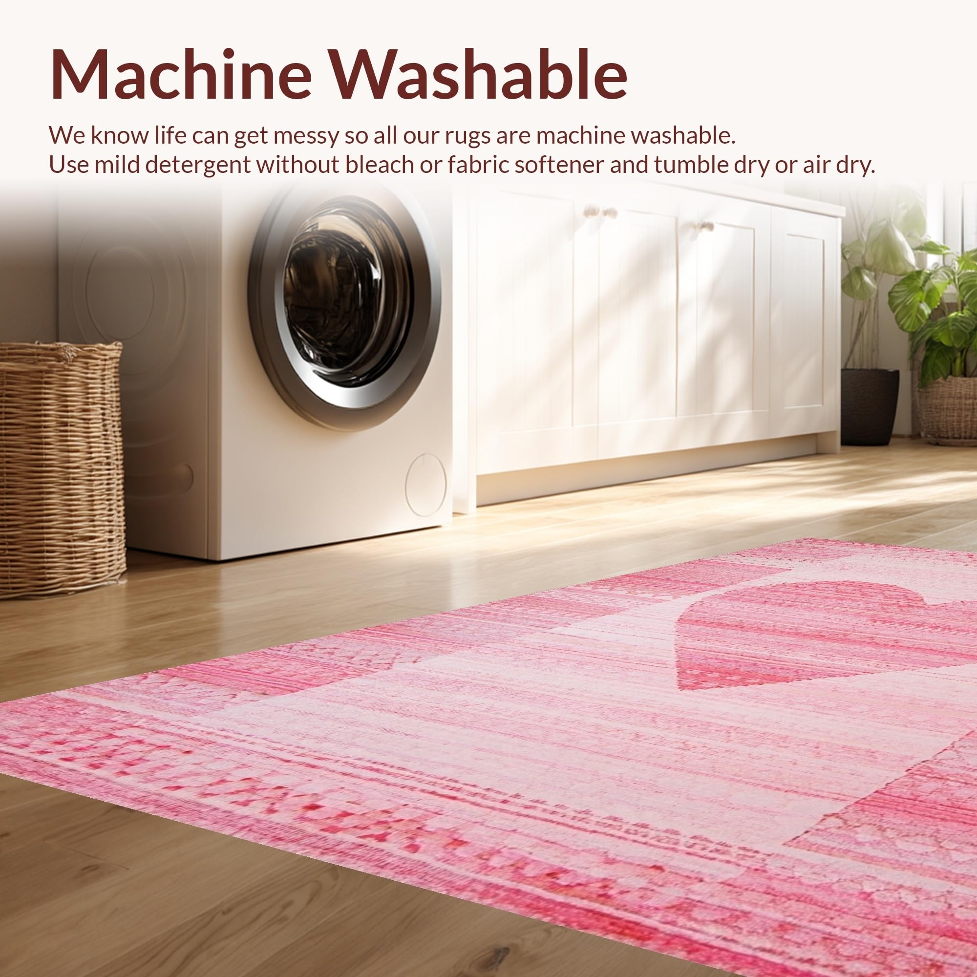 - Machine Washable: Our rugs can be easily thrown in the wash machine.