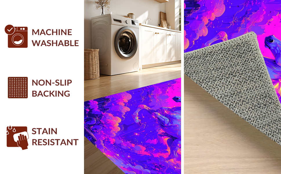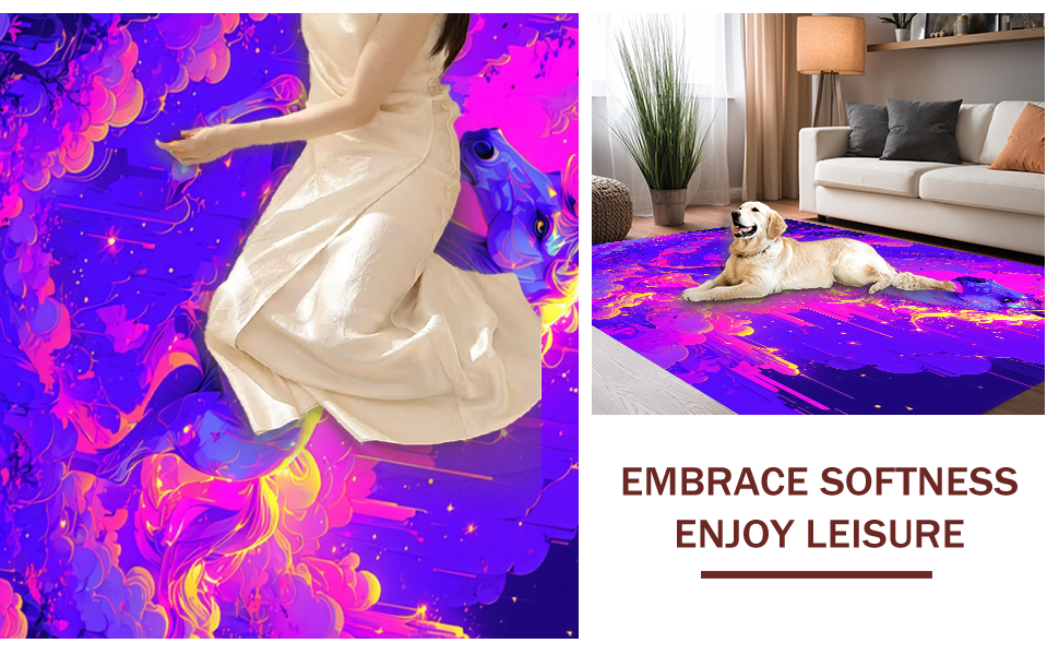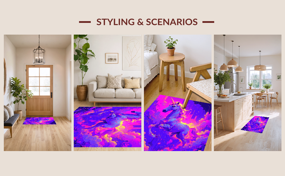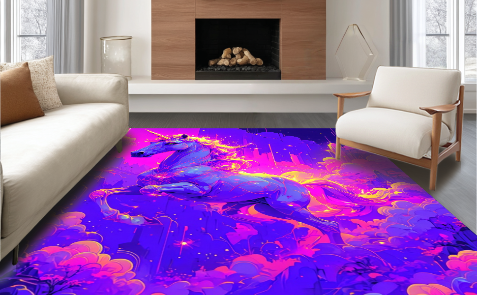 Ultra Soft Area Rug, Non Slip, Stain Resistant, Washable Area Rugs for Living Room, Bedroom, Charming Pastel Unicorn Illustration(Purple) Overview: