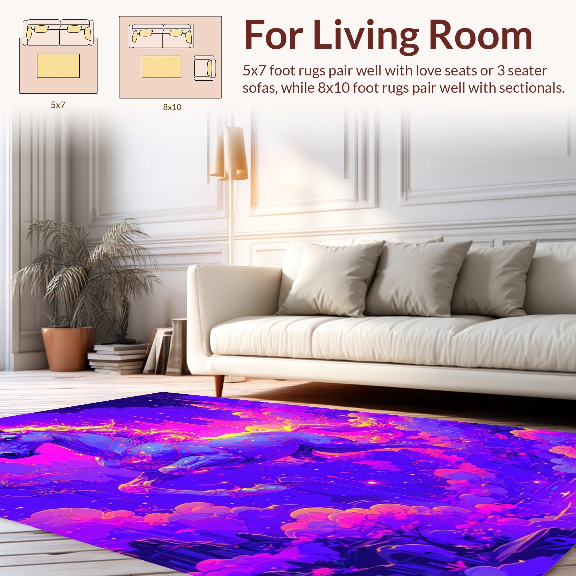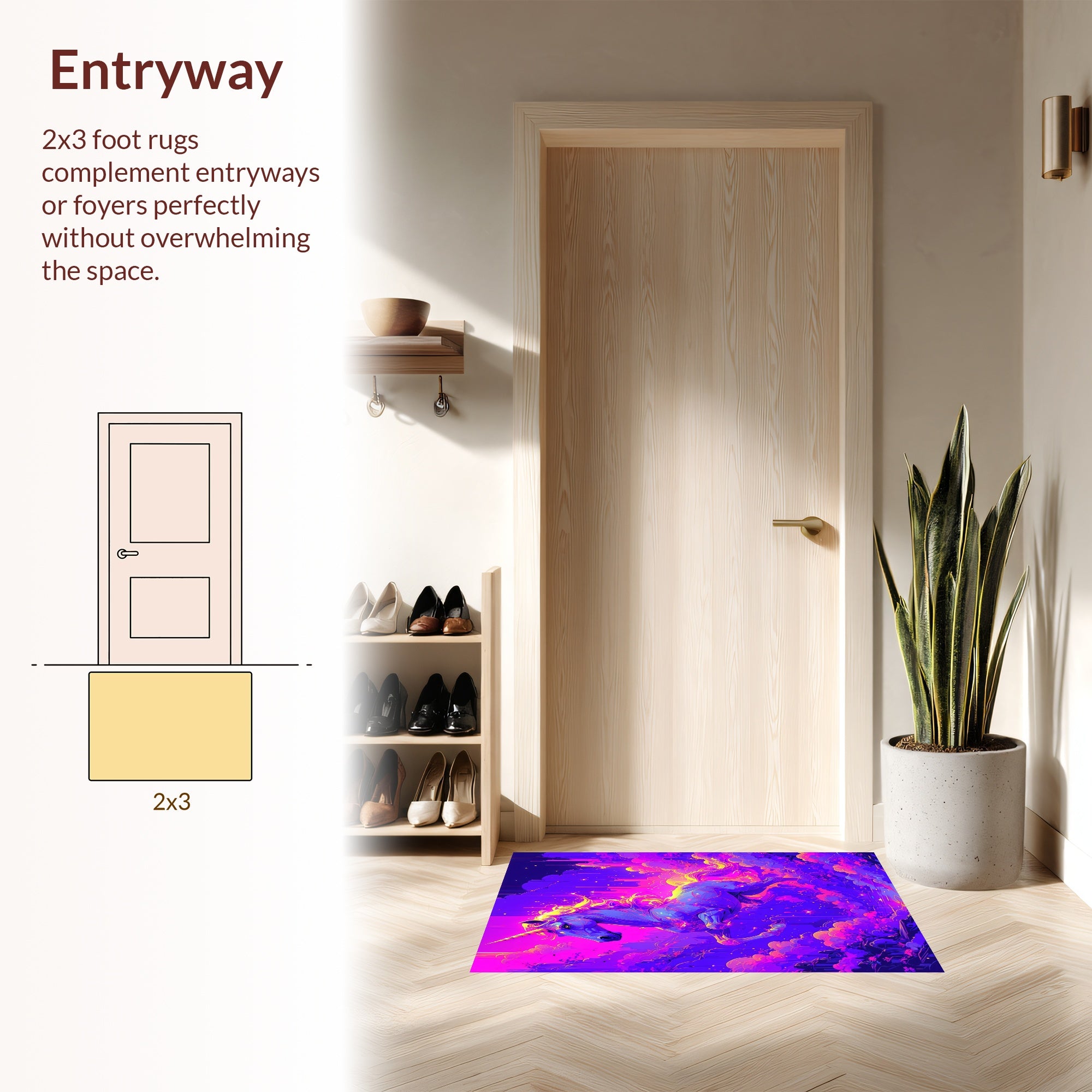 Flatwoven High Traffic Area Rug, Charming Pastel Unicorn Illustration, Non Slip, Stain Resistant, Washable Area Rugs for Living Room, Bedroom (Purple) Overview: