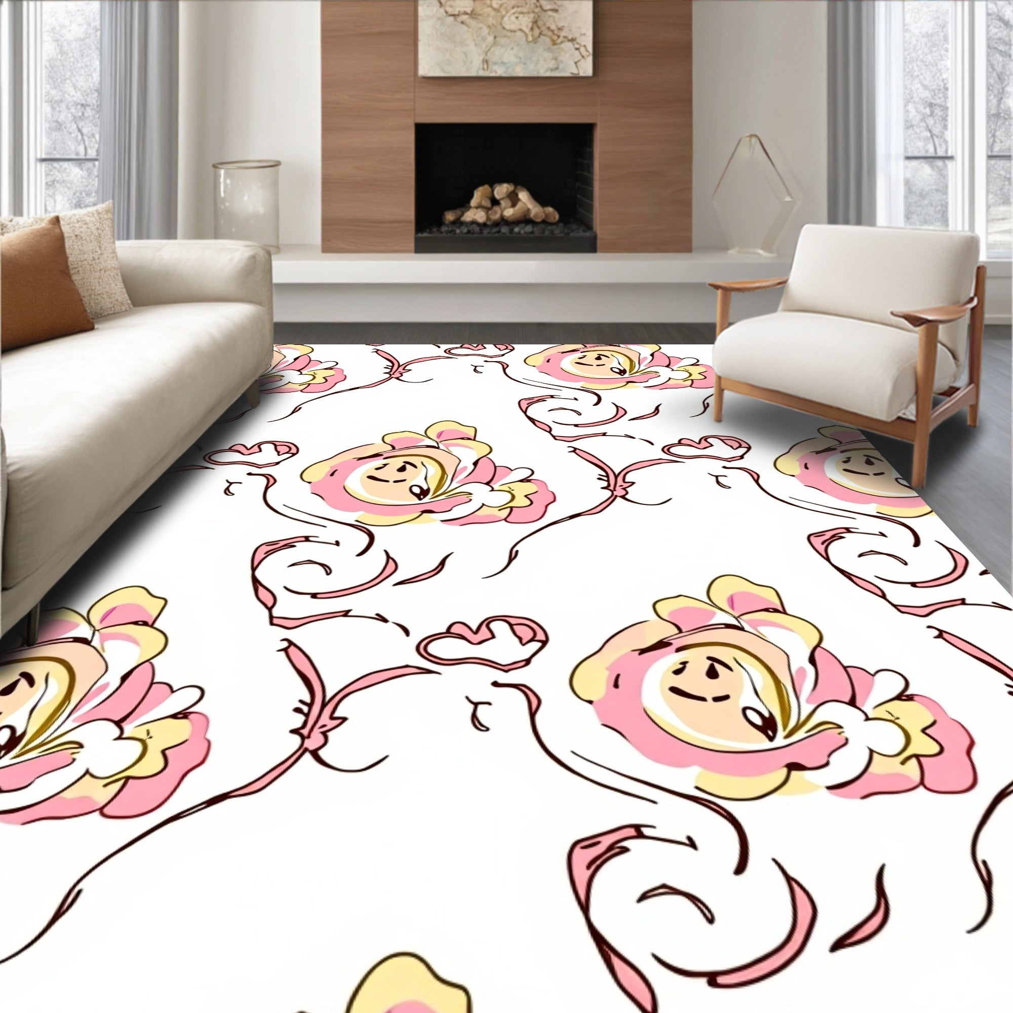 Flatwoven High Traffic Area Rug, Charming Petal Dance Accent with Festive Florals, Non Slip, Stain Resistant, Washable Area Rugs for Living Room, Bedroom (Pink) Overview: