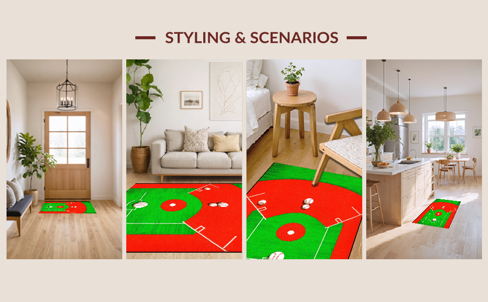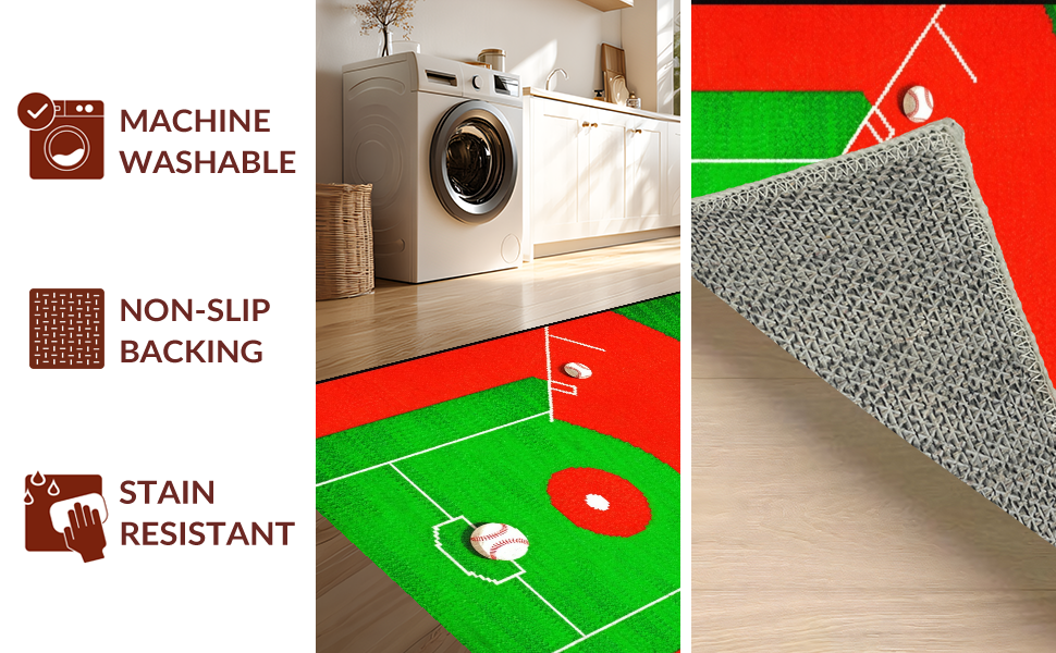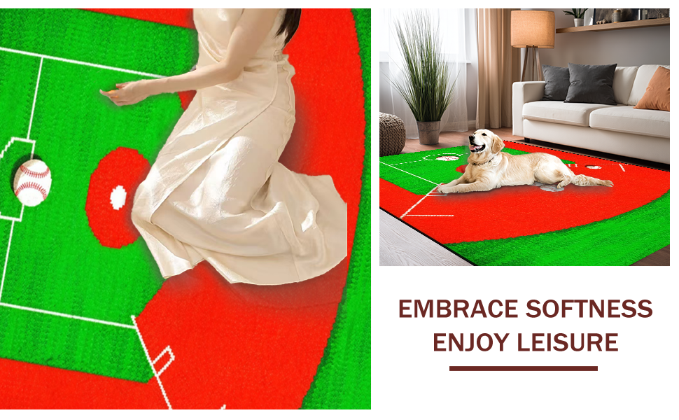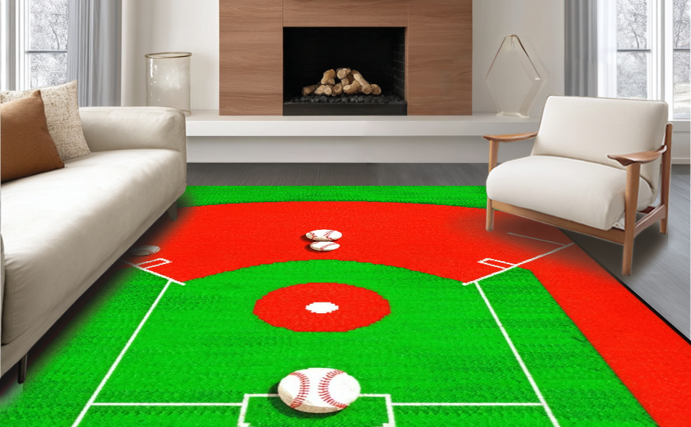 Ultra Soft Area Rug, Non Slip, Stain Resistant, Washable Area Rugs for Living Room, Bedroom, Charming Playful Baseball Aesthetic(Red) Overview: