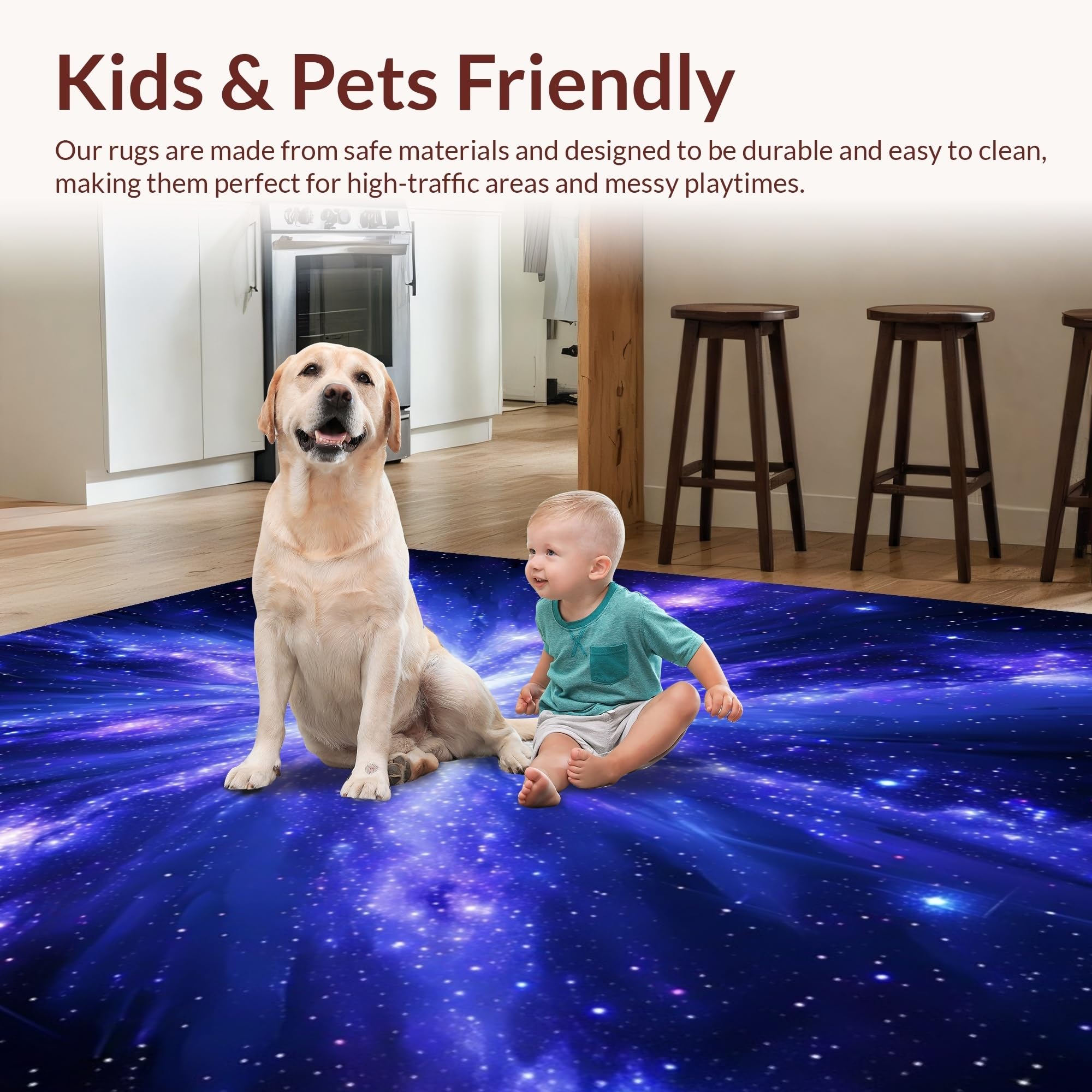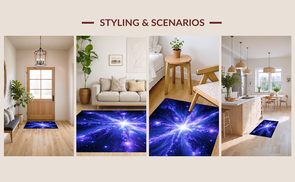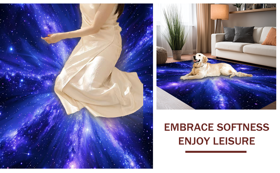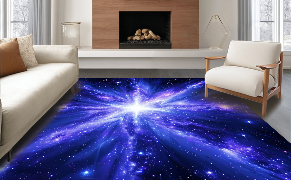 Ultra Soft Area Rug, Non Slip, Stain Resistant, Washable Area Rugs for Living Room, Bedroom, Charming Playful Owl Galaxy Scene(Blue) Overview: