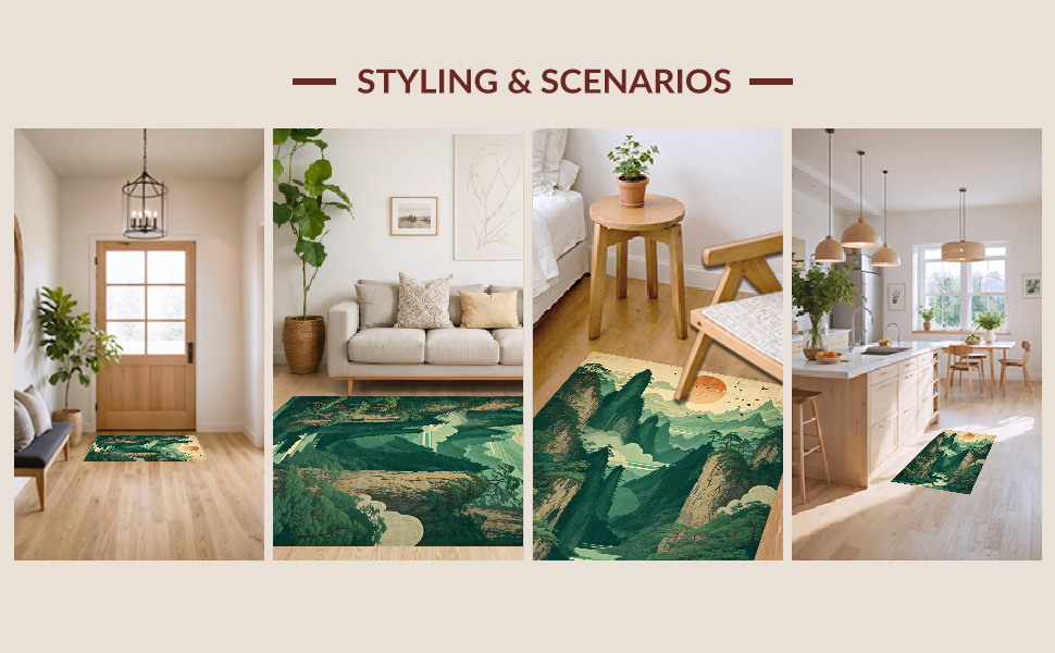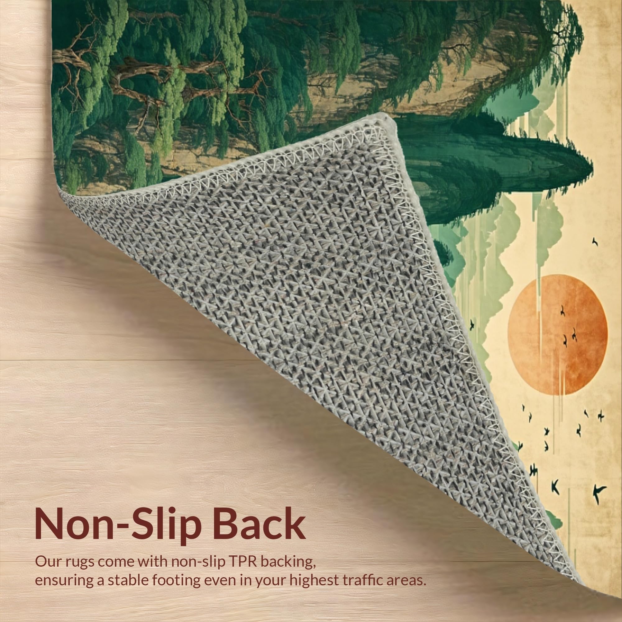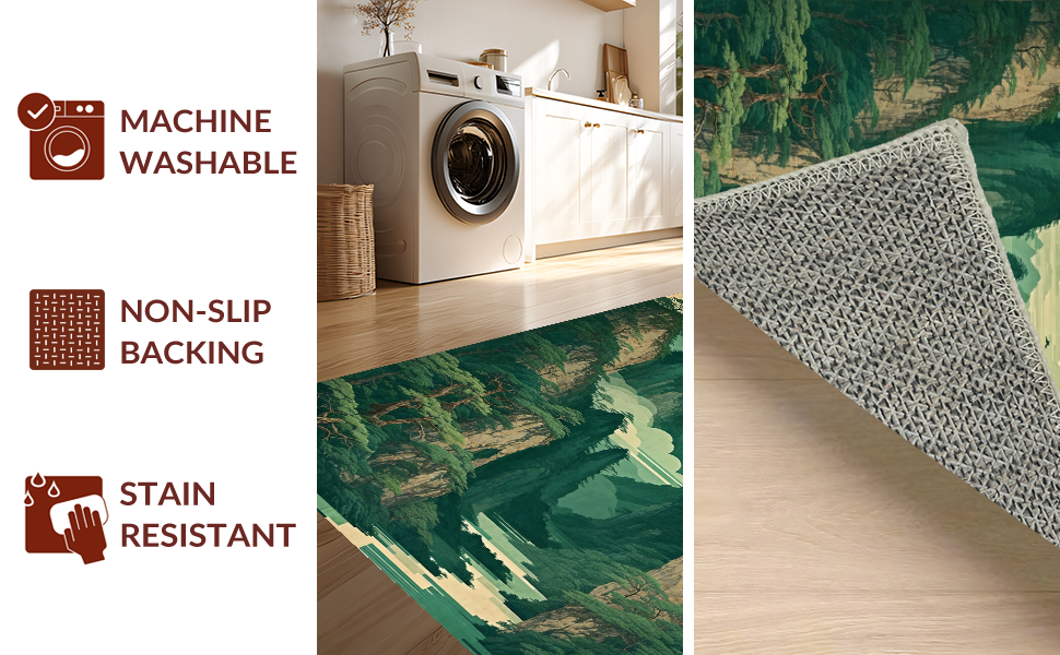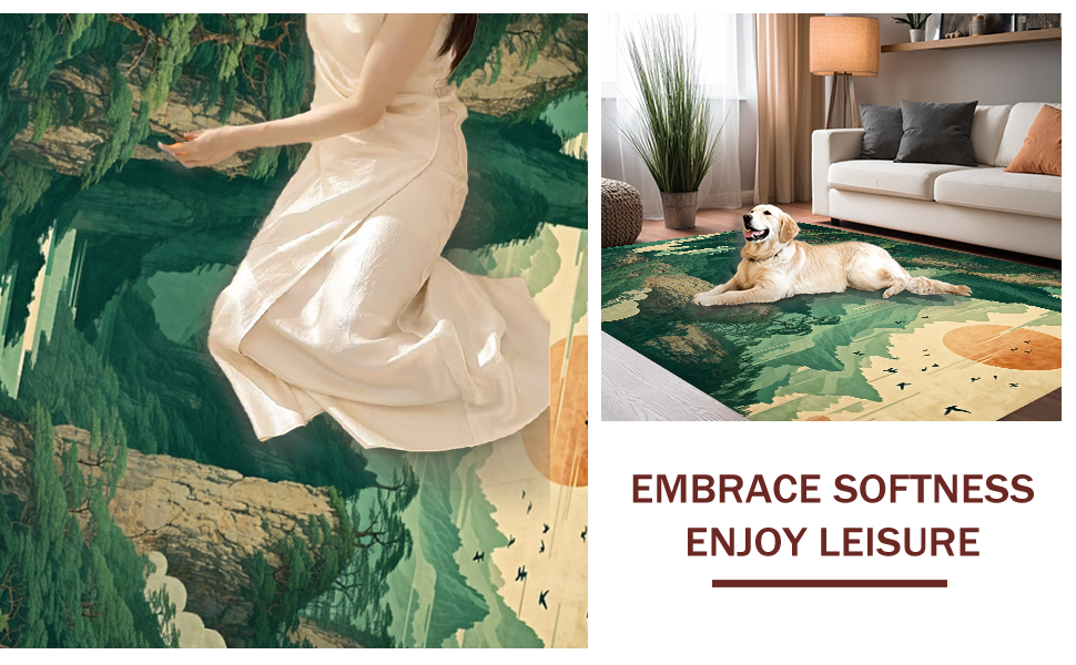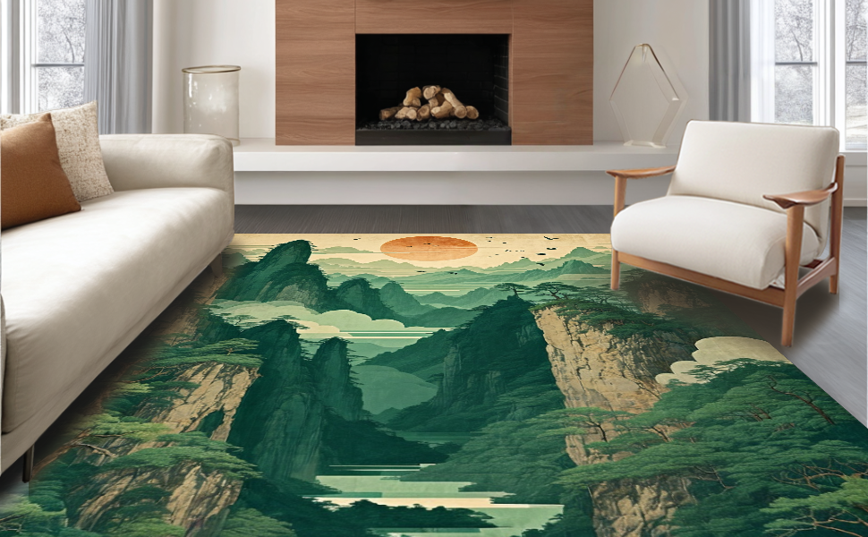 Ultra Soft Area Rug, Non Slip, Stain Resistant, Washable Area Rugs for Living Room, Bedroom, Charming Playful Scenic Print(Green) Overview: