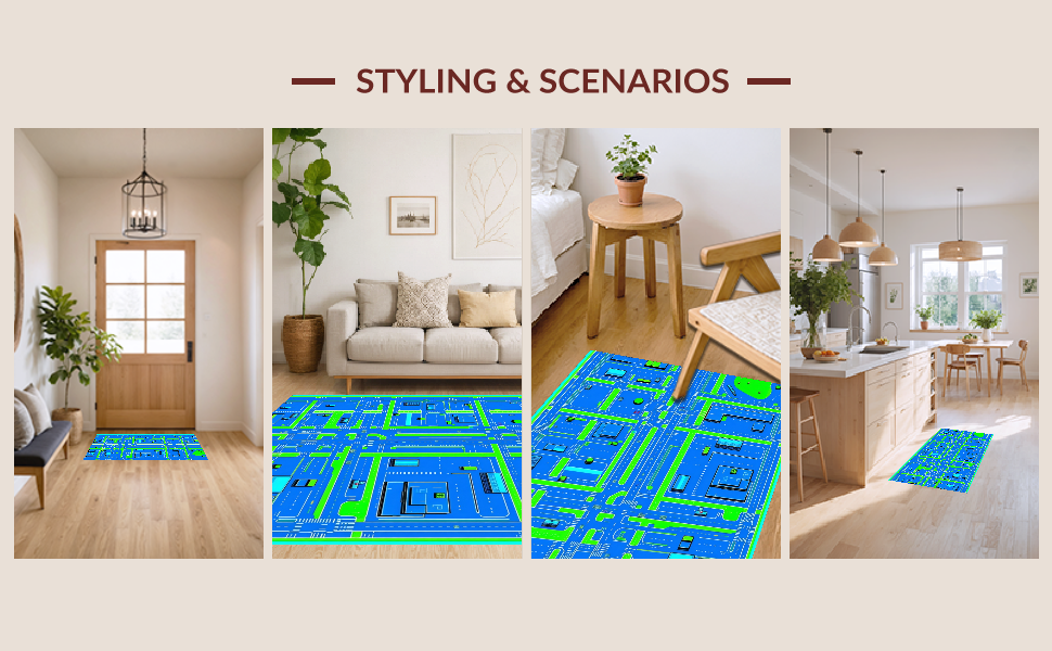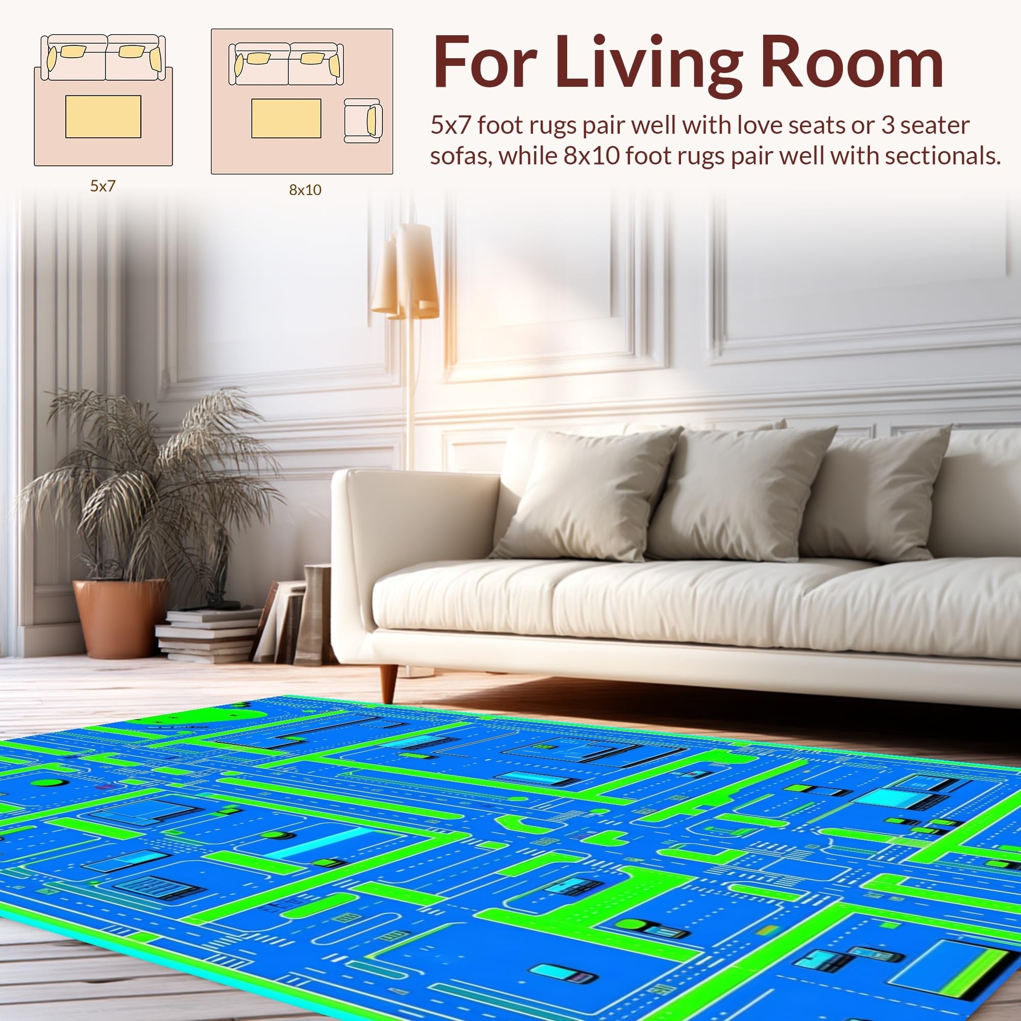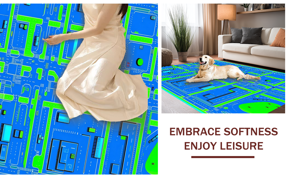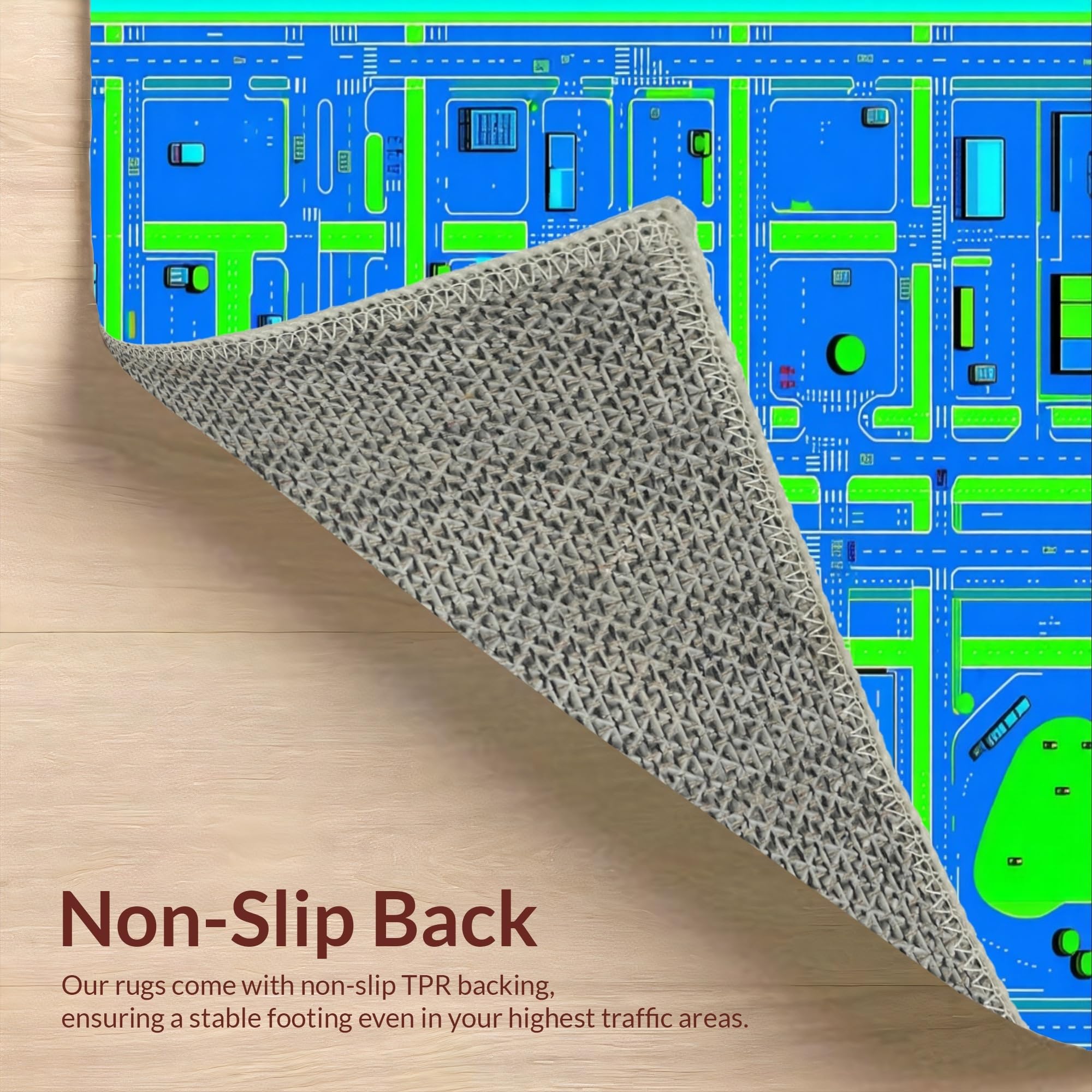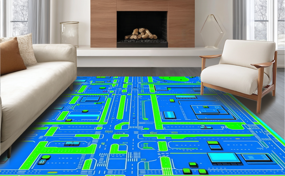 Ultra Soft Area Rug, Non Slip, Stain Resistant, Washable Area Rugs for Living Room, Bedroom, Charming Playful Street Scene(Blue) Overview: