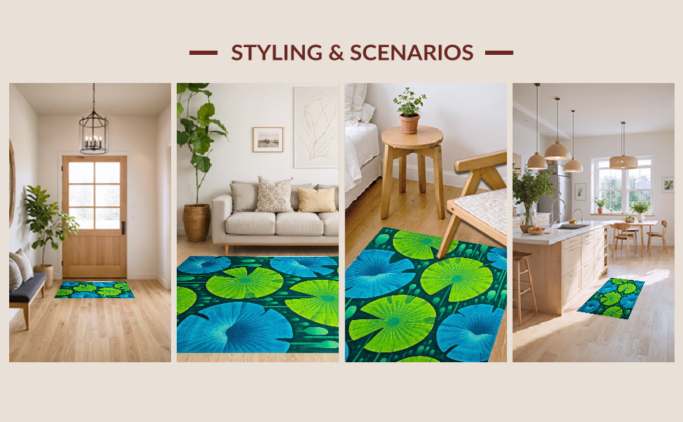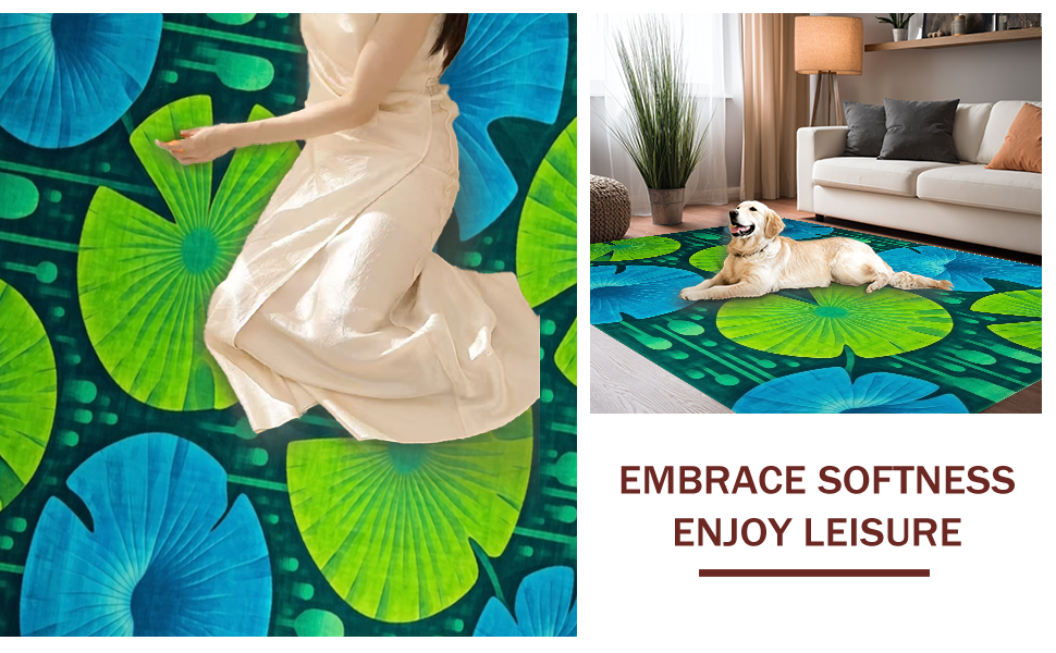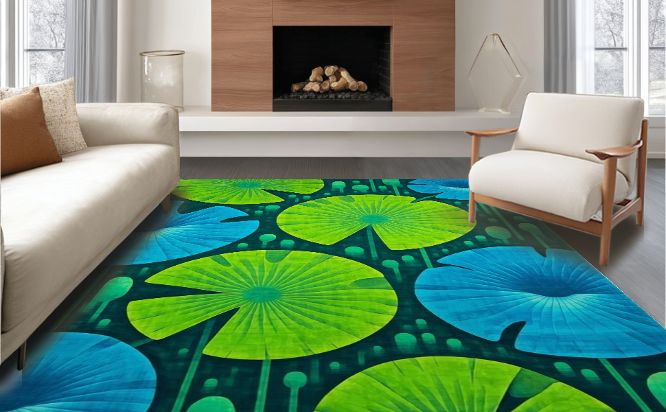 Ultra Soft Area Rug, Non Slip, Stain Resistant, Washable Area Rugs for Living Room, Bedroom, Charming Pond Landscape Visual Appeal(Green) Overview: