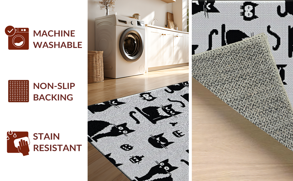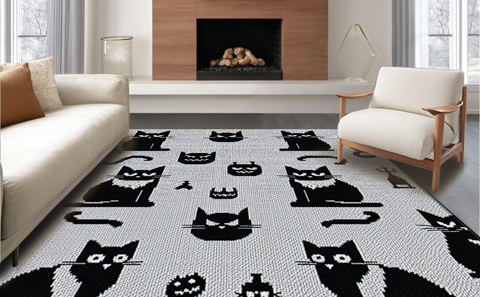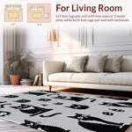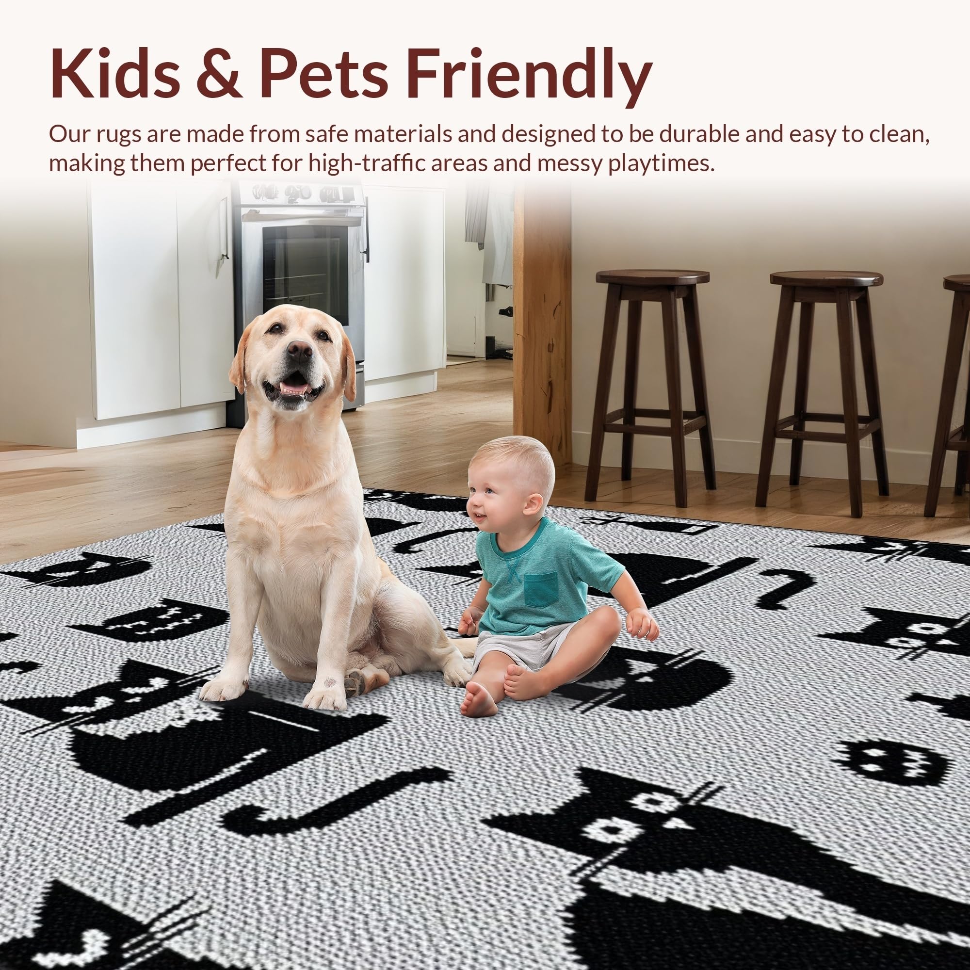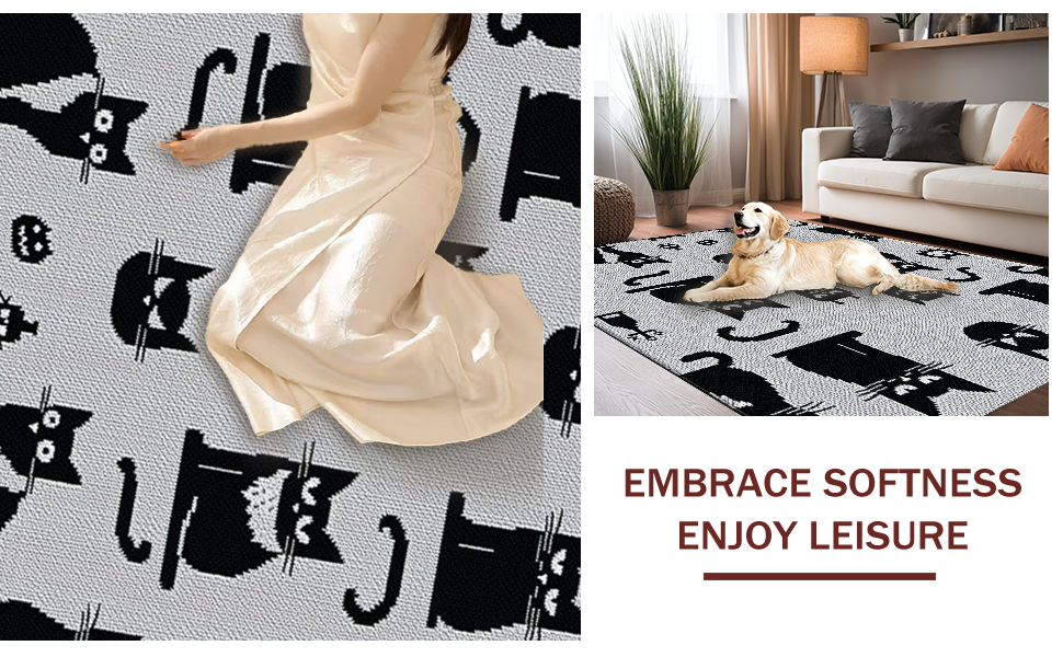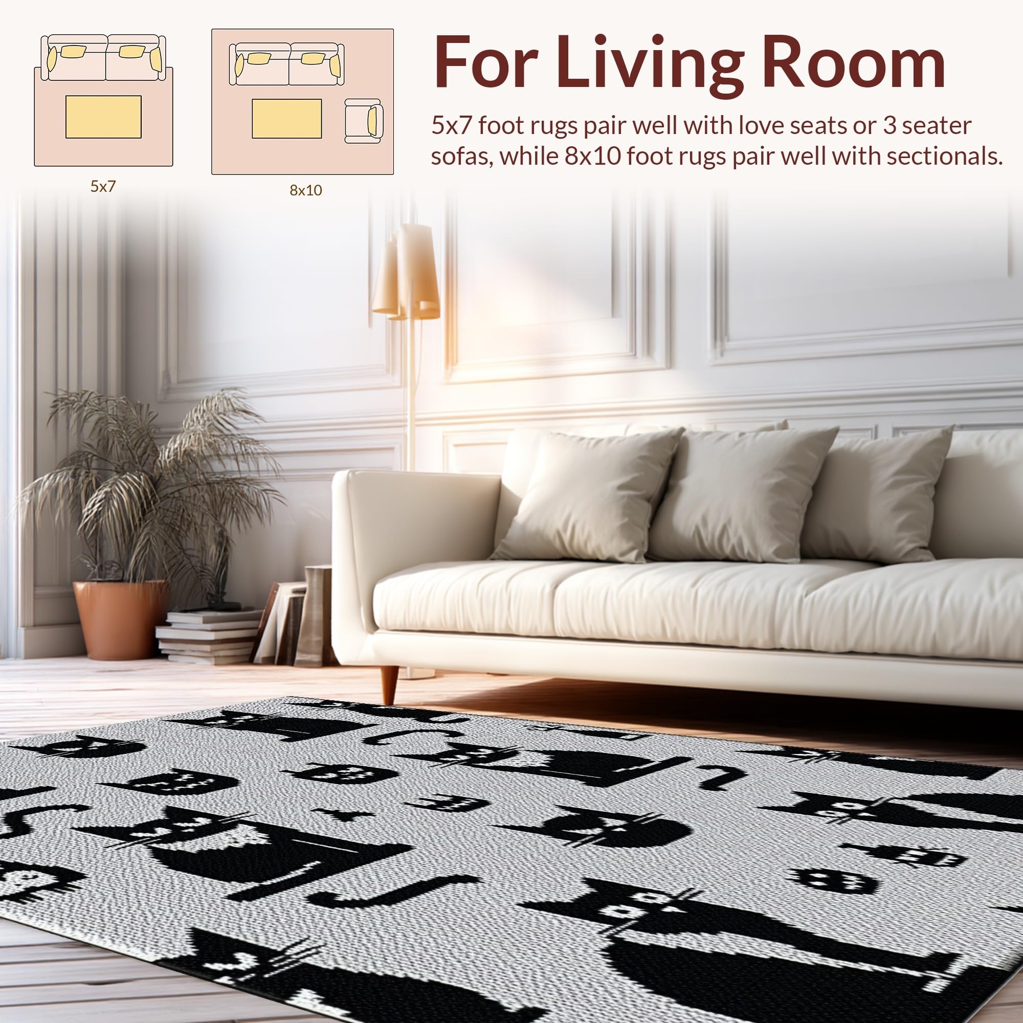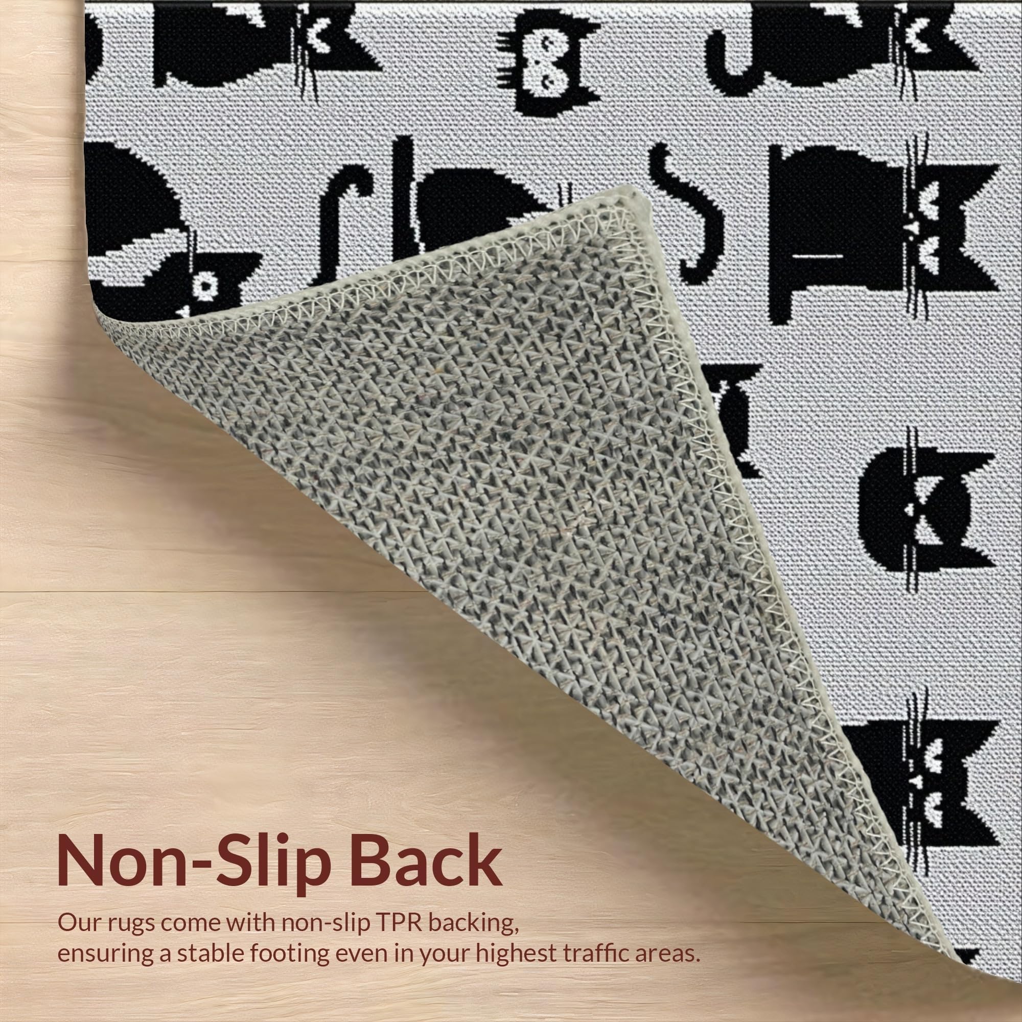 Ultra Soft Area Rug, Non Slip, Stain Resistant, Washable Area Rugs for Living Room, Bedroom, Charming Quirky Feline Art(Black) Overview: