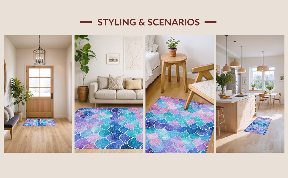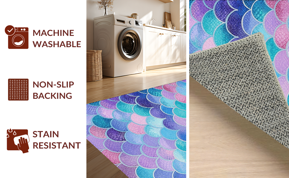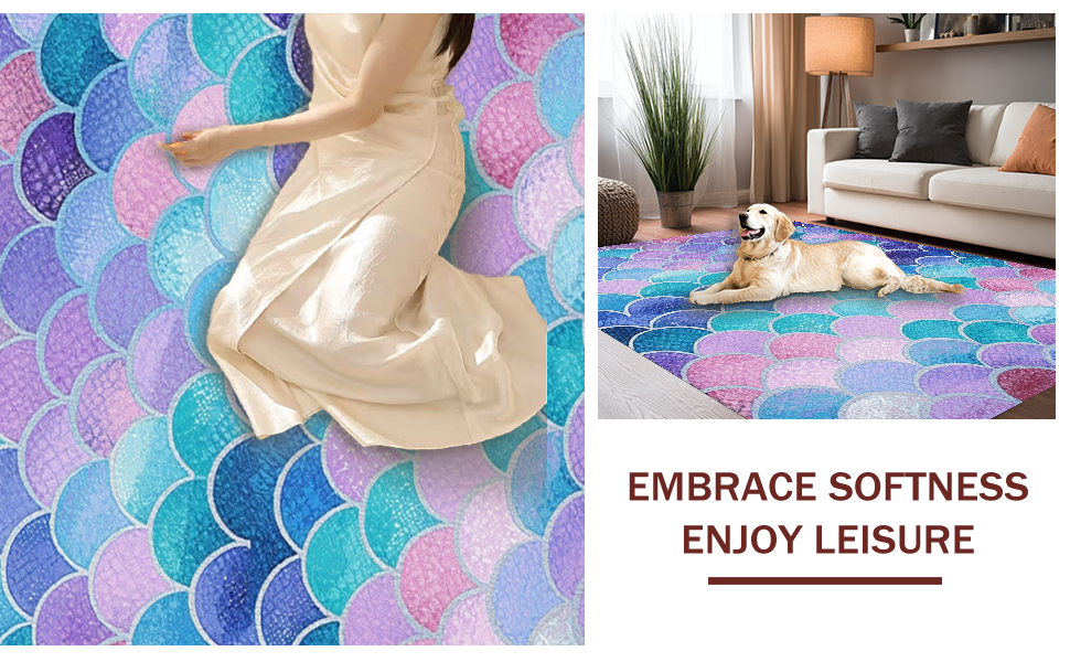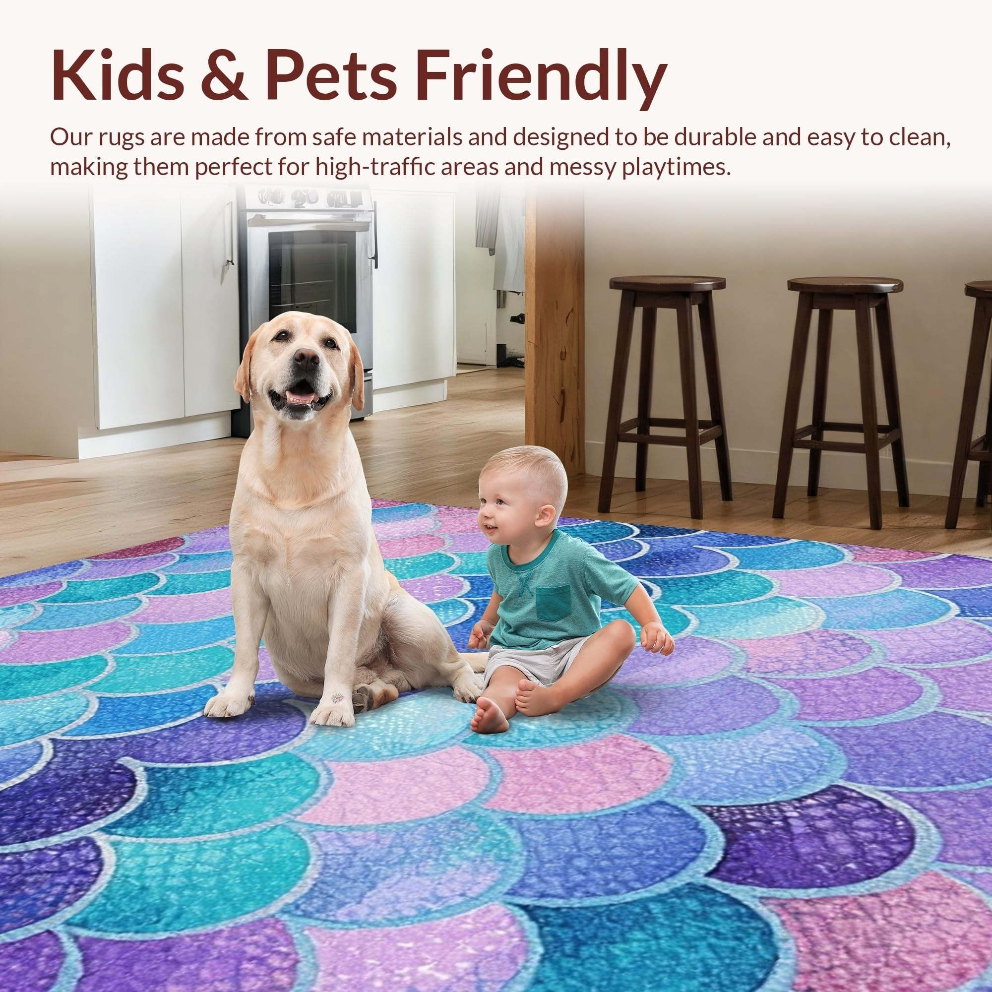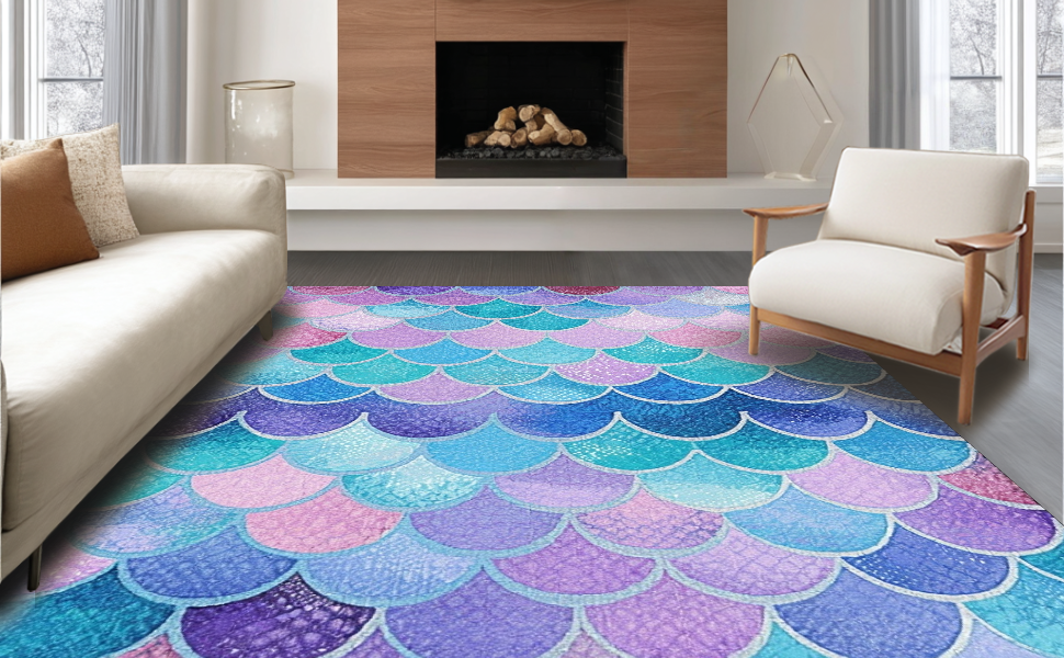 Ultra Soft Area Rug, Non Slip, Stain Resistant, Washable Area Rugs for Living Room, Bedroom, Charming Rainbow Fish Pattern(Purple) Overview: