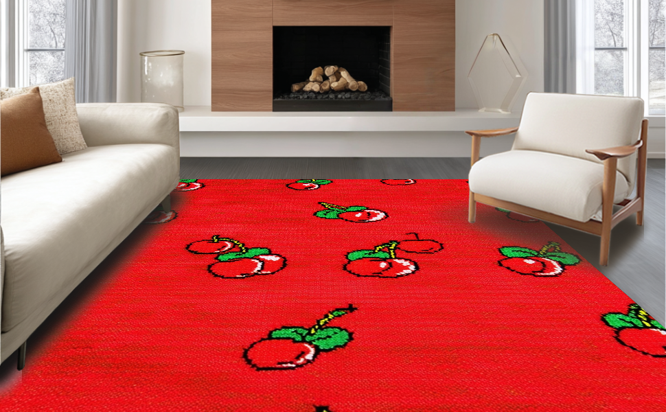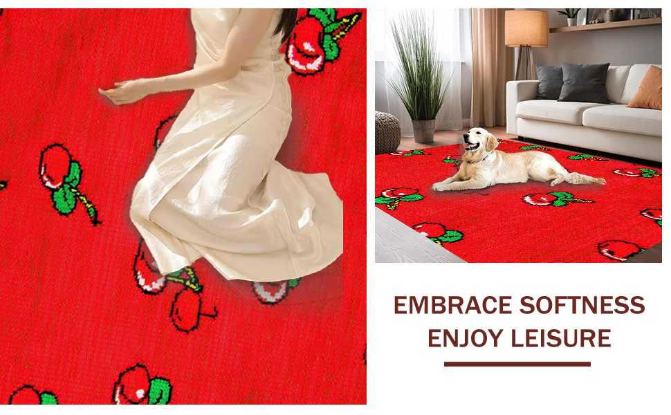 Ultra Soft Area Rug, Non Slip, Stain Resistant, Washable Area Rugs for Living Room, Bedroom, Charming Red and Green Fusion(Red) Overview: