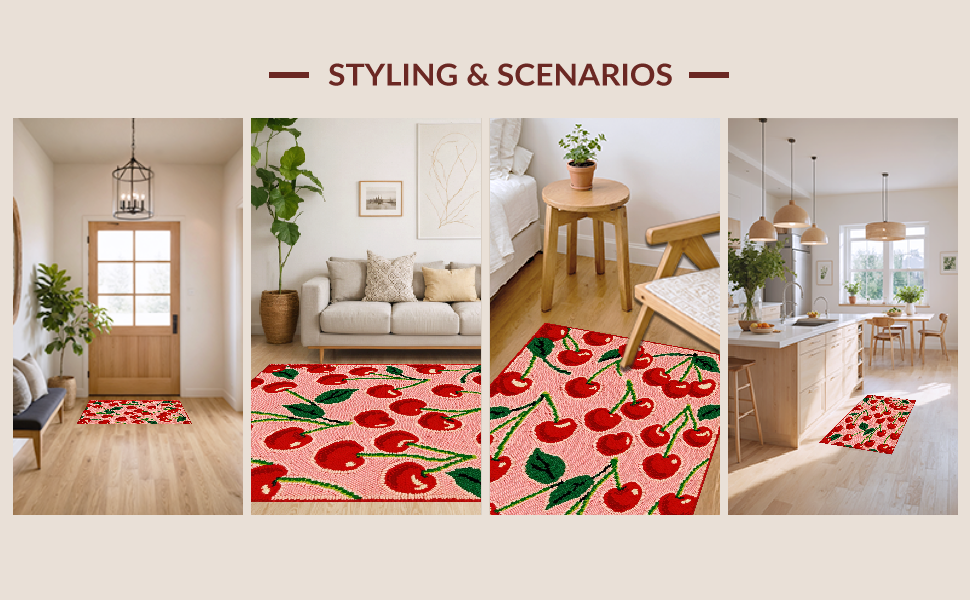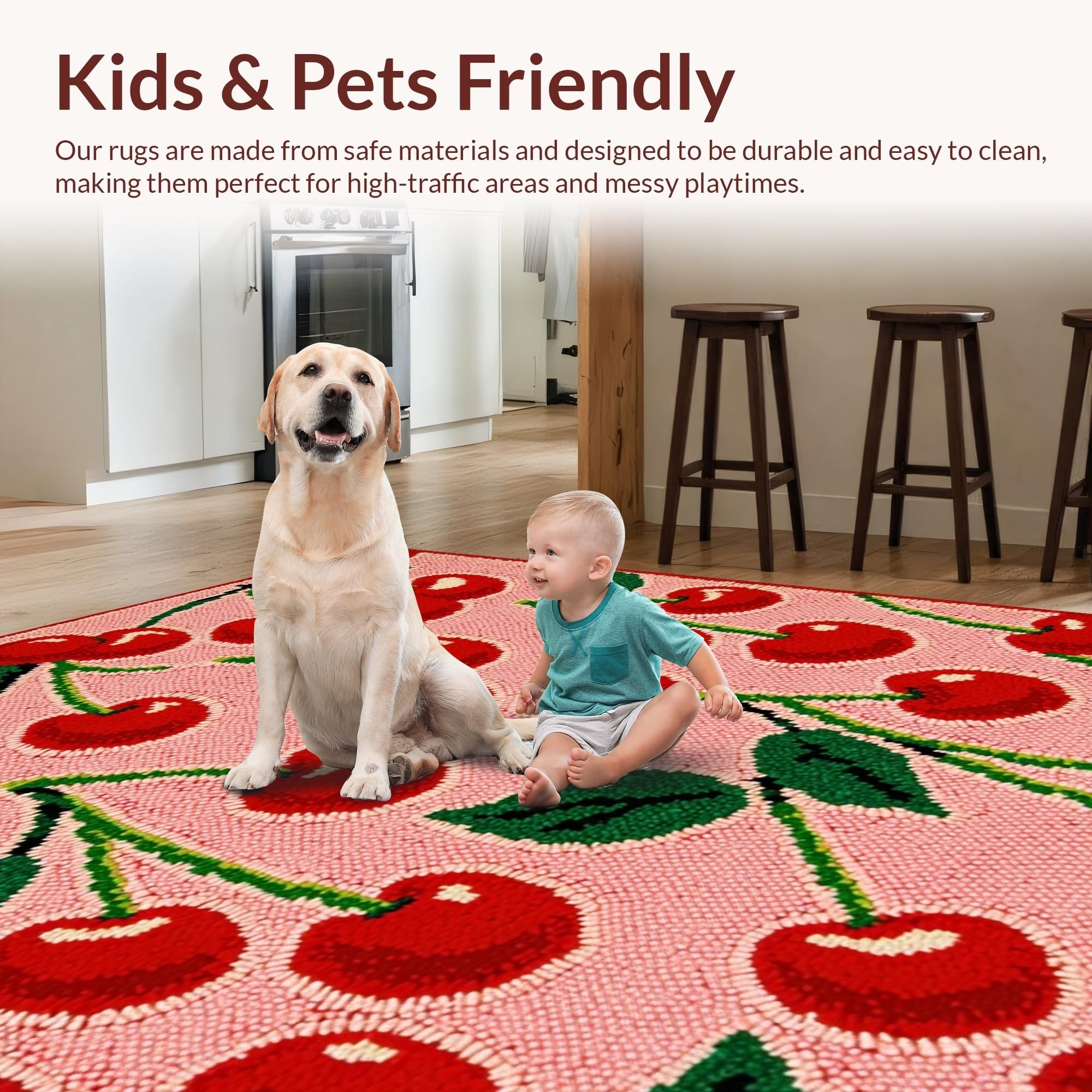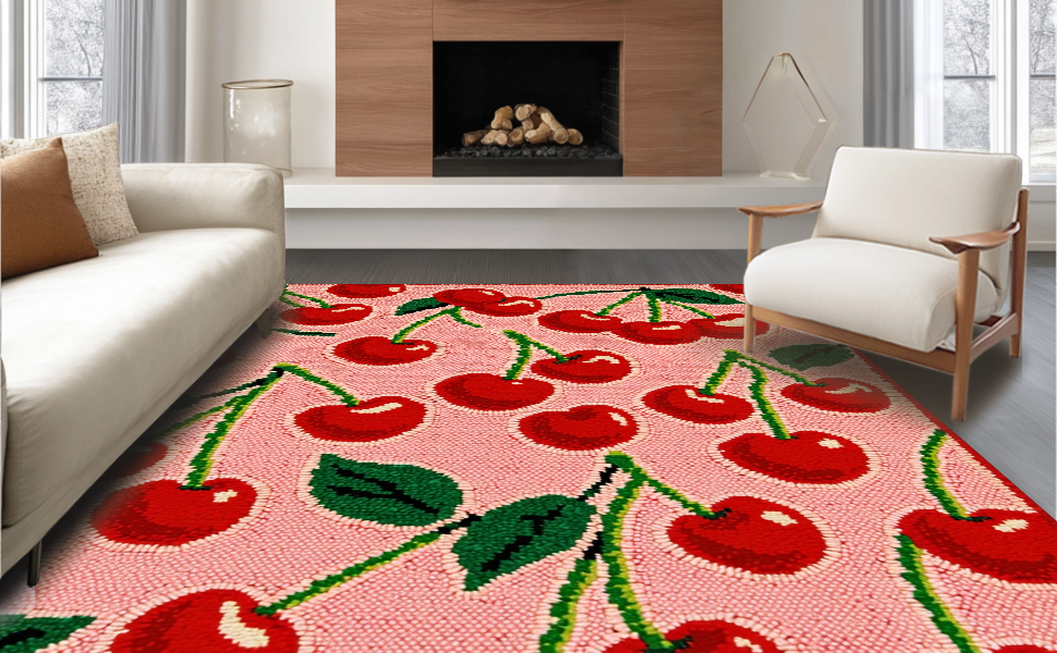 Ultra Soft Area Rug, Non Slip, Stain Resistant, Washable Area Rugs for Living Room, Bedroom, Charming Red and Green Theme(Red) Overview: