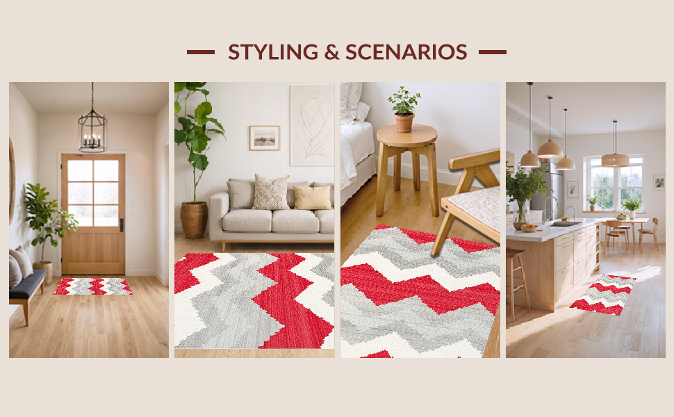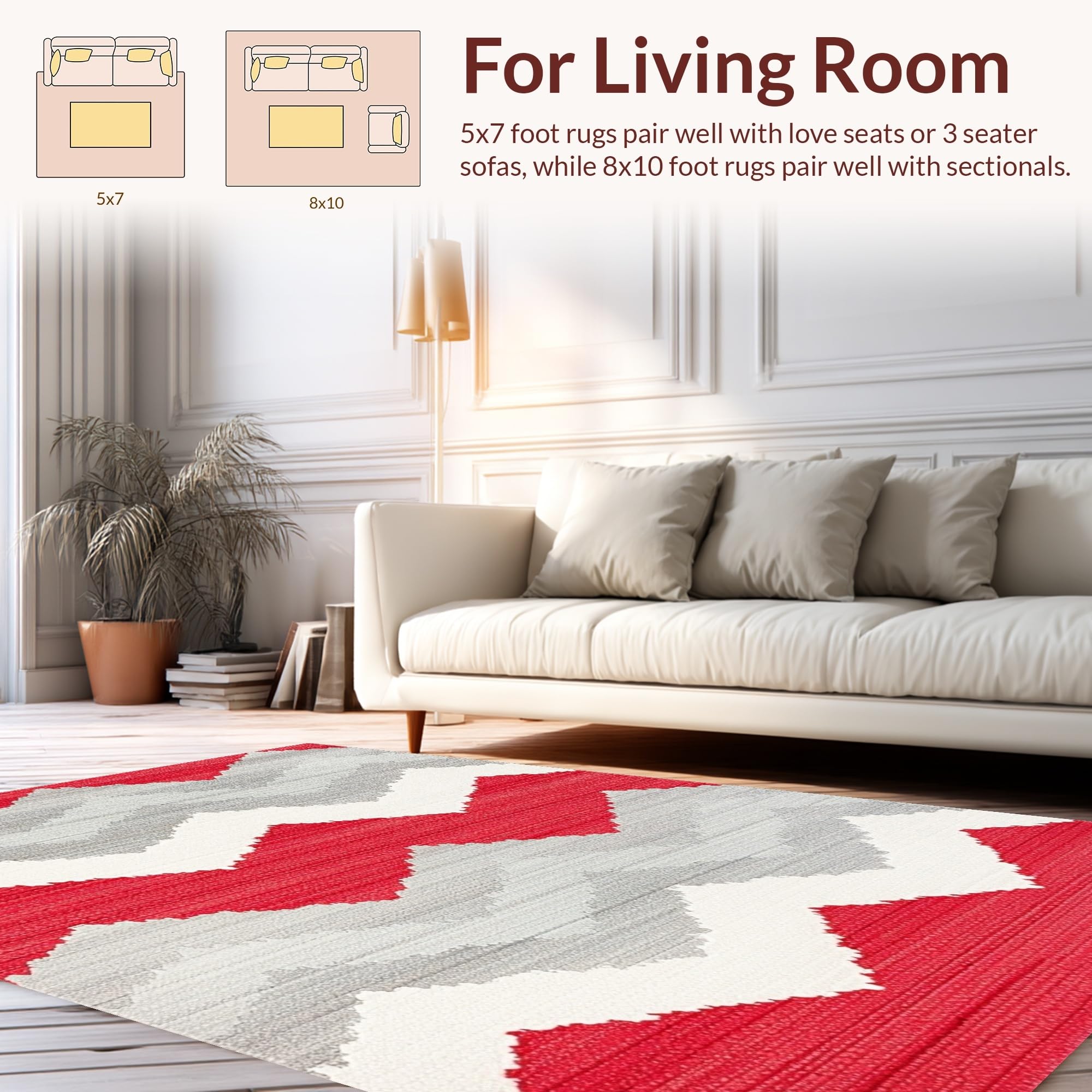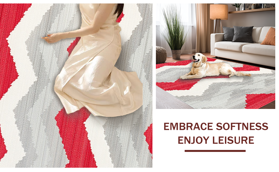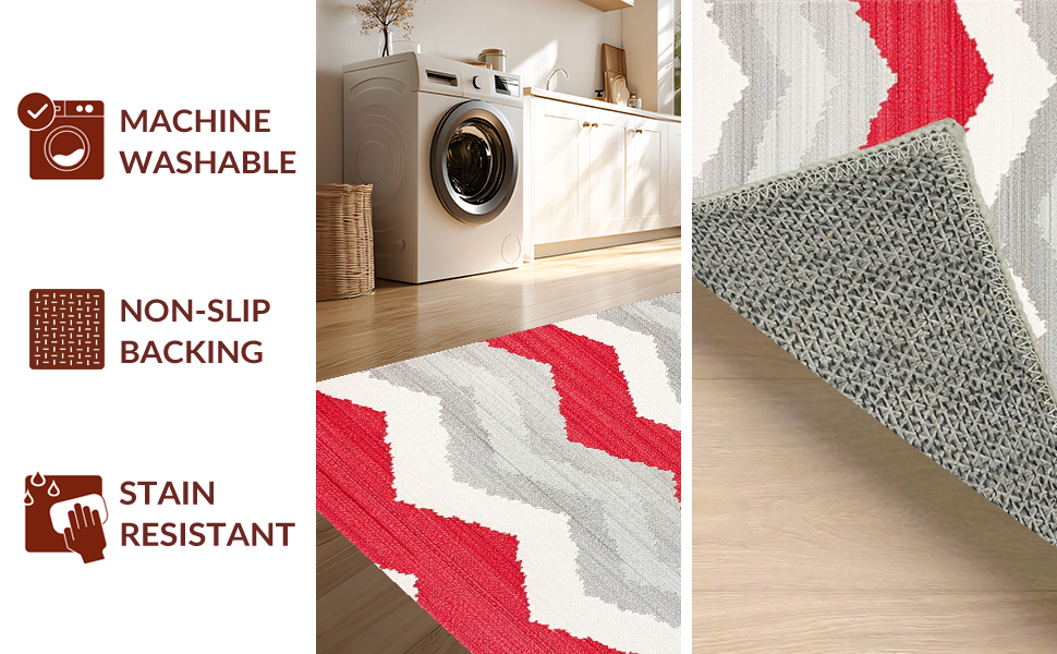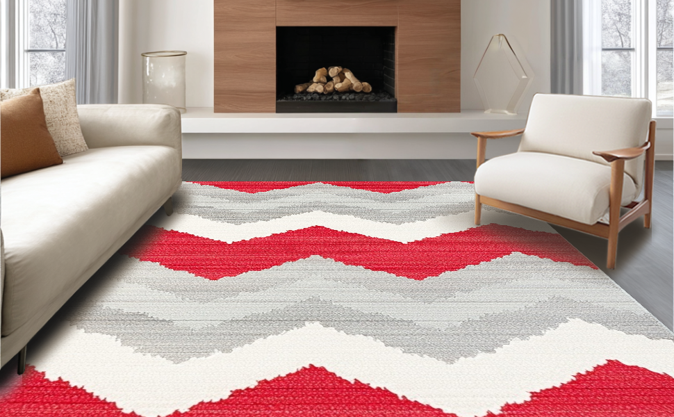 Ultra Soft Area Rug, Non Slip, Stain Resistant, Washable Area Rugs for Living Room, Bedroom, Charming Red Geometric Theme(Red) Overview: