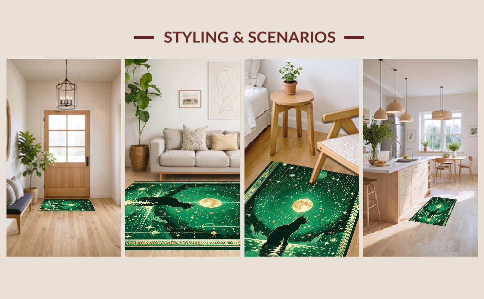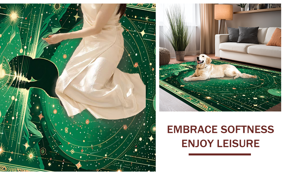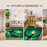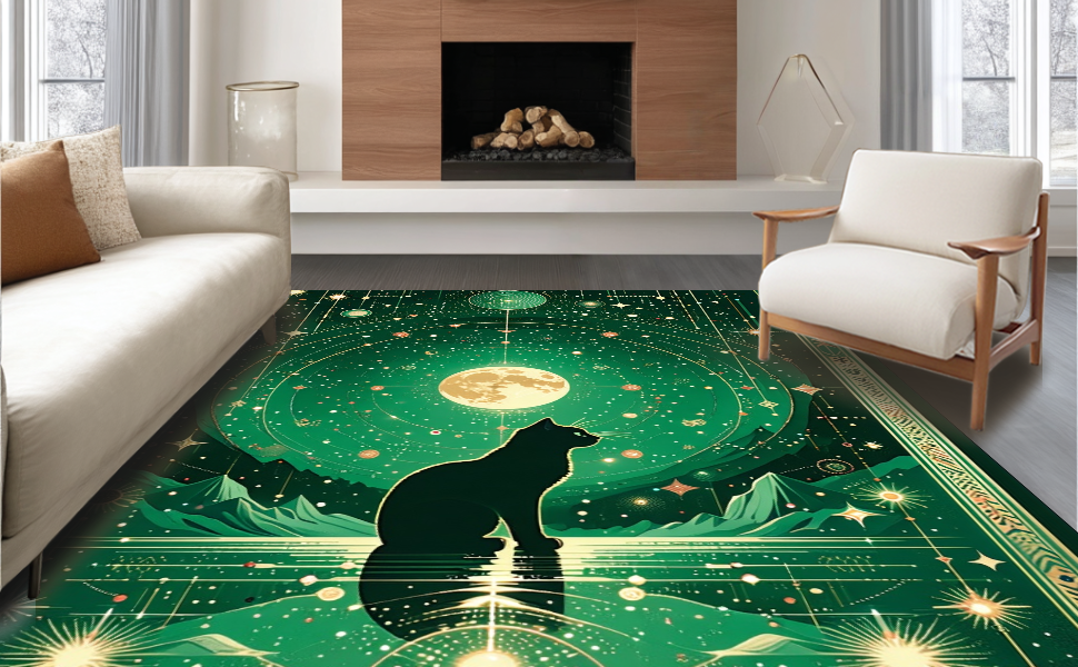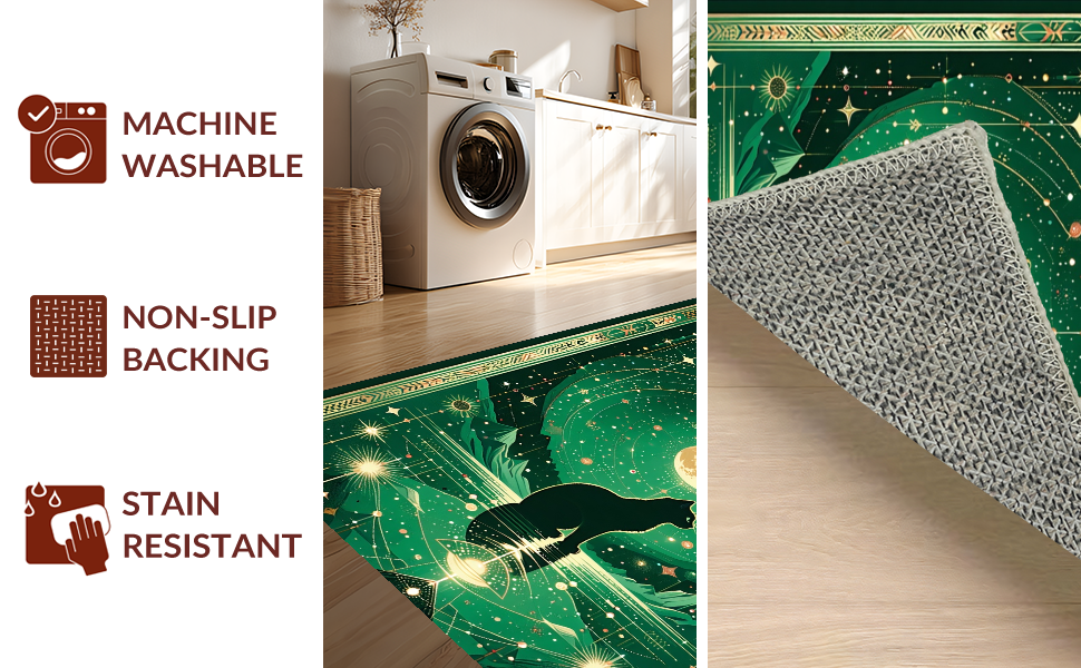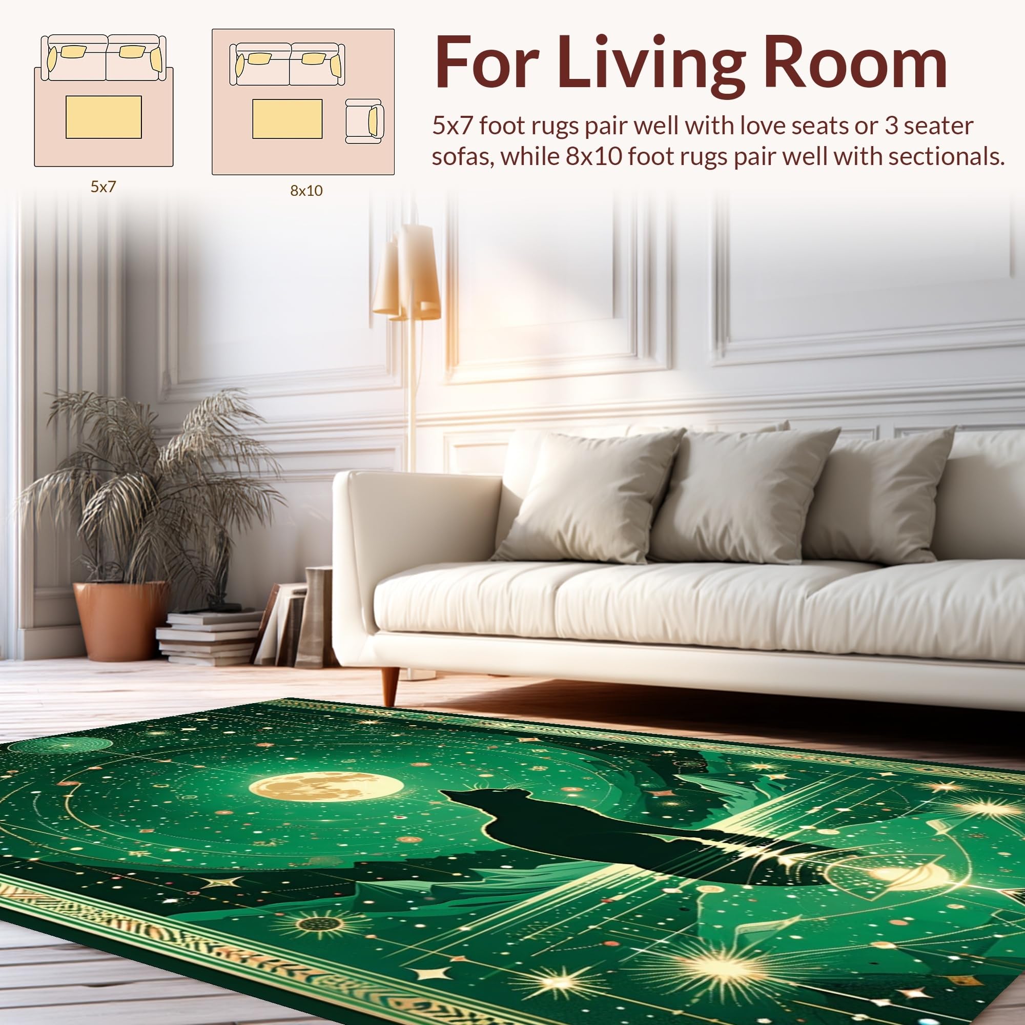 Ultra Soft Area Rug, Non Slip, Stain Resistant, Washable Area Rugs for Living Room, Bedroom, Charming Retro Cat Visuals(Green) Overview: