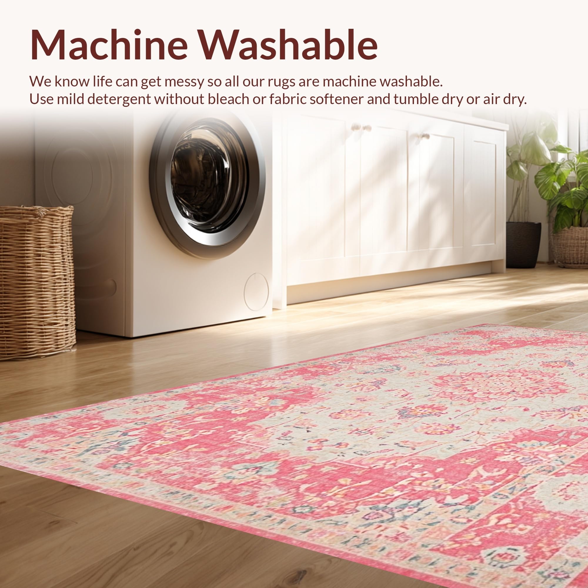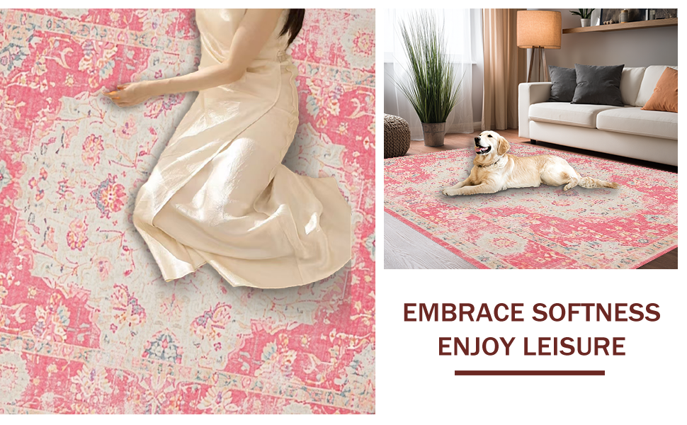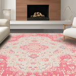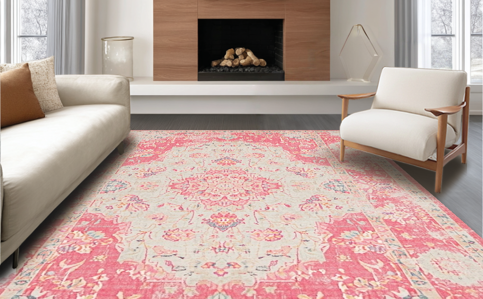 Ultra Soft Area Rug, Non Slip, Stain Resistant, Washable Area Rugs for Living Room, Bedroom, Charming Retro Medallion Accent(Pink) Overview: