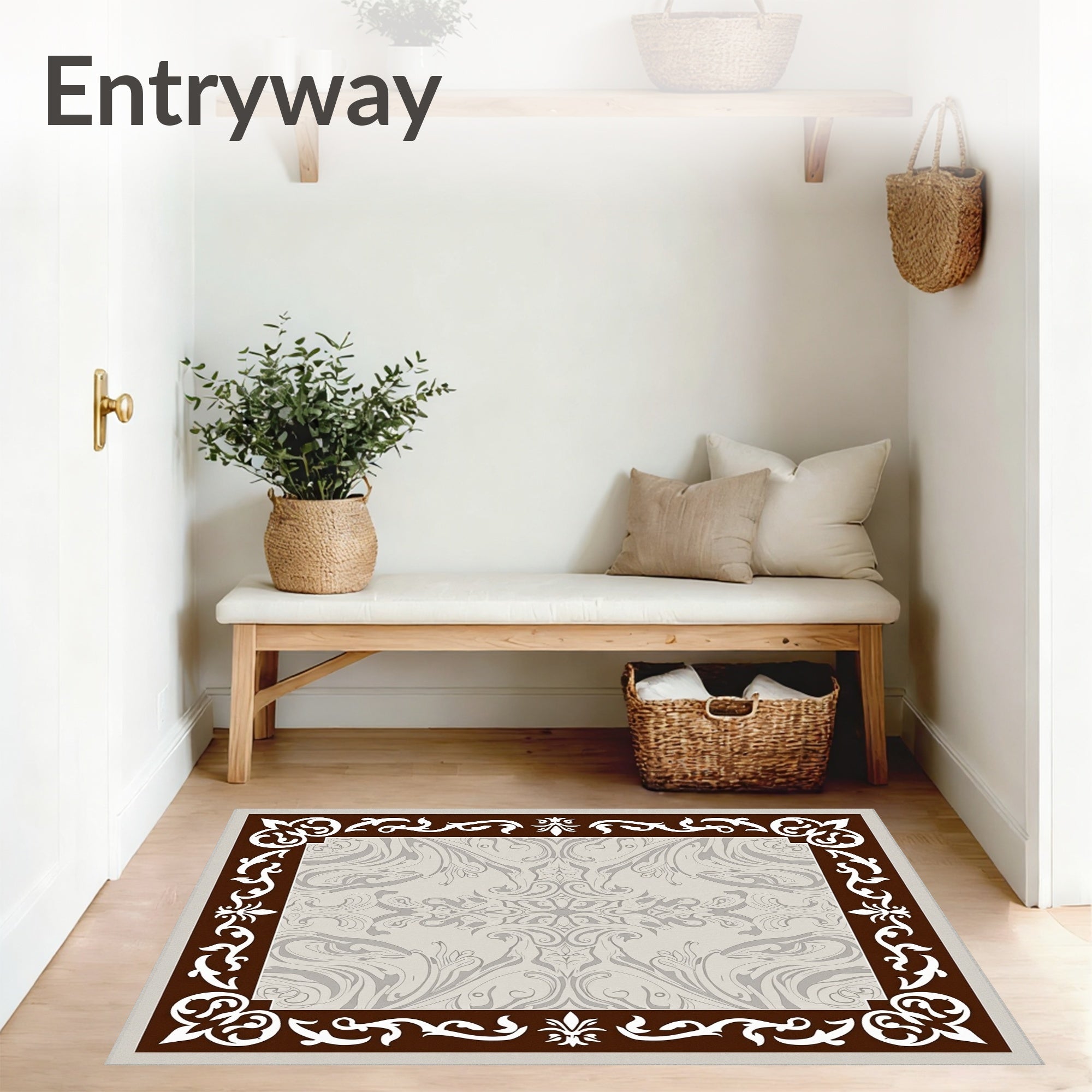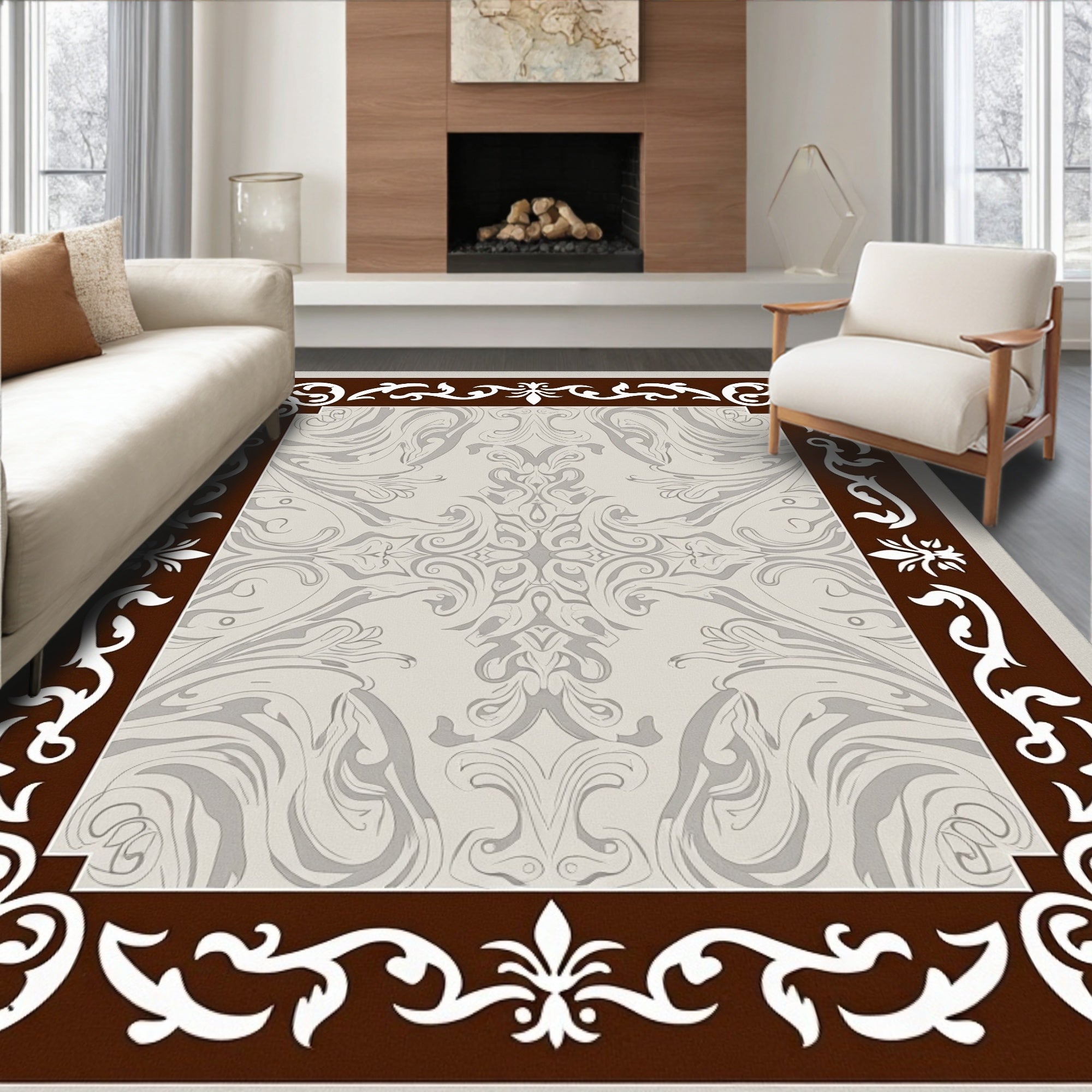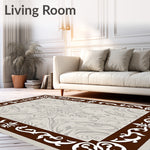 Flatwoven High Traffic Area Rug, Charming Rococo with Flourishing Petal Swirls, Non Slip, Stain Resistant, Washable Area Rugs for Living Room, Bedroom (Brown) Overview: